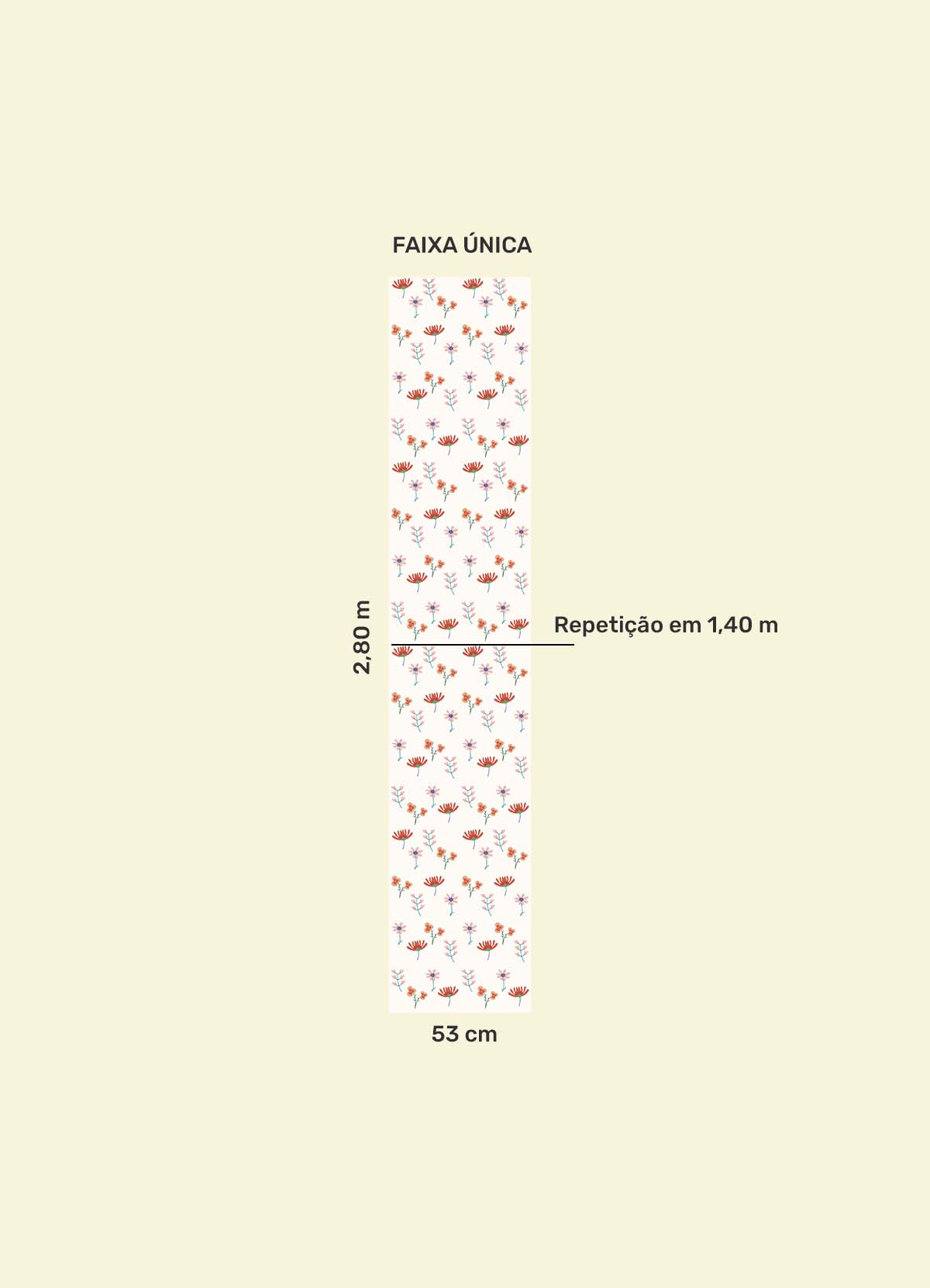 O Papel de Parede Flores No Jardim é como um portal da magia: permite que as cores, aventuras e o carinho invadam o quartinho infantil com alegria e encanto. Além de ser um item que transforma a decoração, nosso Papel de Parede infantil é de base vinílica e impressão de alta definição, para que você tenha um item de muita qualidade para decorar o quarto infantil. O acabamento é fosco e a textura suave, substituindo pinturas com tinta de forma mais prática e durável. E a junção das faixas não é sobreposta, mas alinhada lado a lado. Consulte a disponibilidade de estoque a pronta entrega.