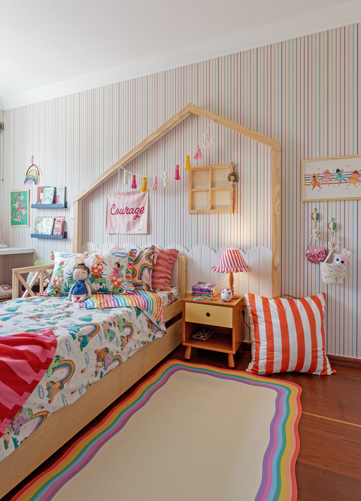 O Papel de Parede Listradinho Alegria é como um portal da magia: permite que as cores, aventuras e o carinho invadam o quartinho infantil com alegria e encanto. Além de ser um item que transforma a decoração, nosso Papel de Parede infantil é de base vinílica e impressão de alta definição, para que você tenha um item de muita qualidade para decorar o quarto infantil. O acabamento é fosco e a textura suave, substituindo pinturas com tinta de forma mais prática e durável. E a junção das faixas não é sobreposta, mas alinhada lado a lado. Consulte a disponibilidade de estoque a pronta entrega.