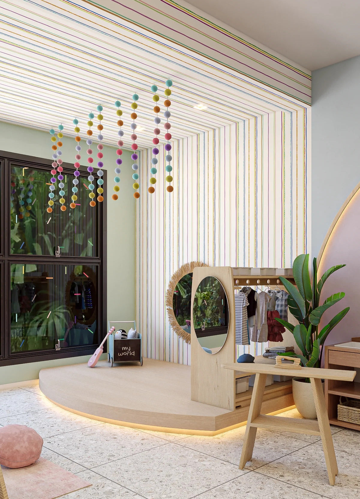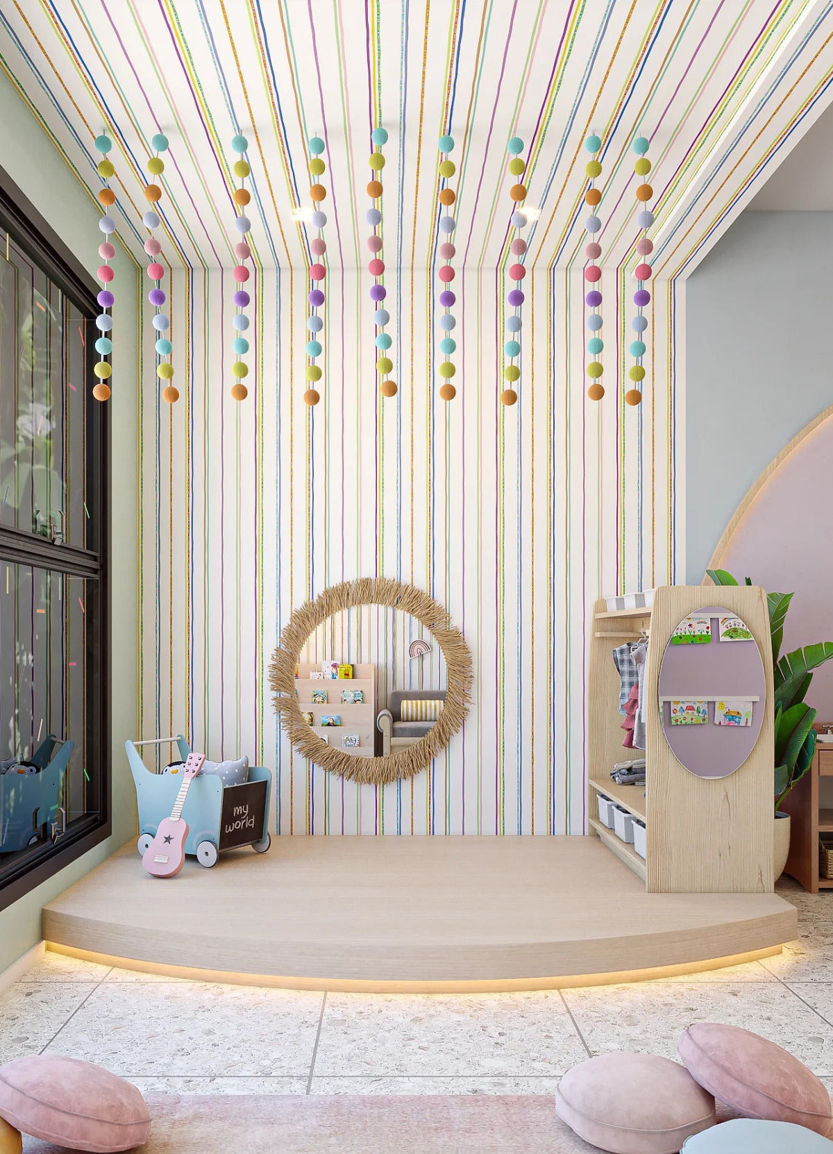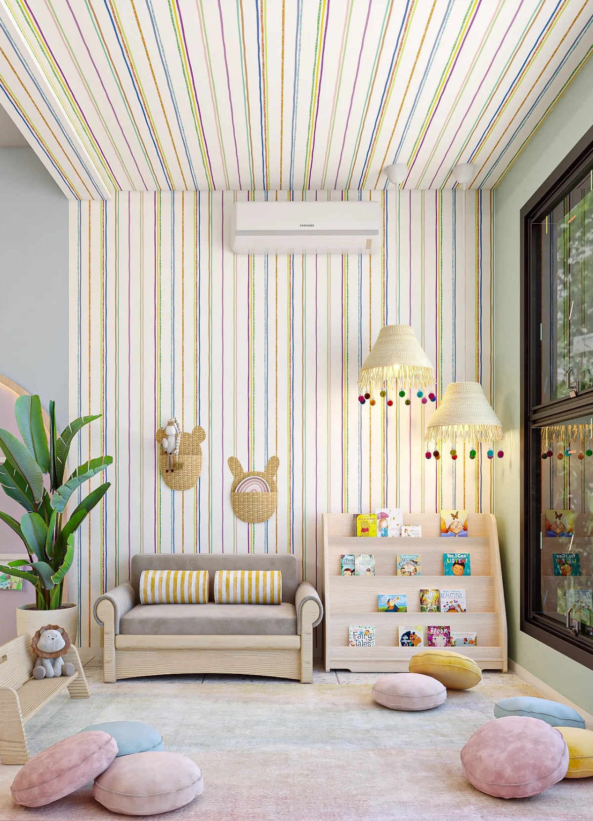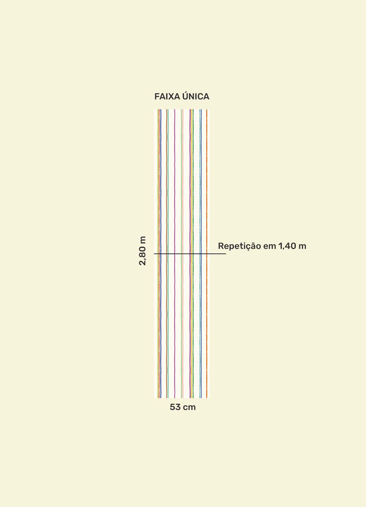 O Papel de Parede Listrado da Sorte é como um portal da magia: permite que as cores, aventuras e o carinho invadam o quartinho infantil com alegria e encanto. Além de ser um item que transforma a decoração, nosso Papel de Parede infantil é de base vinílica e impressão de alta definição, para que você tenha um item de muita qualidade para decorar o quarto infantil. O acabamento é fosco e a textura suave, substituindo pinturas com tinta de forma mais prática e durável. E a junção das faixas não é sobreposta, mas alinhada lado a lado. Consulte a disponibilidade de estoque a pronta entrega.