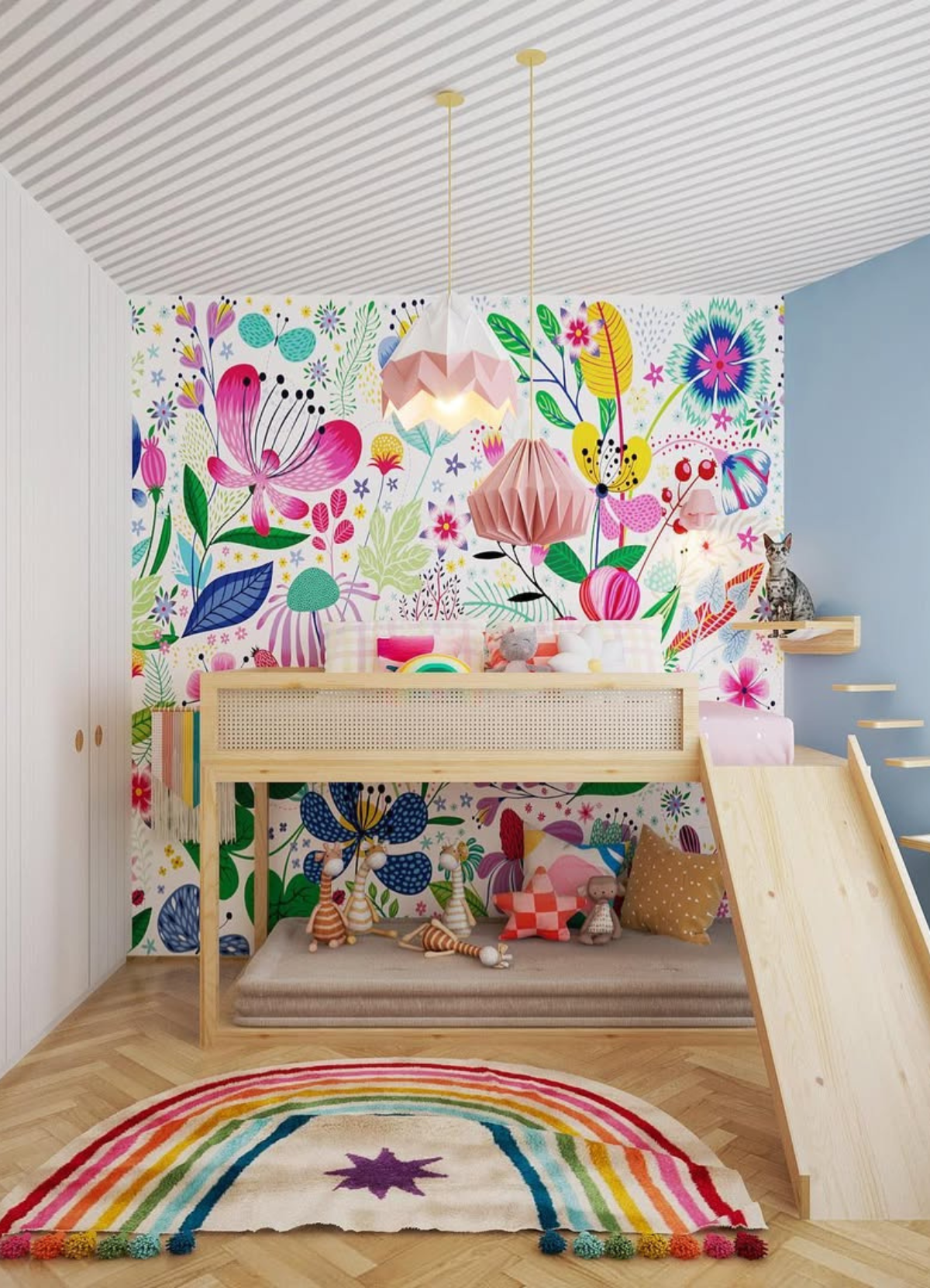 O Papel de Parede Listrado Diagonal Cinza é como um portal da magia: permite que as cores, aventuras e o carinho invadam o quartinho infantil com alegria e encanto. Além de ser um item que transforma a decoração, nosso Papel de Parede infantil é de base vinílica e impressão de alta definição, para que você tenha um item de muita qualidade para decorar o quarto infantil. O acabamento é fosco e a textura suave, substituindo pinturas com tinta de forma mais prática e durável. E a junção das faixas não é sobreposta, mas alinhada lado a lado. Consulte a disponibilidade de estoque a pronta entrega.