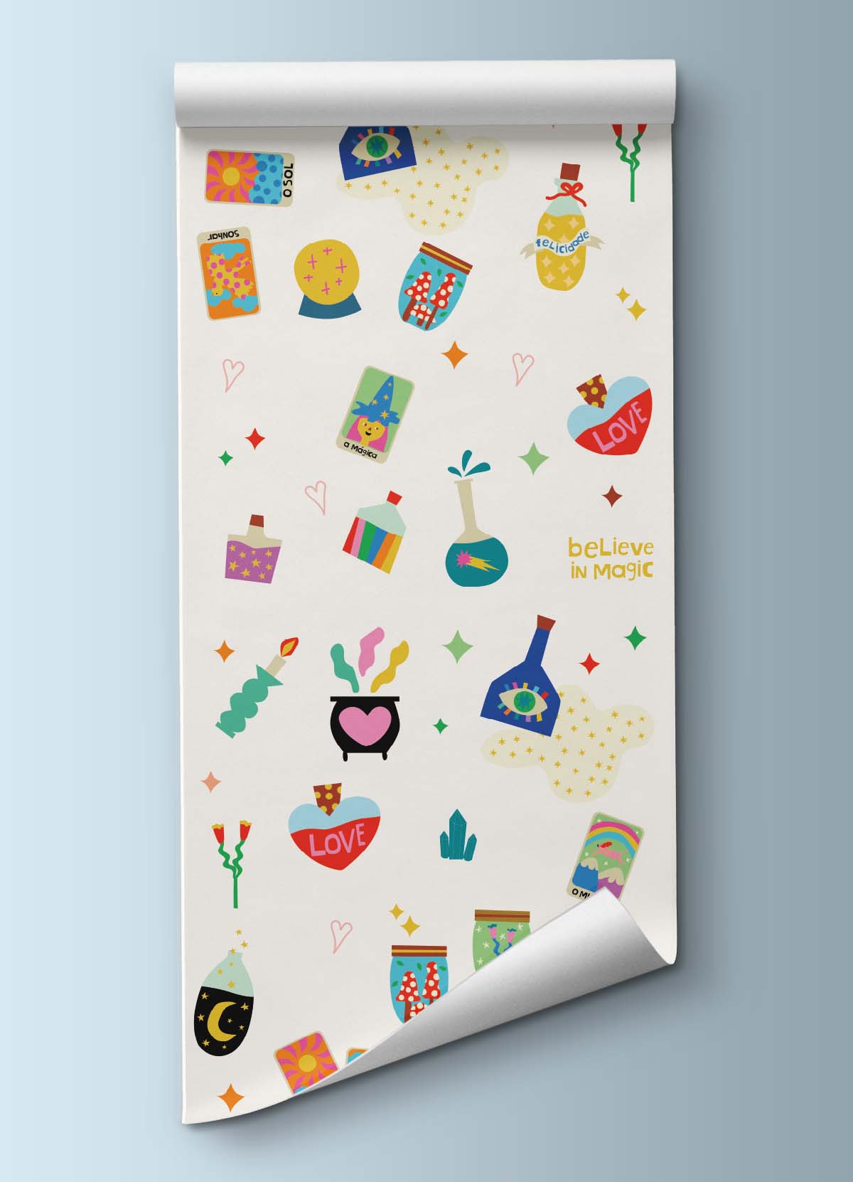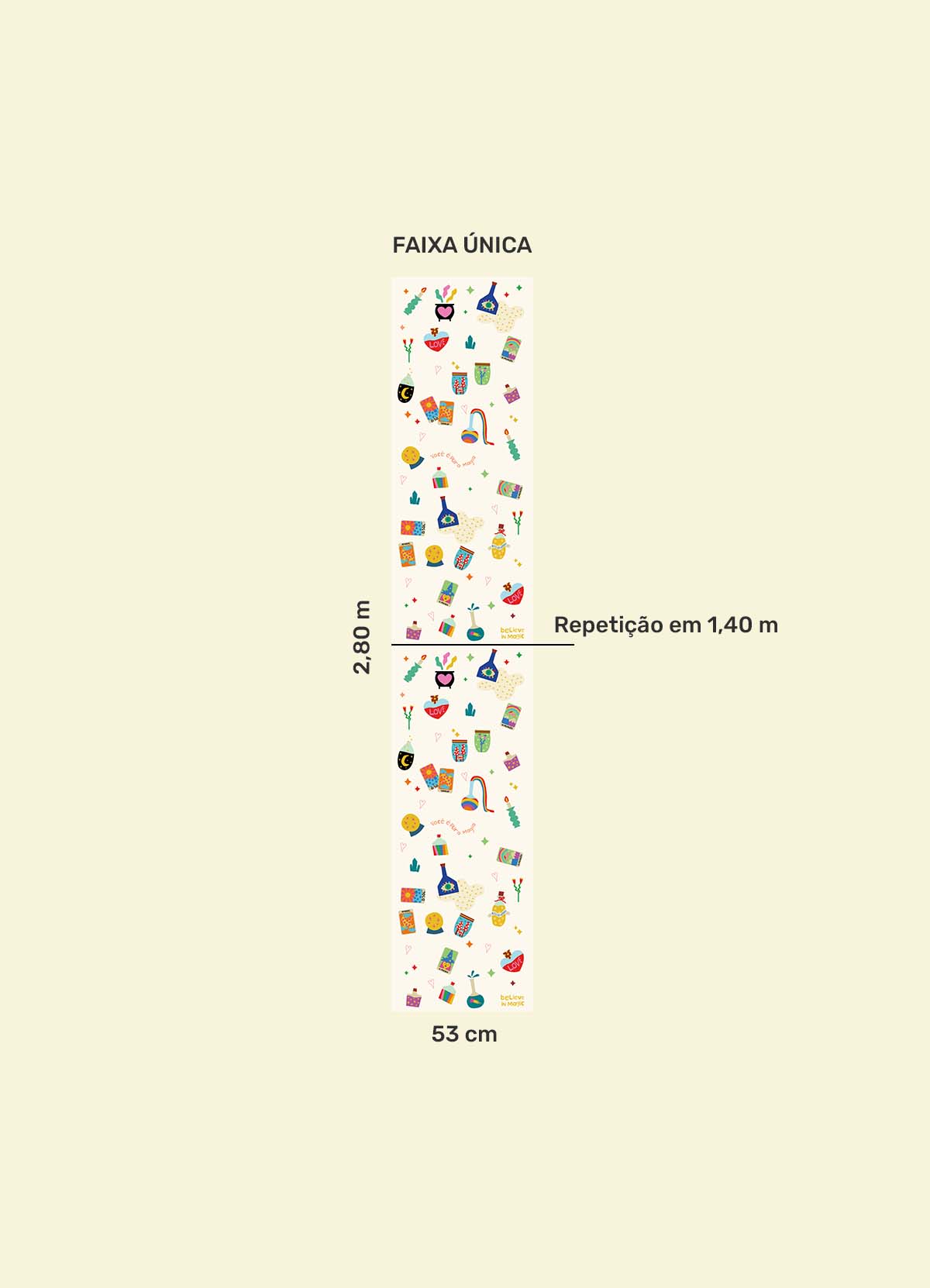 O Papel de Parede Magia é como um portal da magia: permite que as cores, aventuras e o carinho invadam o quartinho infantil com alegria e encanto. Além de ser um item que transforma a decoração, nosso Papel de Parede infantil é de base vinílica e impressão de alta definição, para que você tenha um item de muita qualidade para decorar o quarto infantil. O acabamento é fosco e a textura suave, substituindo pinturas com tinta de forma mais prática e durável. E a junção das faixas não é sobreposta, mas alinhada lado a lado. Consulte a disponibilidade de estoque a pronta entrega.