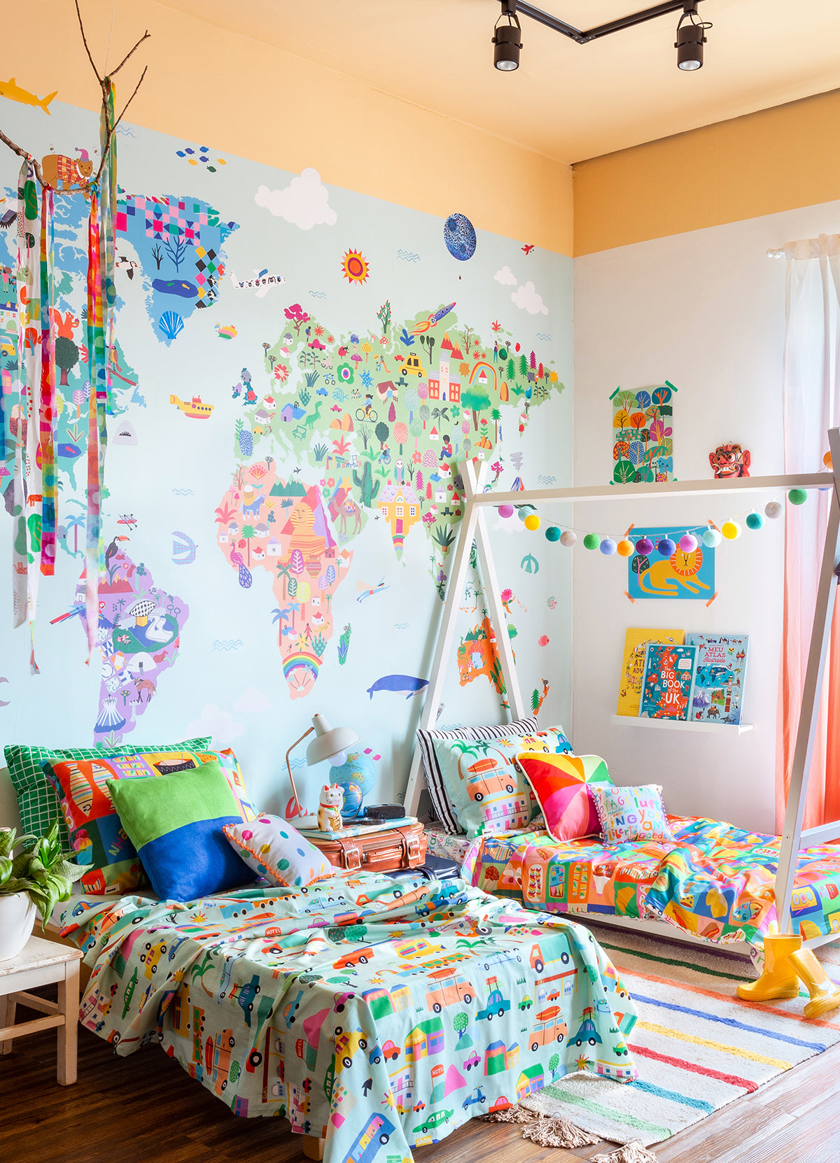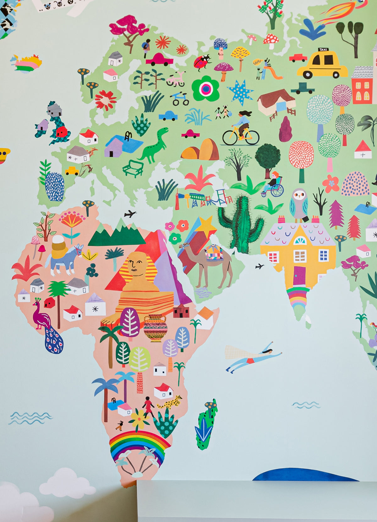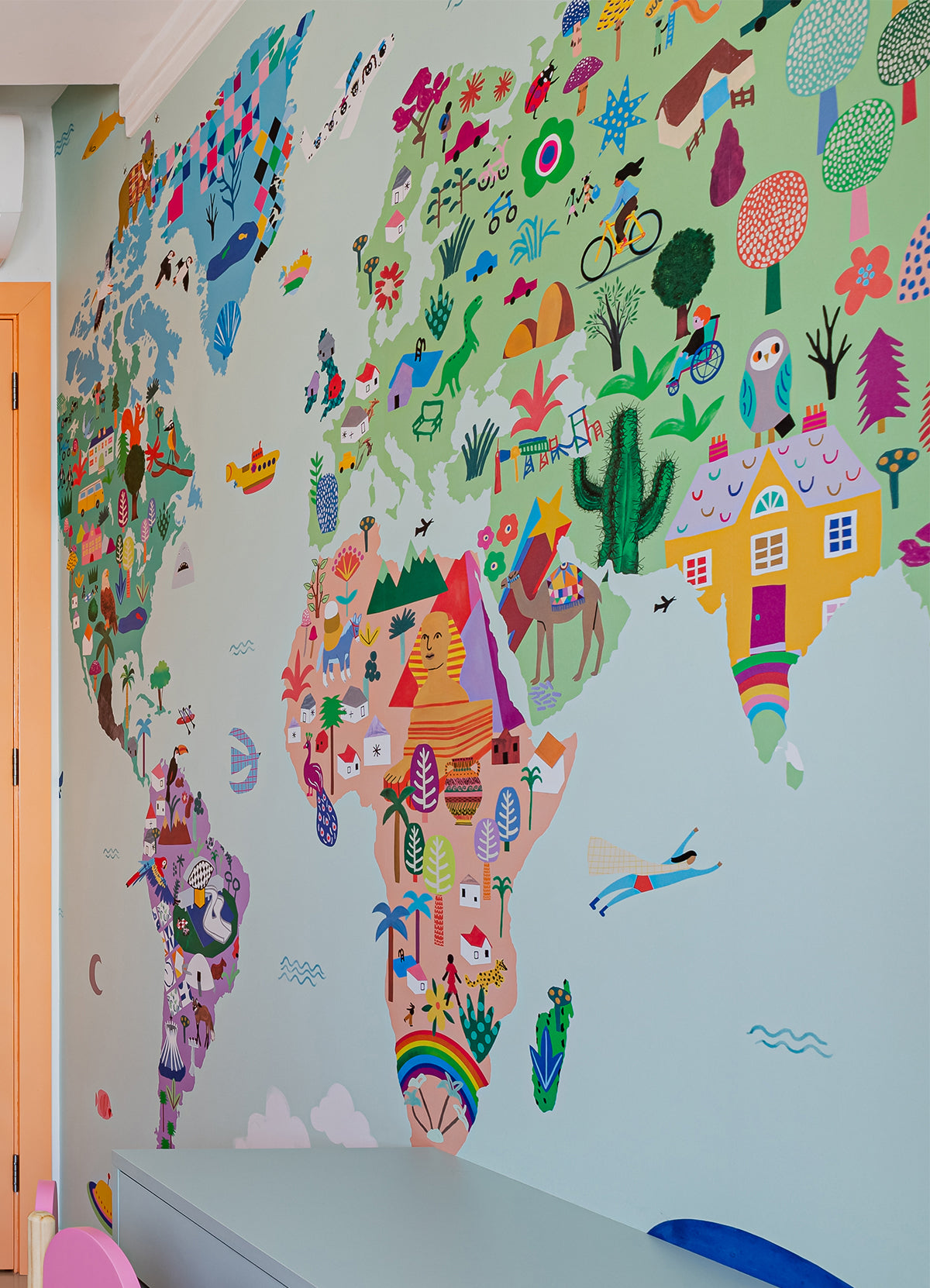 O Papel de Parede Mapa-Múndi é como um portal da magia: permite que as cores, aventuras e o carinho invadam o quartinho infantil com alegria e encanto. Além de ser um item que transforma a decoração, nosso papel de parede infantil é de base vinílica e impressão de alta definição, para que você tenha um item de muita qualidade para decorar o quarto infantil. O acabamento é fosco e a textura suave, substituindo pinturas com tinta de forma mais prática e durável. E a junção das faixas não é sobreposta, mas alinhada lado a lado. Consulte a disponibilidade de estoque a pronta entrega.