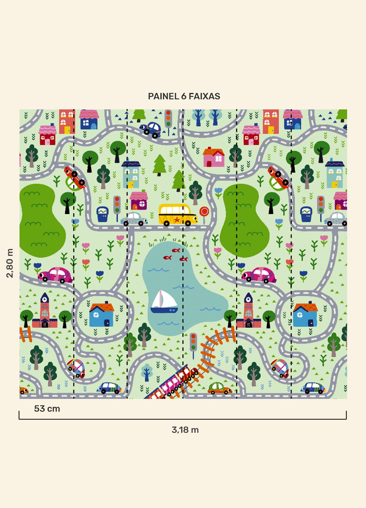 O Papel de Parede Pela Cidade é como um portal da magia: permite que as cores, aventuras e o carinho invadam o quartinho infantil com alegria e encanto. Além de ser um item que transforma a decoração, nosso papel de parede infantil é de base vinílica e impressão de alta definição, para que você tenha um item de muita qualidade para decorar o quarto infantil. O acabamento é fosco e a textura suave, substituindo pinturas com tinta de forma mais prática e durável. E a junção das faixas não é sobreposta, mas alinhada lado a lado. Consulte a disponibilidade de estoque a pronta entrega.