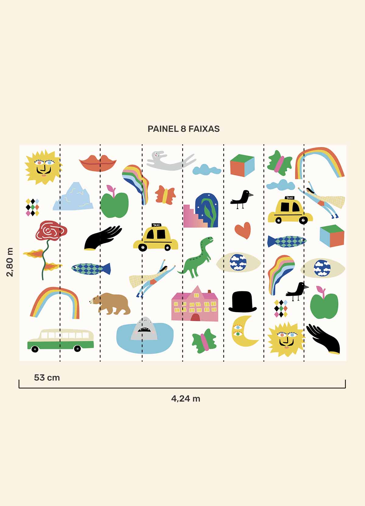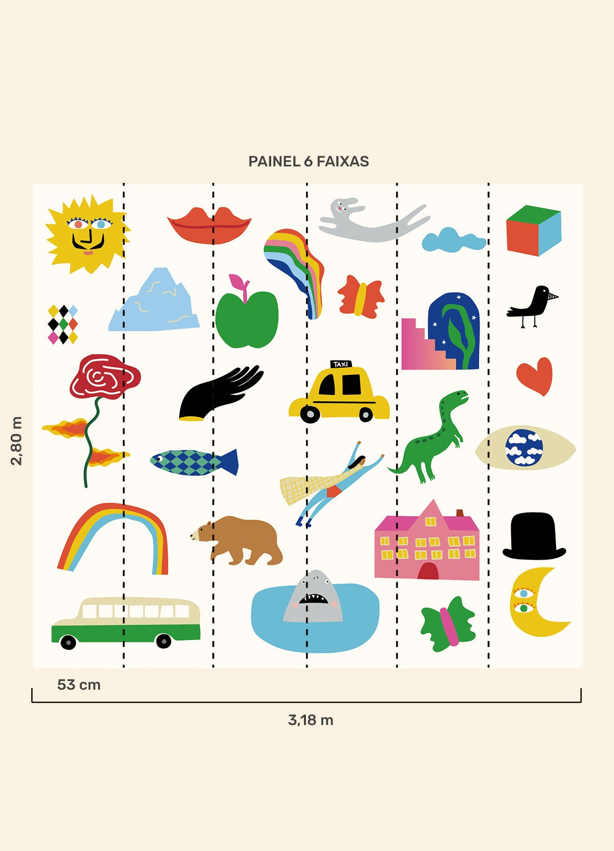 O Papel de Parede Surrealismo é como um portal da magia: permite que as cores, aventuras e o carinho invadam o quartinho infantil com alegria e encanto. Além de ser um item que transforma a decoração, nosso papel de parede infantil é de base vinílica e impressão de alta definição, para que você tenha um item de muita qualidade para decorar o quarto infantil. O acabamento é fosco e a textura suave, substituindo pinturas com tinta de forma mais prática e durável. E a junção das faixas não é sobreposta, mas alinhada lado a lado. Consulte a disponibilidade de estoque a pronta entrega.