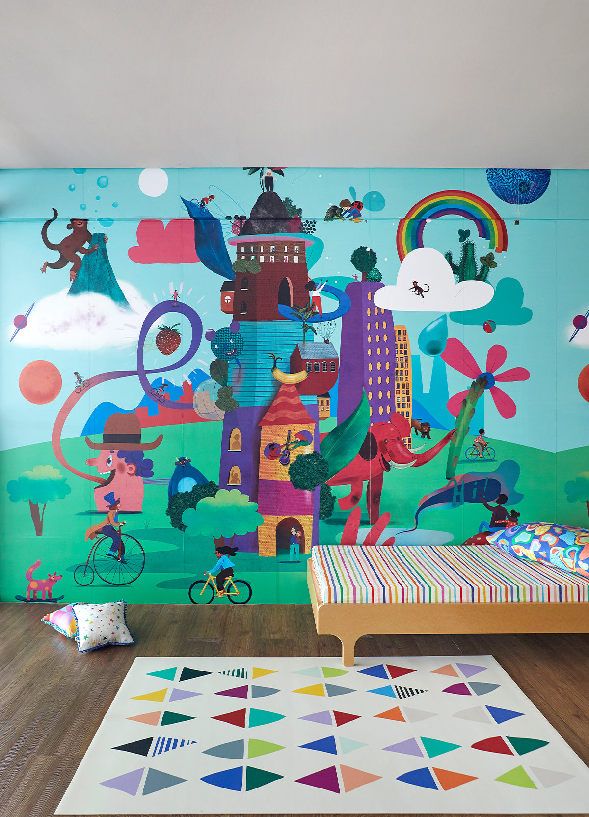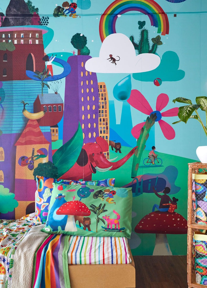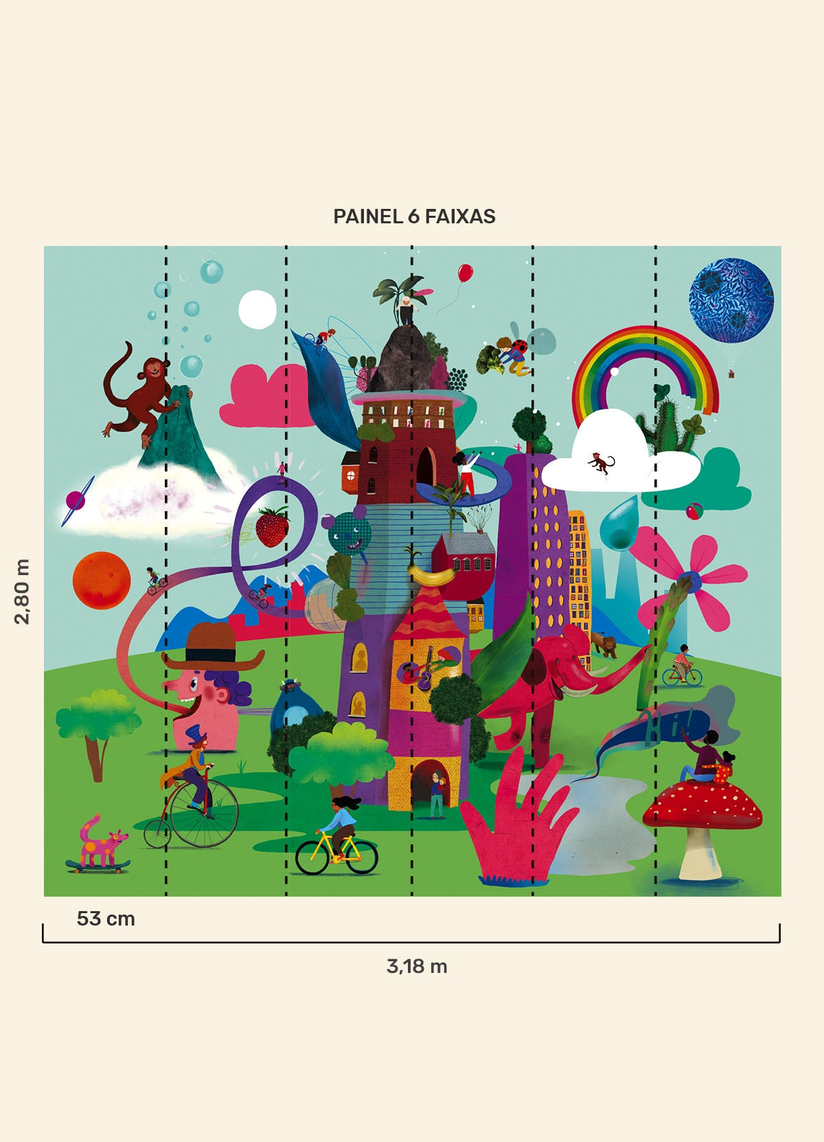 O Papel de Parede Utopia é como um portal da magia: permite que as cores, aventuras e o carinho invadam o quartinho infantil com alegria e encanto. Além de ser um item que transforma a decoração, nosso papel de parede infantil é de base vinílica e impressão de alta definição, para que você tenha um item de muita qualidade para decorar o quarto infantil. O acabamento é fosco e a textura suave, substituindo pinturas com tinta de forma mais prática e durável. E a junção das faixas não é sobreposta, mas alinhada lado a lado. Consulte a disponibilidade de estoque a pronta entrega.