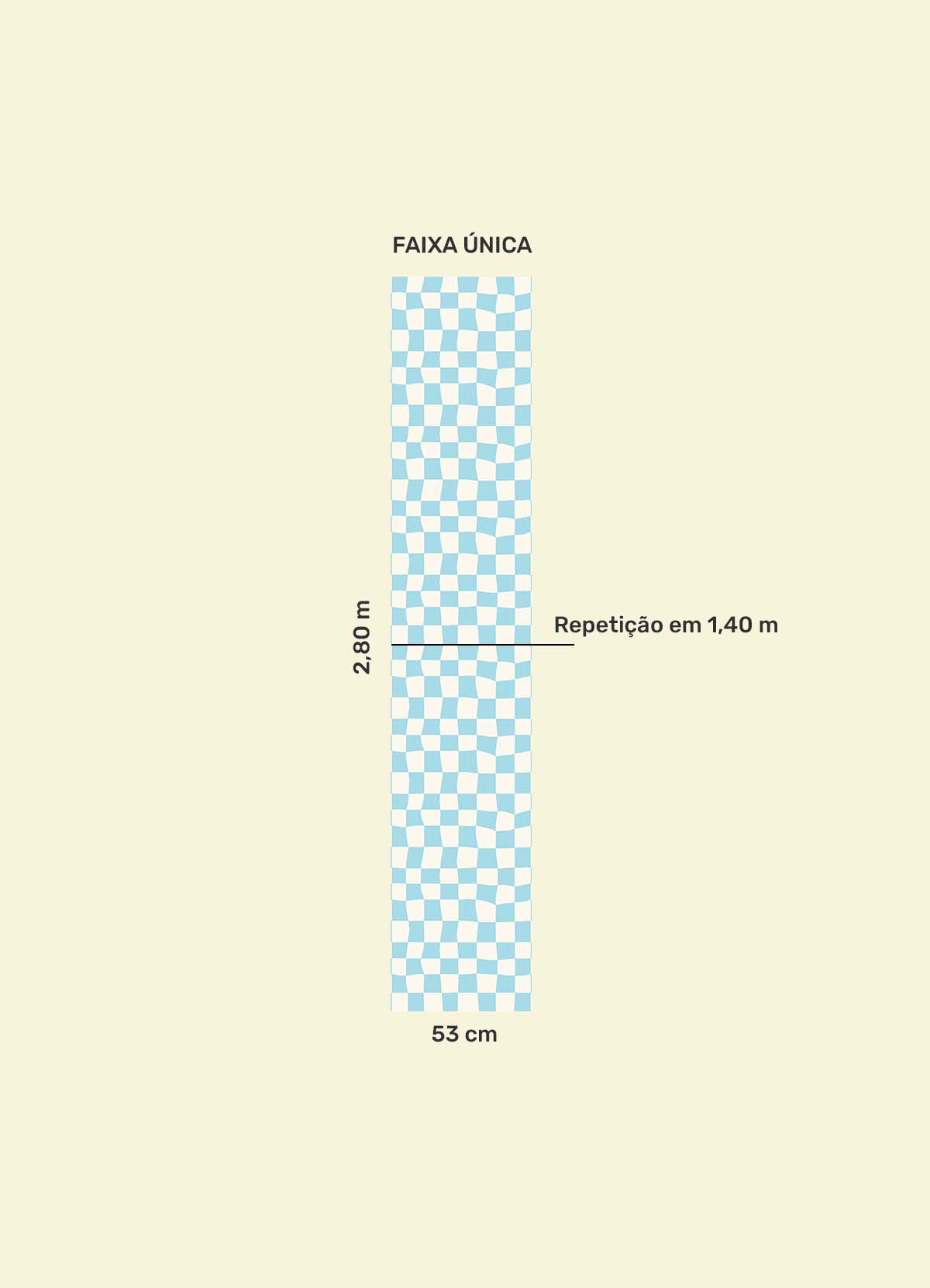 O Papel de Parede Xadrez Azul é como um portal da magia: permite que as cores, aventuras e o carinho invadam o quartinho infantil com alegria e encanto. Além de ser um item que transforma a decoração, nosso Papel de Parede infantil é de base vinílica e impressão de alta definição, para que você tenha um item de muita qualidade para decorar o quarto infantil. O acabamento é fosco e a textura suave, substituindo pinturas com tinta de forma mais prática e durável. E a junção das faixas não é sobreposta, mas alinhada lado a lado. Consulte a disponibilidade de estoque a pronta entrega.