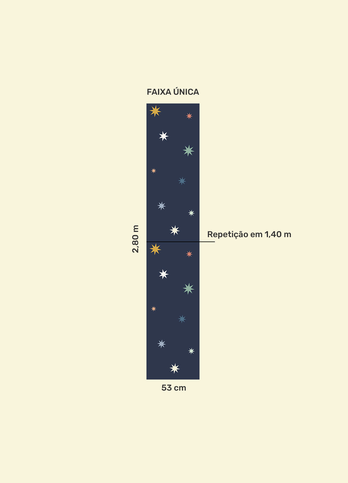O Papel de Parede Universo de Estrelas é como um portal da magia: permite que as cores, aventuras e o carinho invadam o quartinho infantil com alegria e encanto. Além de ser um item que transforma a decoração, nosso Papel de Parede infantil é de base vinílica e impressão de alta definição, para que você tenha um item de muita qualidade para decorar o quarto infantil. O acabamento é fosco e a textura suave, substituindo pinturas com tinta de forma mais prática e durável. E a junção das faixas não é sobreposta, mas alinhada lado a lado. Consulte a disponibilidade de estoque a pronta entrega.