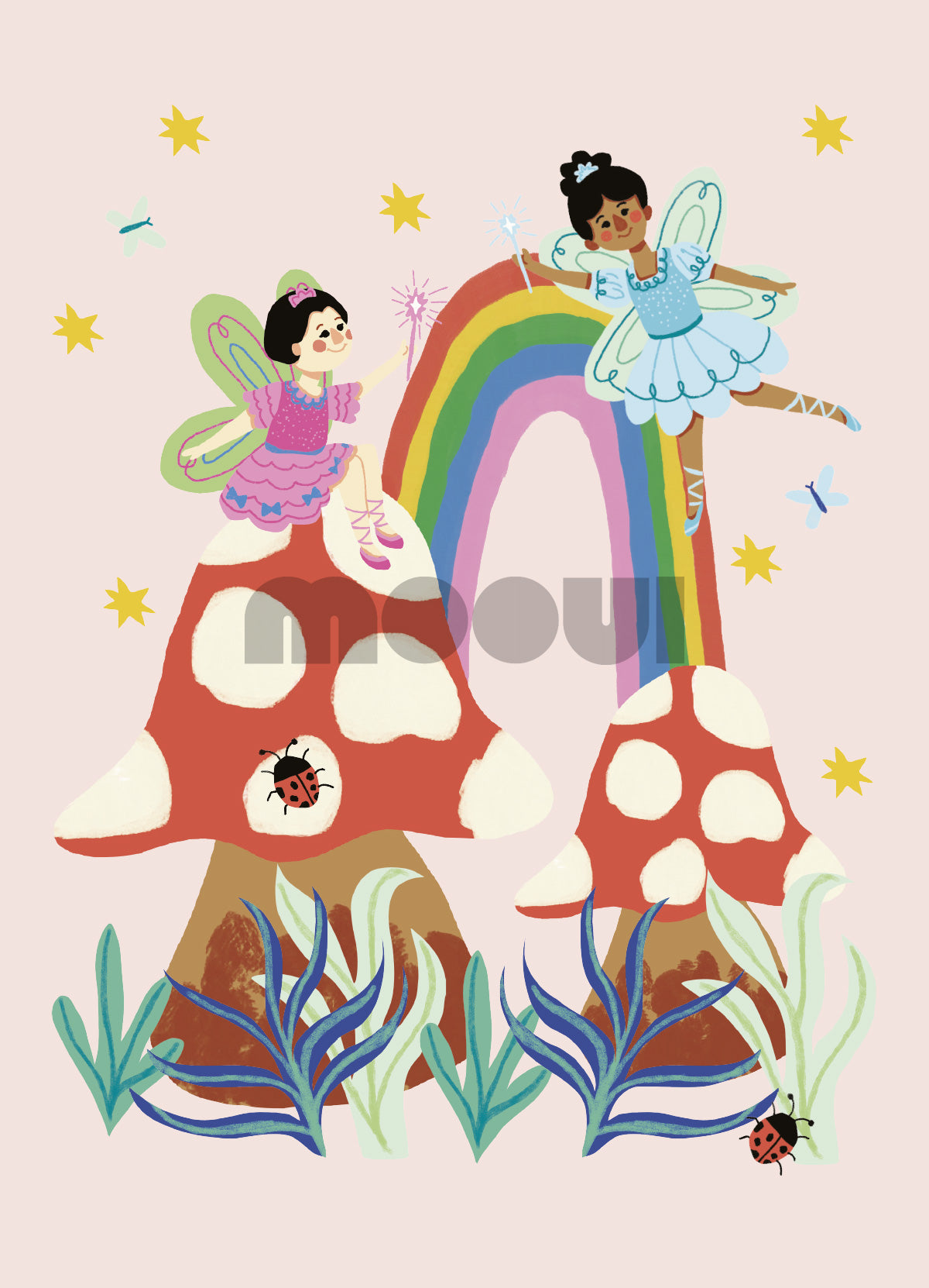 O Pôster Infantil Cogumelos e Fadas da MOOUI transforma a decoração do quarto ou brinquedoteca com suas estampas exclusivas. Disponível em duas versões: sem moldura para maior versatilidade ou com moldura para um acabamento refinado e pronto para pendurar.