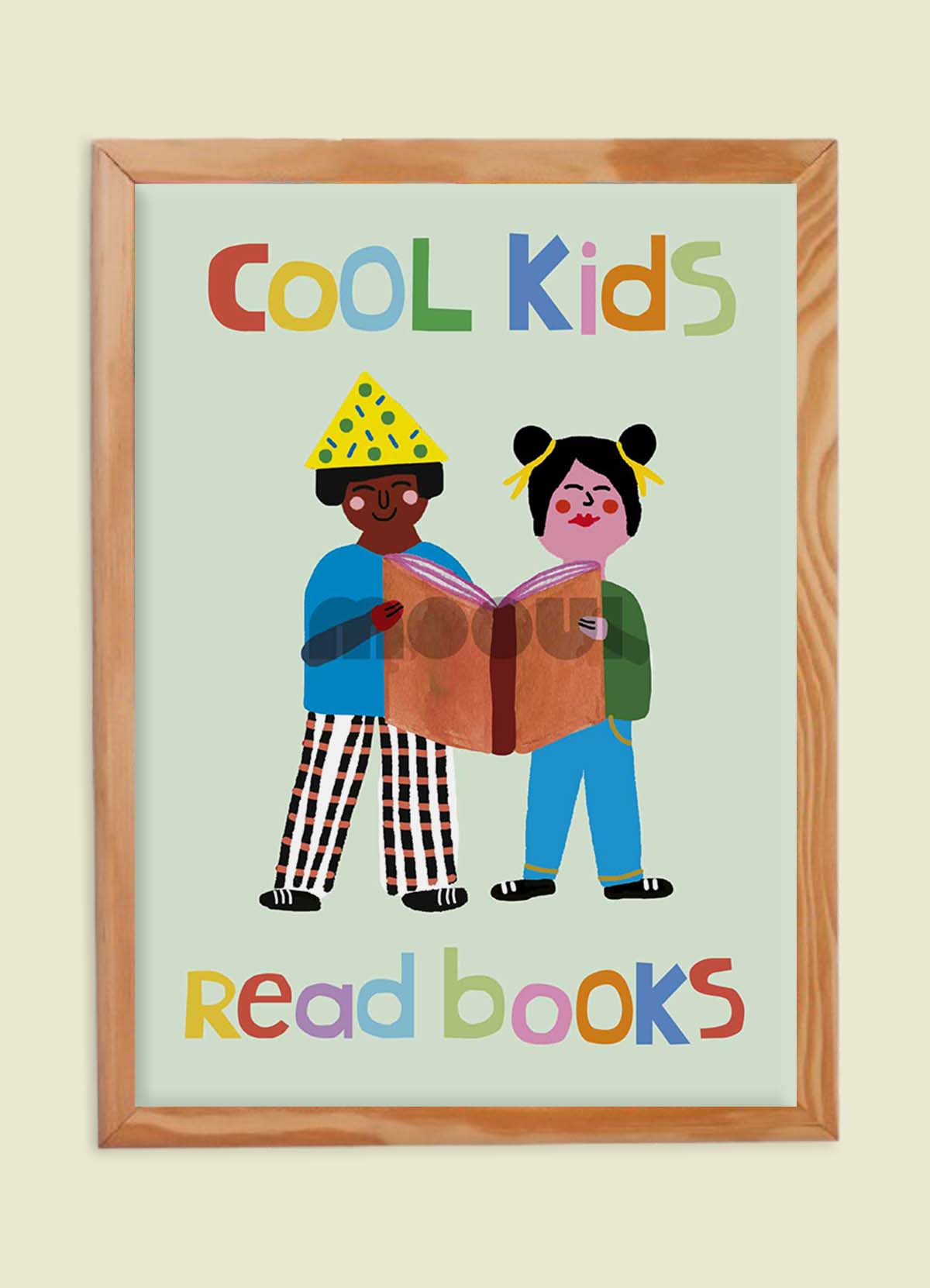 O Pôster Infantil Cool Kids Read Books da MOOUI transforma a decoração do quarto ou brinquedoteca com suas estampas exclusivas. Disponível em duas versões: sem moldura para maior versatilidade ou com moldura para um acabamento refinado e pronto para pendurar.