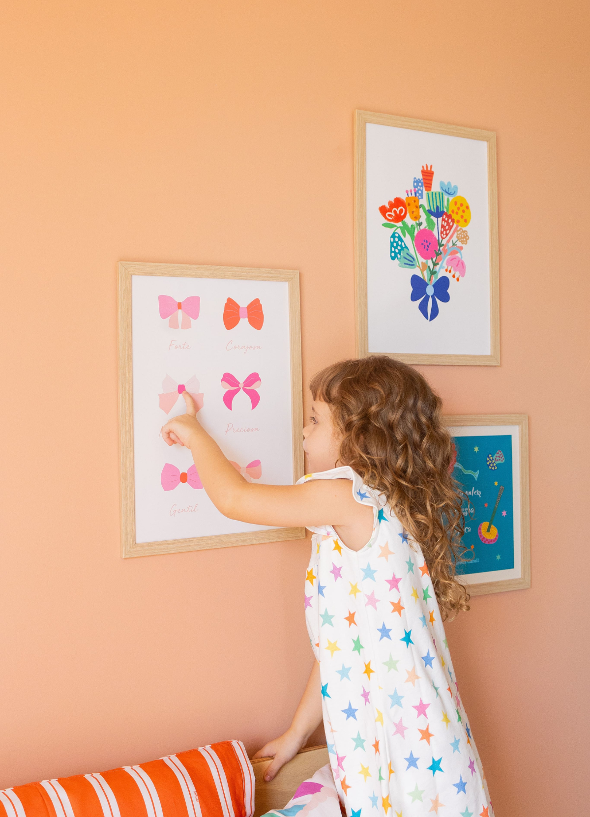 O Pôster Infantil Laços Da Gentileza da MOOUI transforma a decoração do quarto ou brinquedoteca com suas estampas exclusivas. Disponível em duas versões: sem moldura para maior versatilidade ou com moldura para um acabamento refinado e pronto para pendurar.