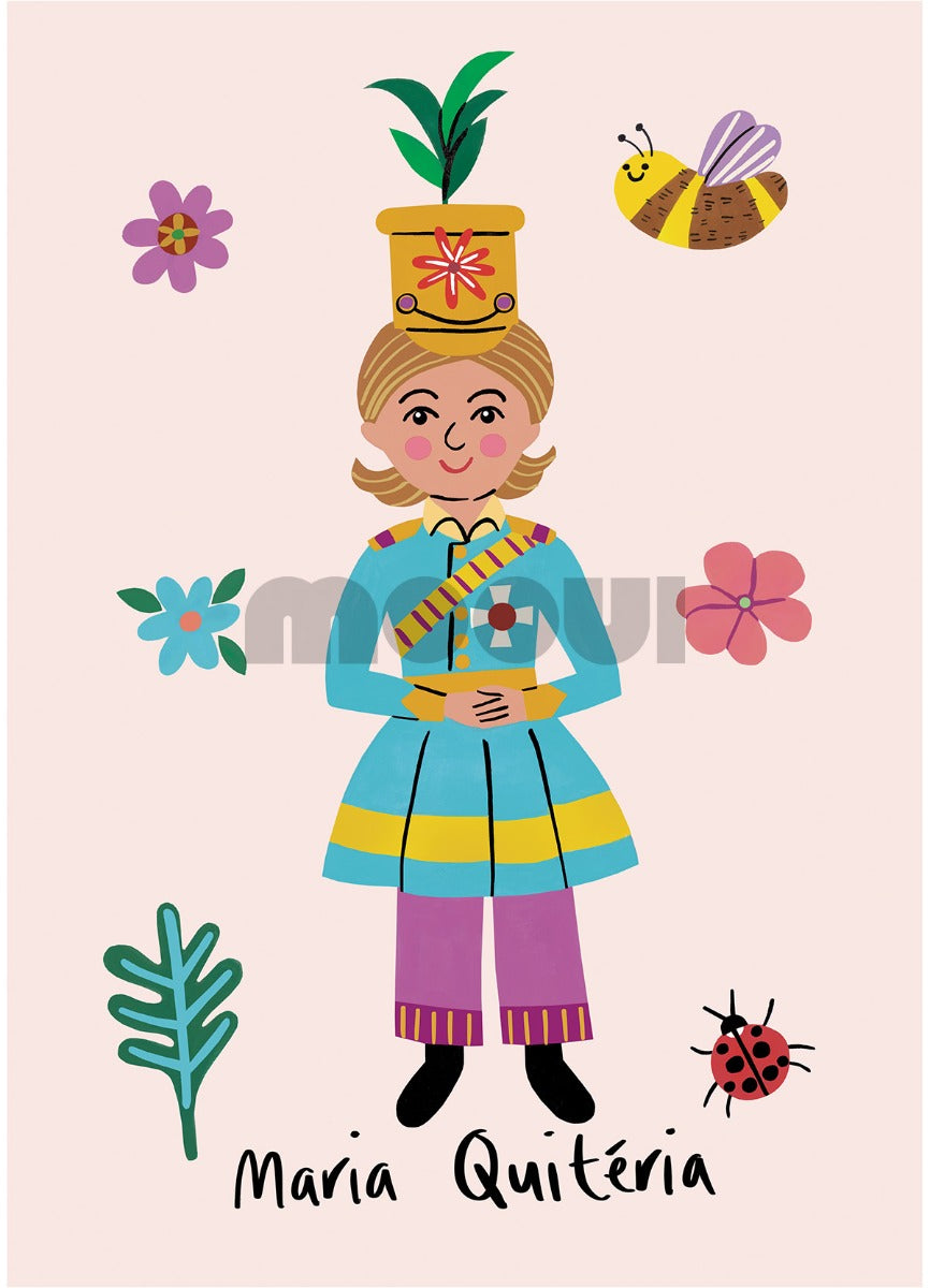 O Pôster Maria Quiteria da MOOUI possui estampa exclusiva para deixar a parede do quarto da criança ou da brinquedoteca muito mais charmosa. Nosso poster infantil é uma gravura em papel couché, que pode ser usada de duas formas: ser enquadrada, ou aplicada na parede com fita adesiva. Escolha a forma que mais combina com a decoração infantil do seu cantinho e abuse dos posters combinados aos adornos, varais e demais itens decorativos para parede.