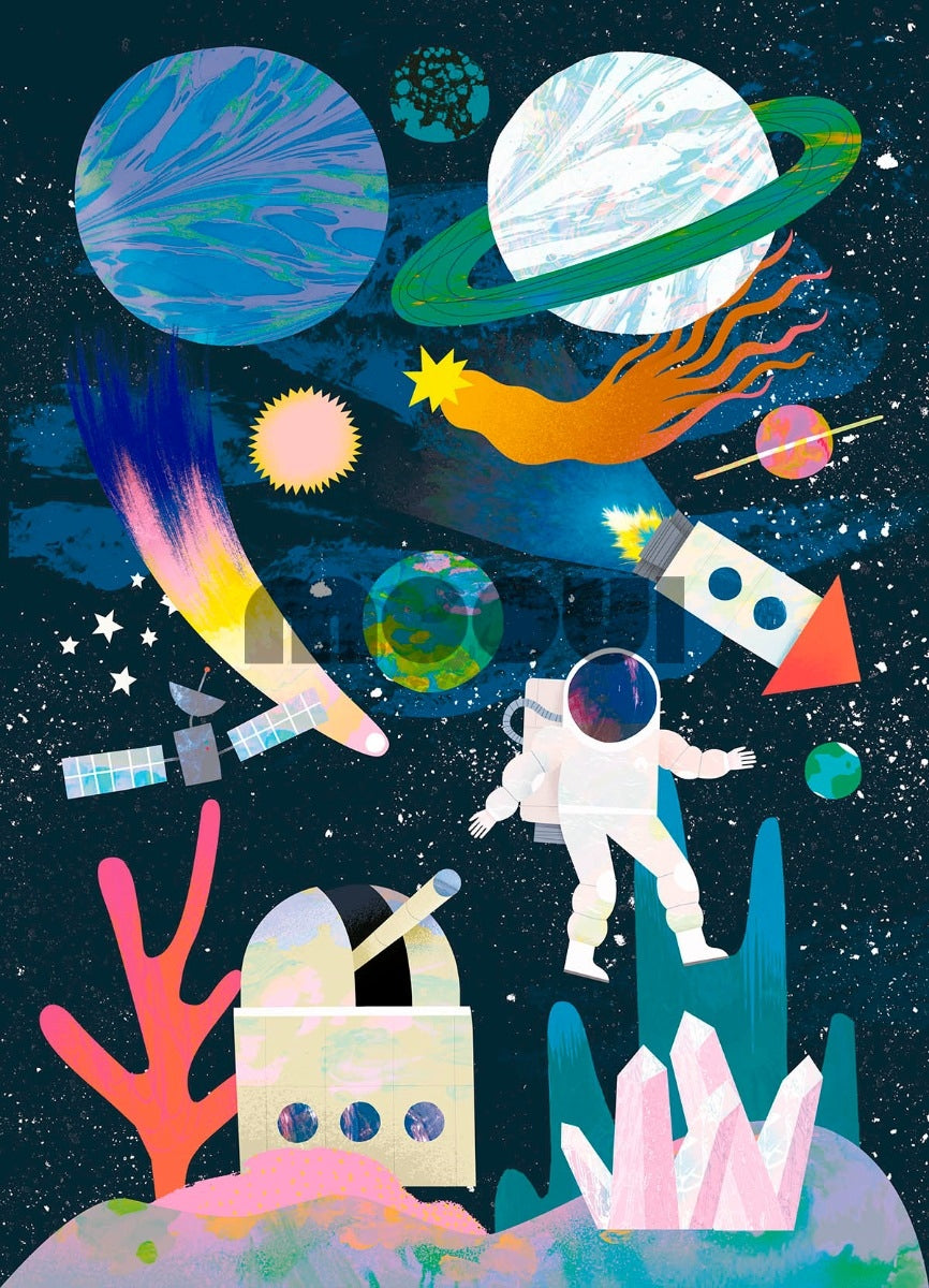 O Pôster Viagem ao Espaço da MOOUI possui estampa exclusiva para deixar a parede do quarto da criança ou da brinquedoteca muito mais charmosa. Nosso poster infantil é uma gravura em papel couché, que pode ser usada de duas formas: ser enquadrada, ou aplicada na parede com fita adesiva. Escolha a forma que mais combina com a decoração infantil do seu cantinho e abuse dos posters combinados aos adornos, varais e demais itens decorativos para parede.