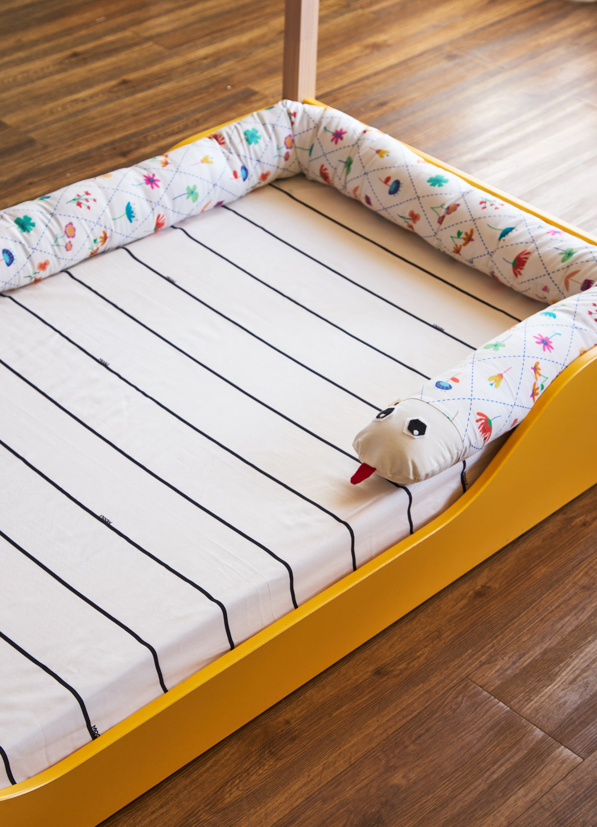 O Protetor de Berço Minhocão Cheiro De Flor da MOOUI protege o bebê contra impactos na cabeceira e laterais do berço. Com formato contínuo e versátil, acompanha o crescimento da criança podendo ser usado posteriormente na cama.