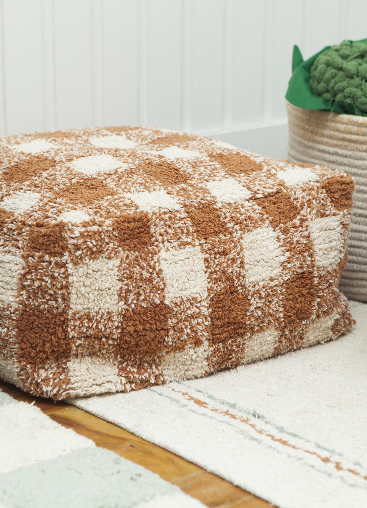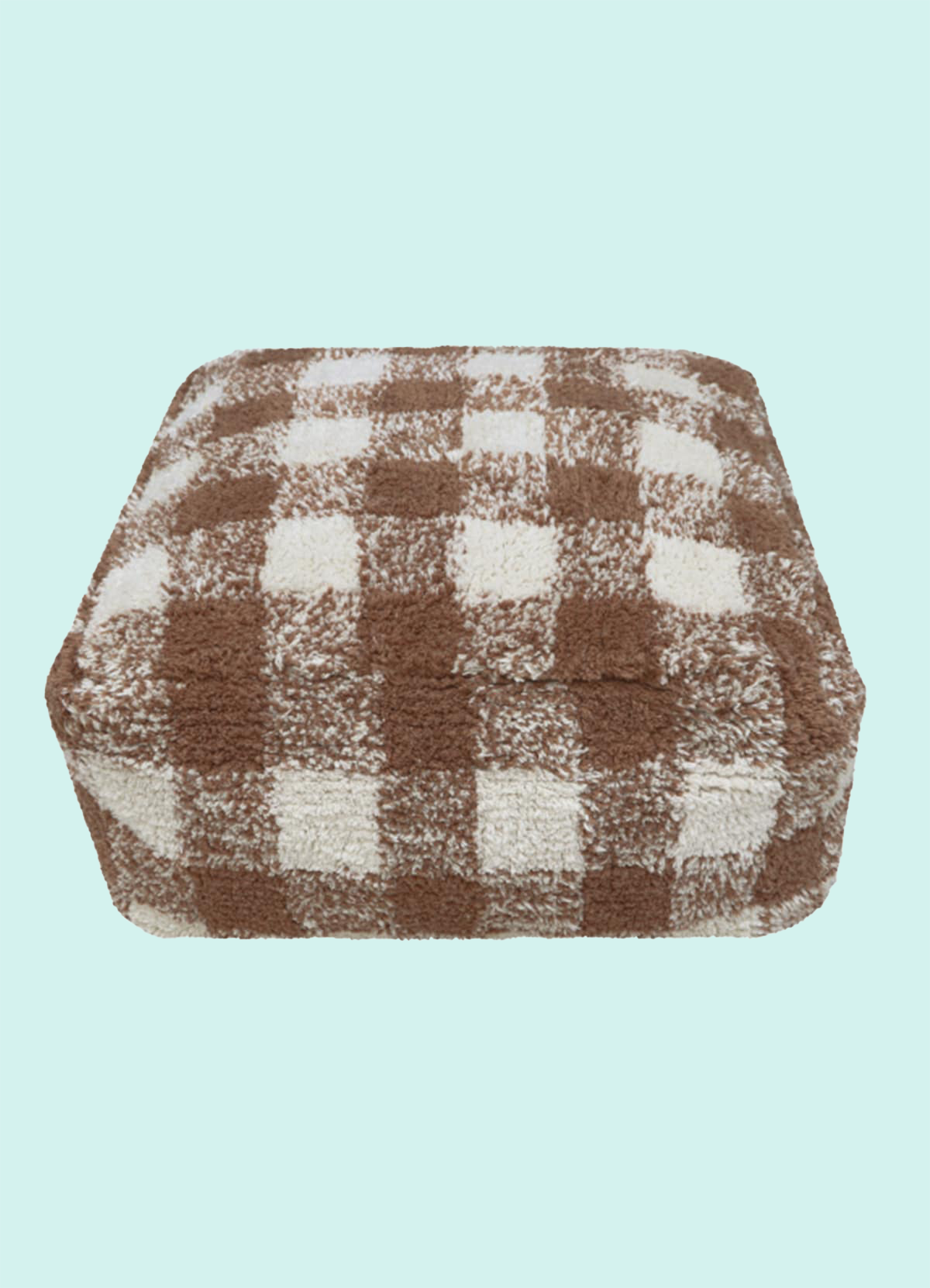 O Pufe Lorena Canals Vichy Caramelo 40x40x20cm é o toque ideal para deixar o quarto infantil moderno, acolhedor e funcional. Inspirado no clássico design xadrez, traz um charmoso vichy bicolor em Caramelo e Natural, combinando perfeitamente com nossos papéis de parede e roupas de cama exclusivas MOOUI. Feito em lona de algodão reciclado, o puff é durável e sustentável, com capa removível graças ao zíper inferior, o que facilita a lavagem e manutenção. Além de nossa linha de produtos MOOUI, você encontra aqui os queridinhos da marca espanhola Lorena Canals, conhecida por seus tapetes de algodão de alta qualidade. Esse pufe é uma escolha prática e versátil para decorar quartos de bebê e infantil, criando um ambiente moderno e estiloso para os pequenos.