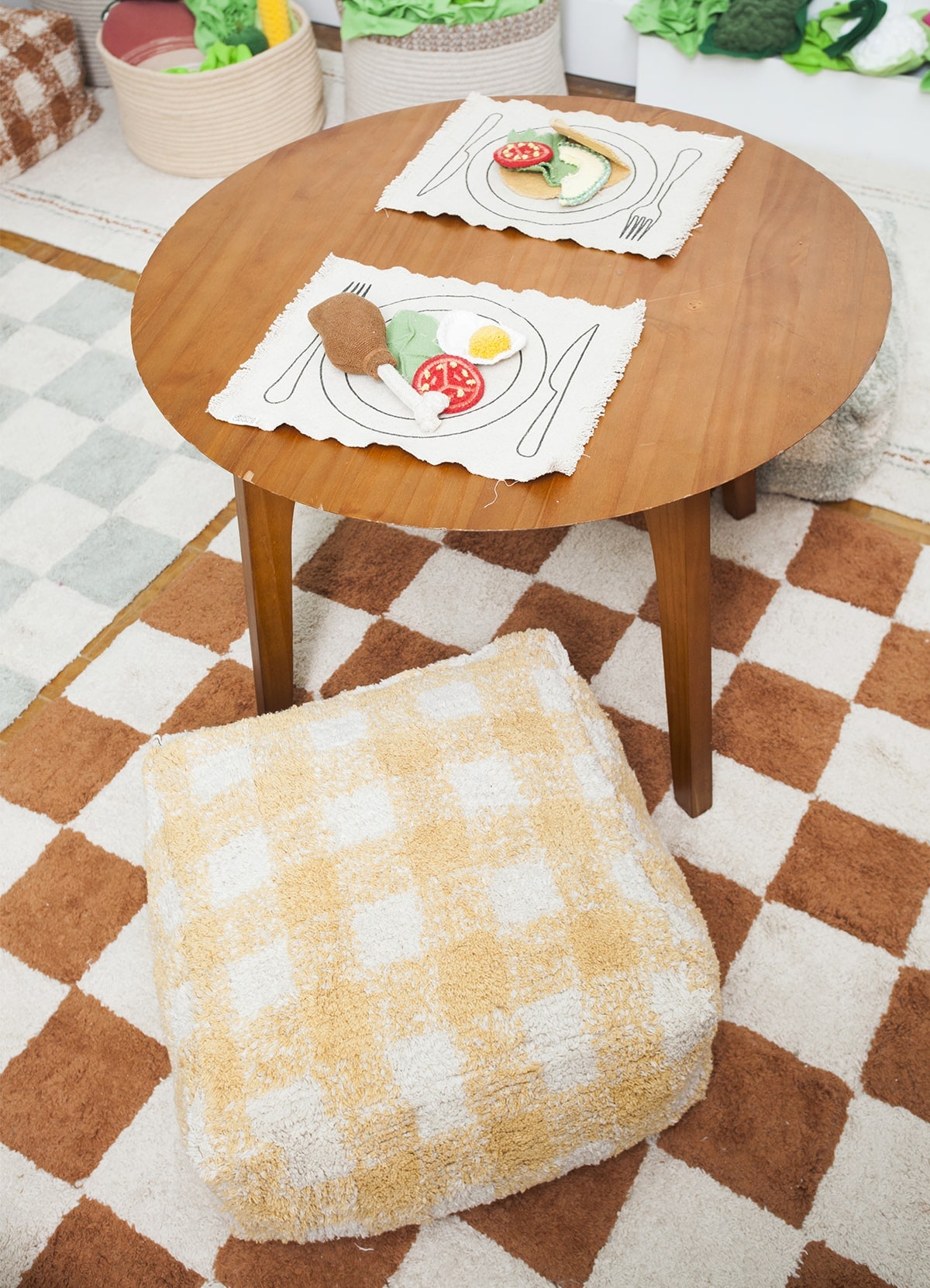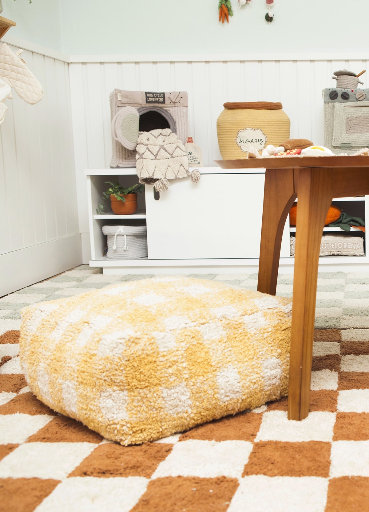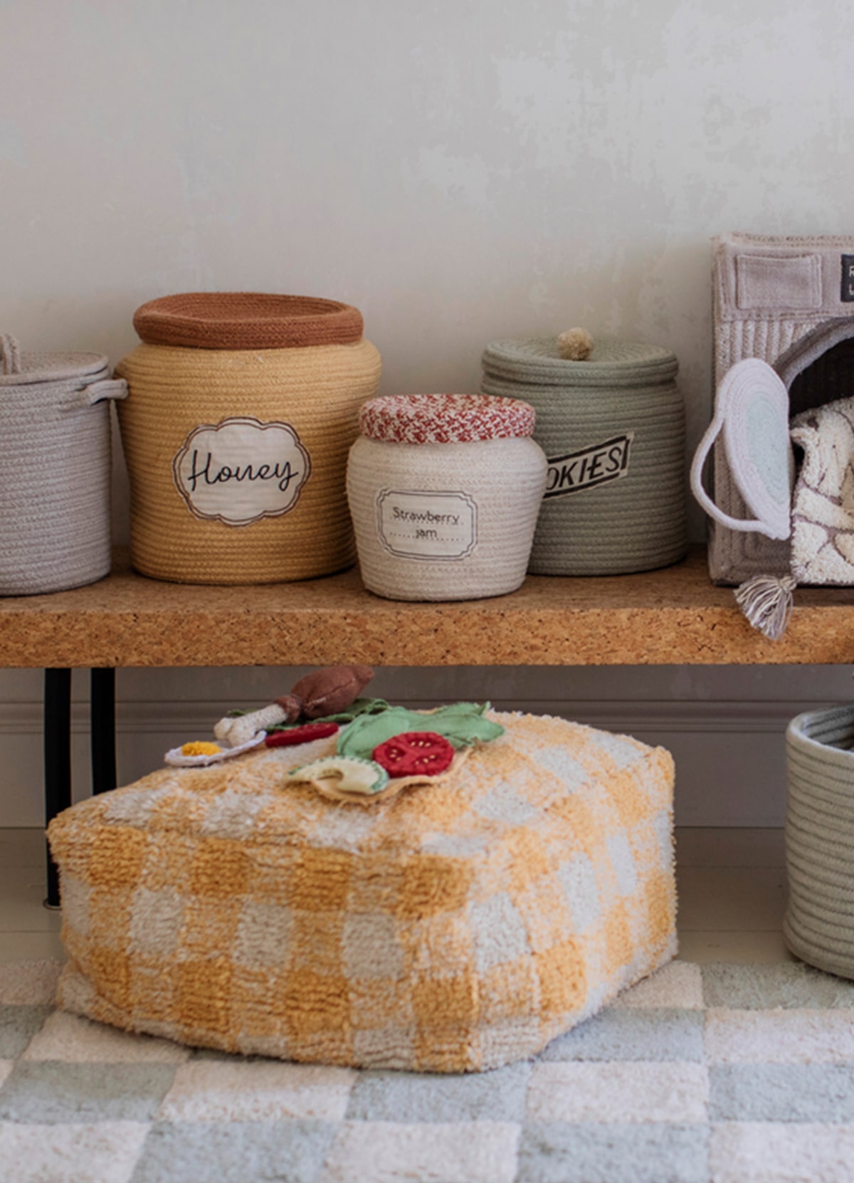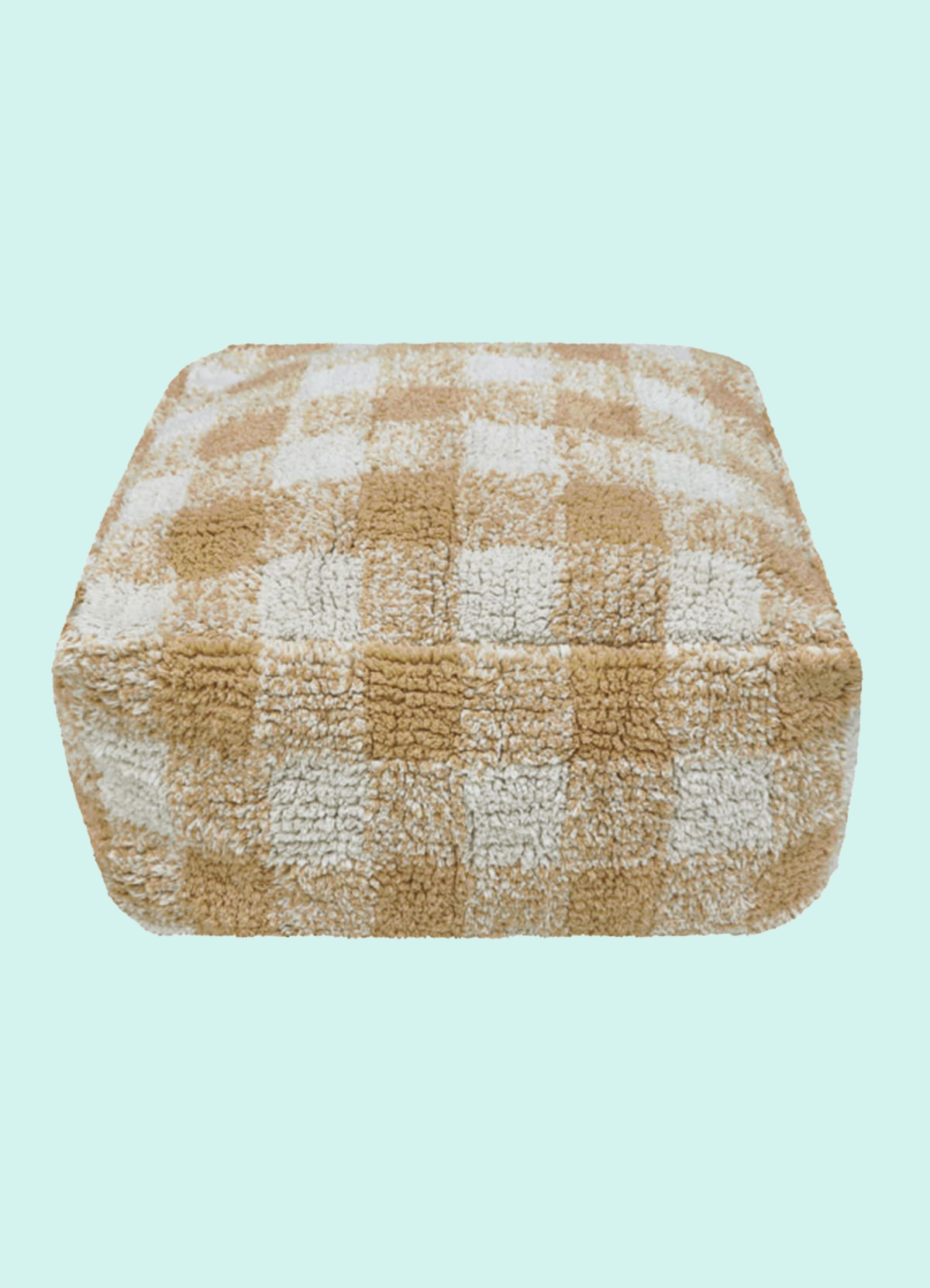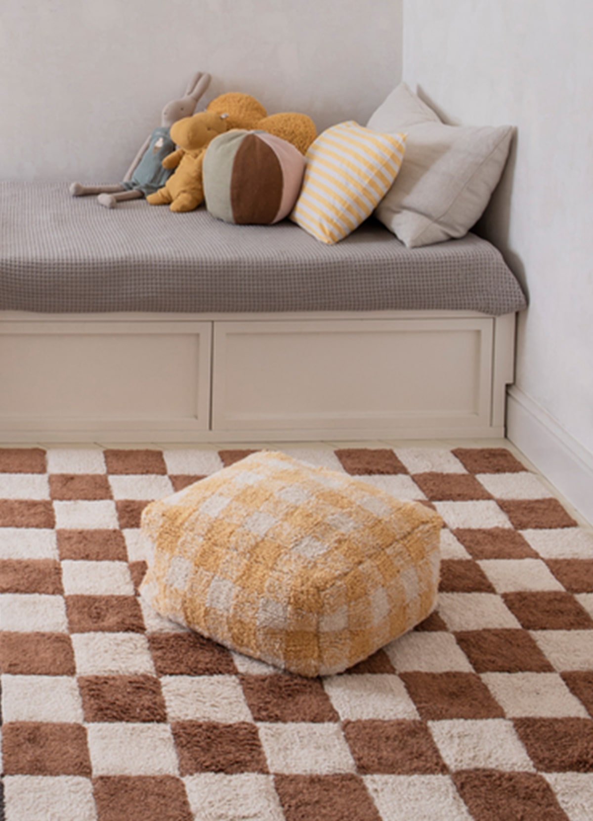 O Pufe Lorena Canals Vichy Mel 40x40x20cm é o toque ideal para deixar o quarto infantil moderno, acolhedor e funcional. Inspirado no clássico design xadrez, traz um charmoso vichy bicolor em Mel e Natural, combinando perfeitamente com nossos papéis de parede e roupas de cama exclusivas MOOUI. Feito em lona de algodão reciclado, o puff é durável e sustentável, com capa removível graças ao zíper inferior, o que facilita a lavagem e manutenção. Além de nossa linha de produtos MOOUI, você encontra aqui os queridinhos da marca espanhola Lorena Canals, conhecida por seus tapetes de algodão de alta qualidade. Esse pufe é uma escolha prática e versátil para decorar quartos de bebê e infantil, criando um ambiente moderno e estiloso para os pequenos.