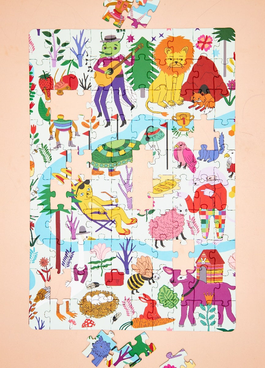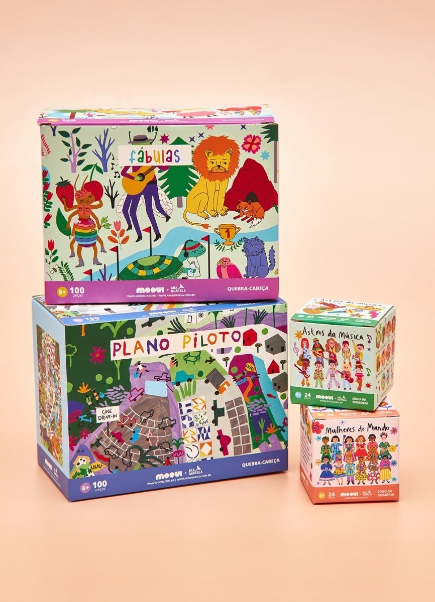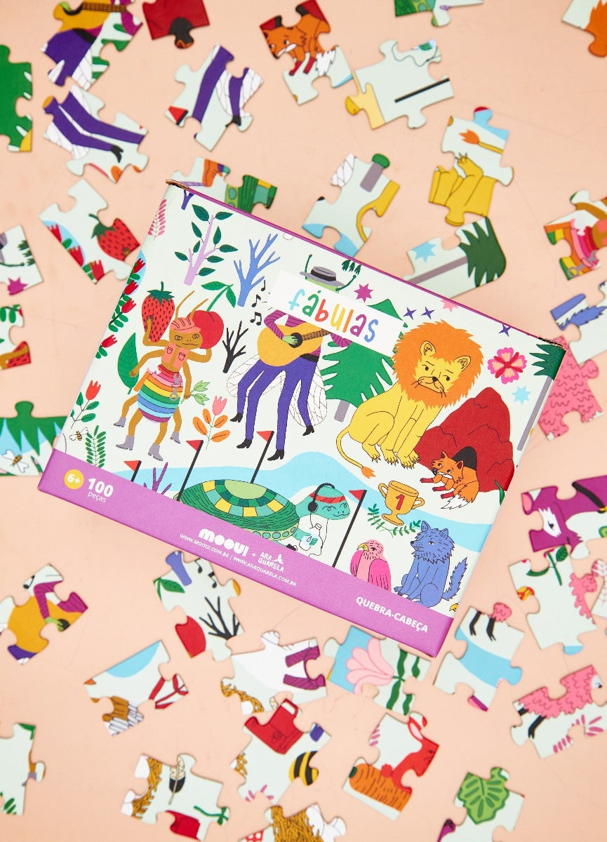 O Quebra-cabeça Fábulas, design exclusivo MOOUI é perfeito para relaxar e exercitar o cérebro ao mesmo tempo. Ideal para ser montado em família ou com os amigos onde a diversão fica garantida, a estampa Fábulas é incrível, colorida e cheia de charme. São 100 peças para você desvendar e se divertir. É indicado para crianças acima de 6 anos.
