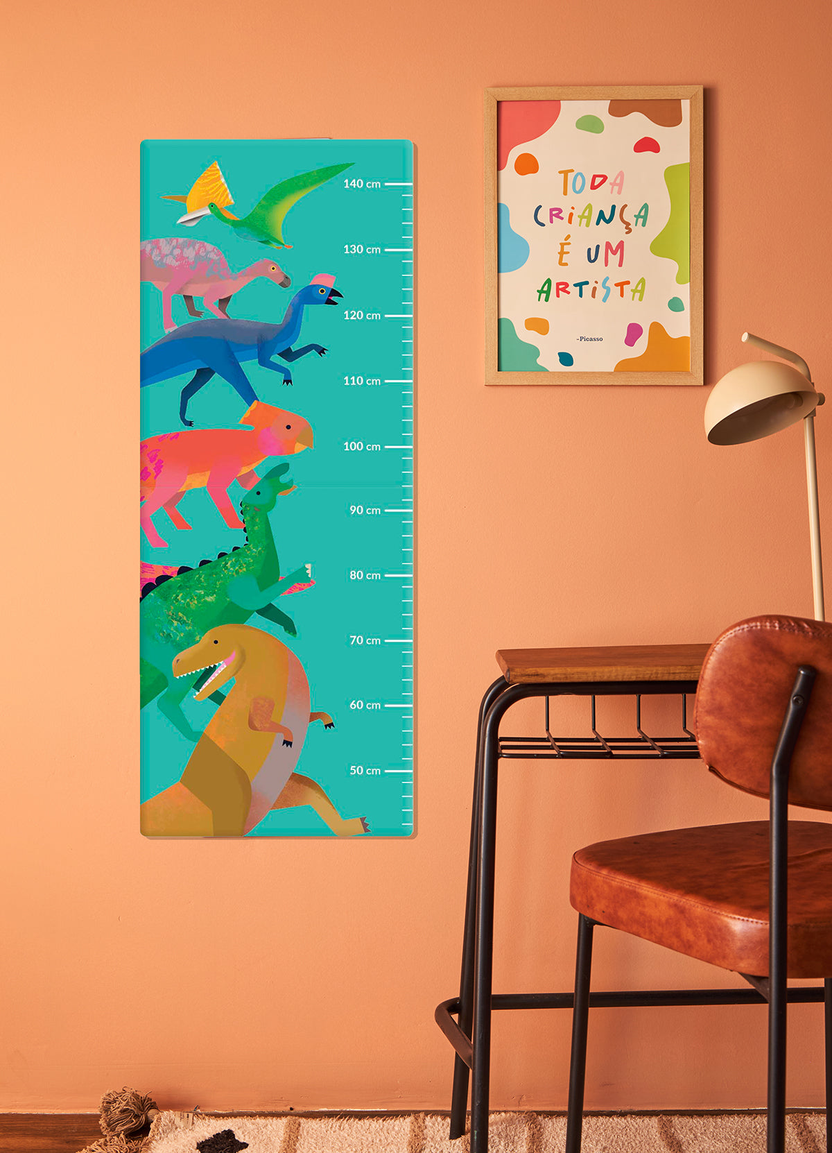 A Régua de Crescimento Dinossauro é a melhor opção para acompanhar o crescimento e o desenvolvimento da criança de forma divertida. Com cores e detalhes encantadores, a régua de altura infantil permite medir a criança até os 140cm, mas mesmo ultrapassando essa altura, a régua para medir altura continua sendo um lindo adorno de parede. A régua de altura já vem com fita dupla face para ser fixada na parede.
