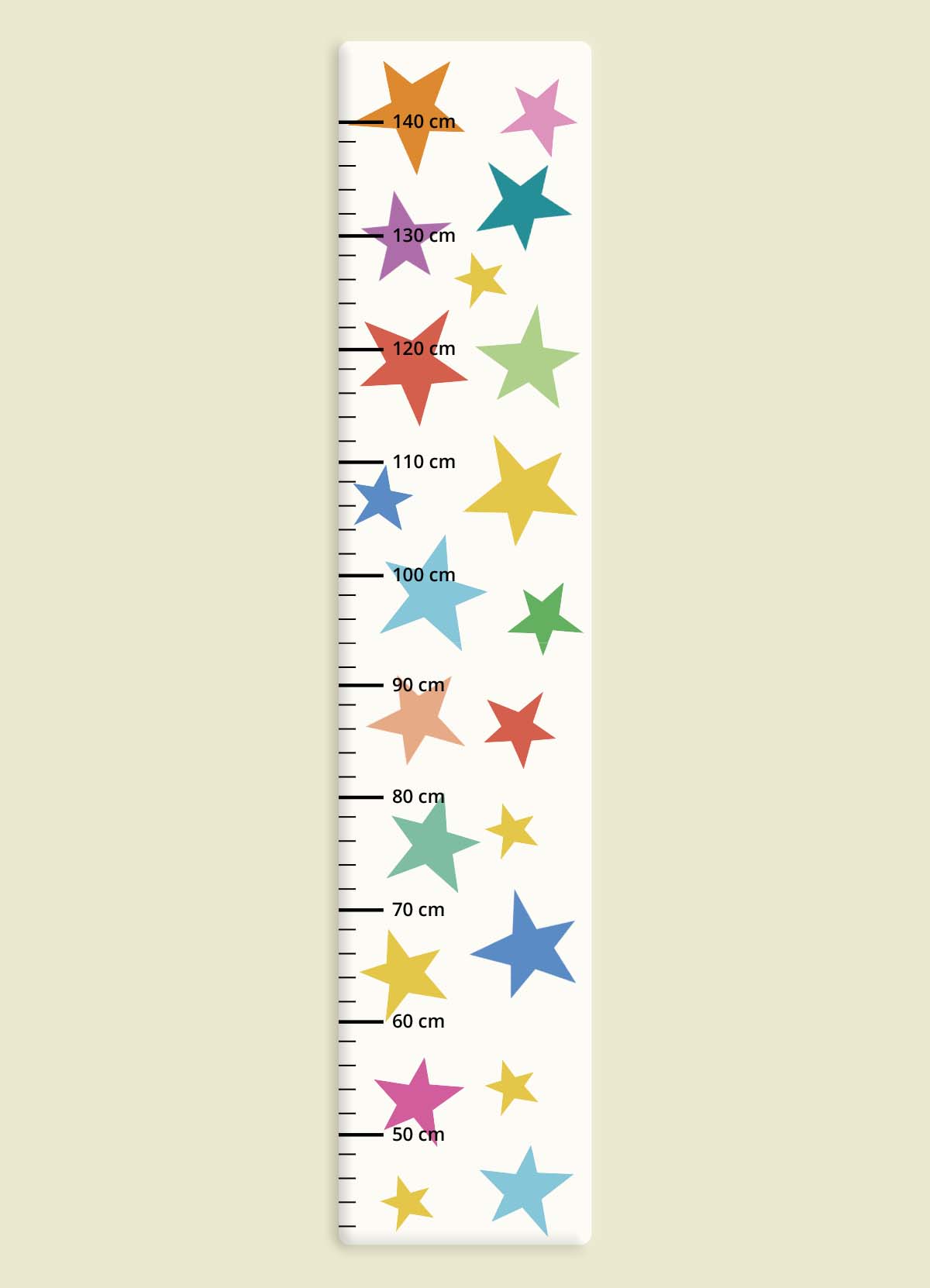 A Régua de Crescimento Estrelada da MOOUI é a maneira perfeita de acompanhar o desenvolvimento da criança de forma lúdica e decorativa. Com escala até 140cm e estampas exclusivas, torna o momento de medir a altura uma experiência divertida e memorável.