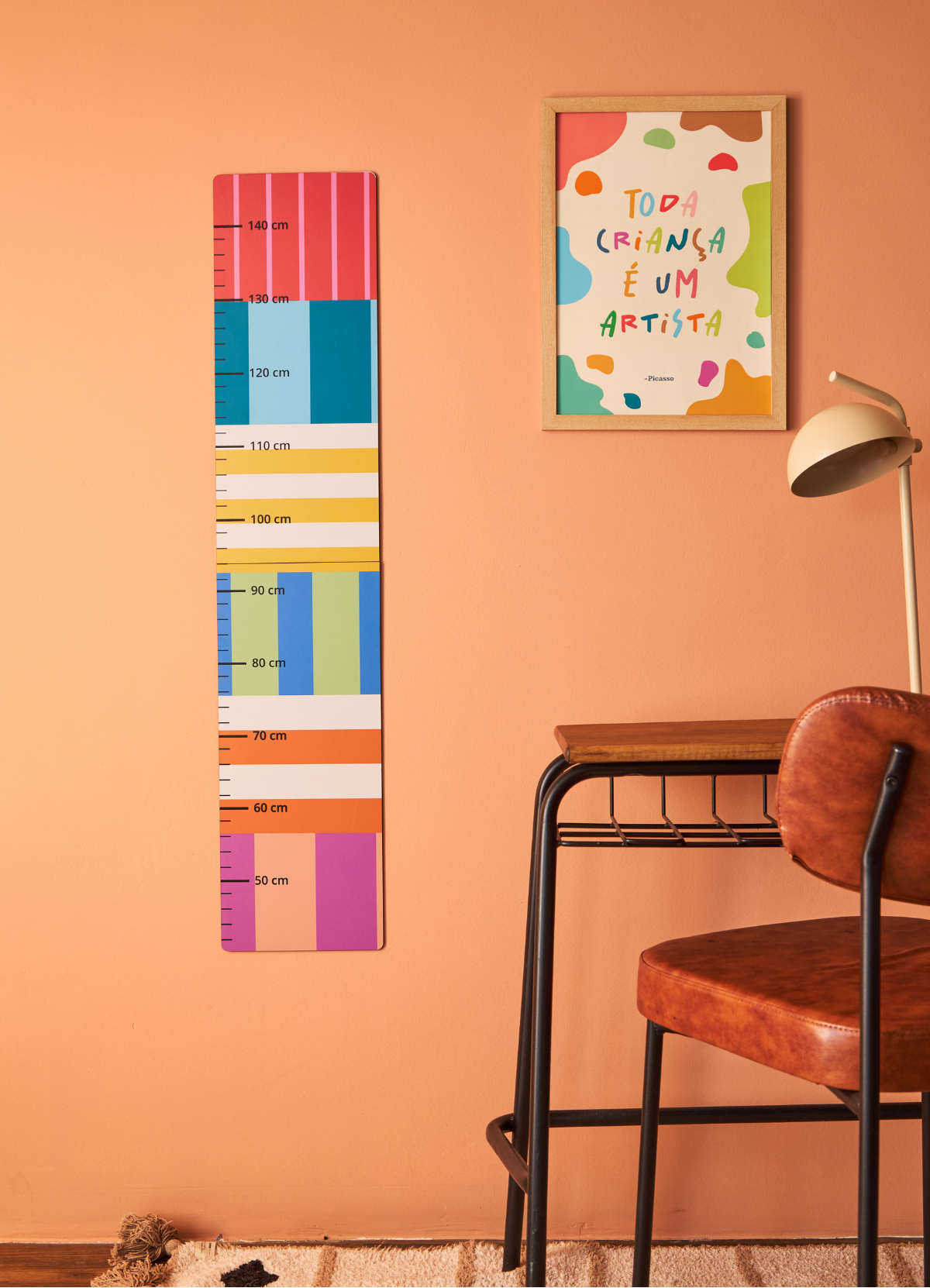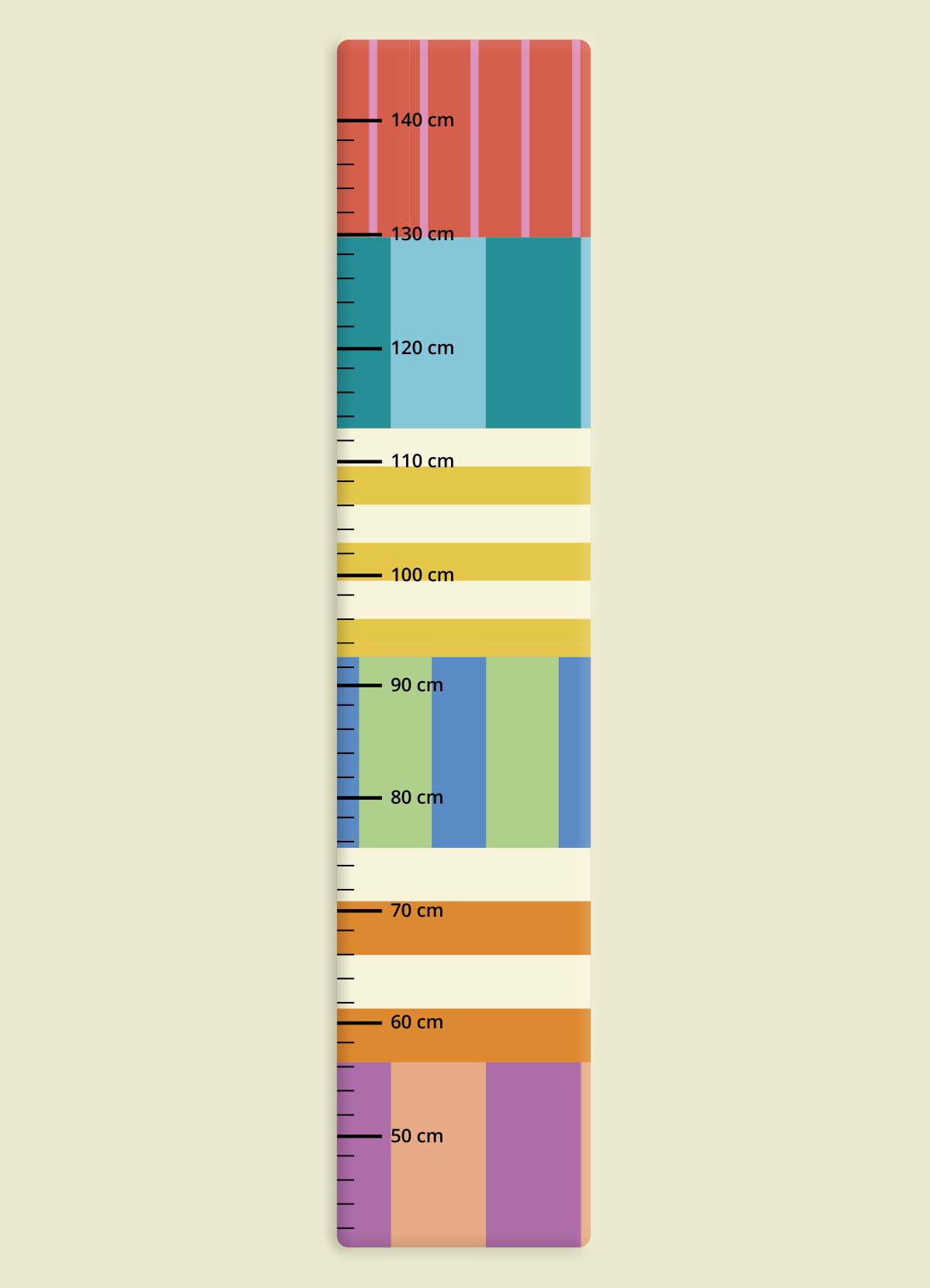 A Régua de Crescimento Listrado Multicolorido é a melhor opção para acompanhar o crescimento e o desenvolvimento da criança de forma divertida. Com cores e detalhes encantadores, a régua de altura infantil permite medir a criança até os 140cm, mas mesmo ultrapassando essa altura, a régua para medir altura continua sendo um lindo adorno de parede. A régua de altura já vem com fita dupla face para ser fixada na parede.
