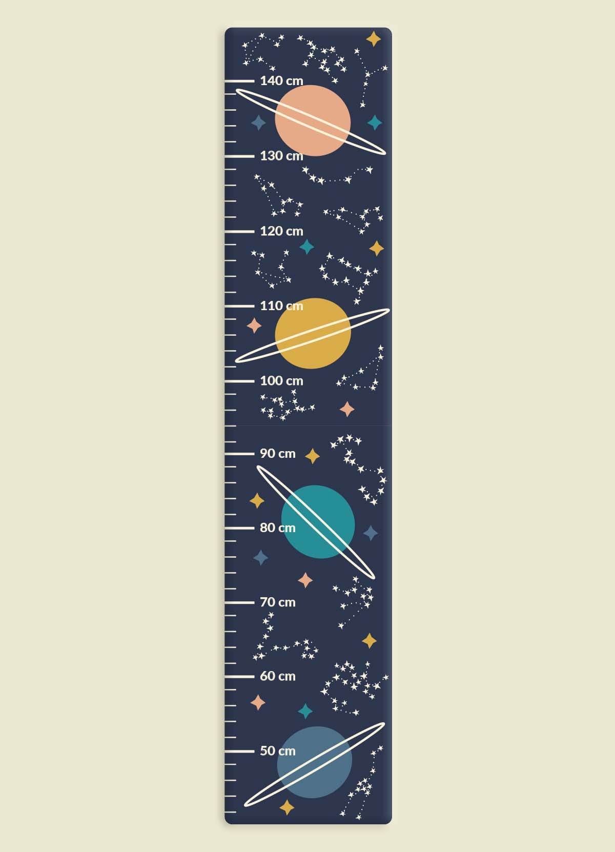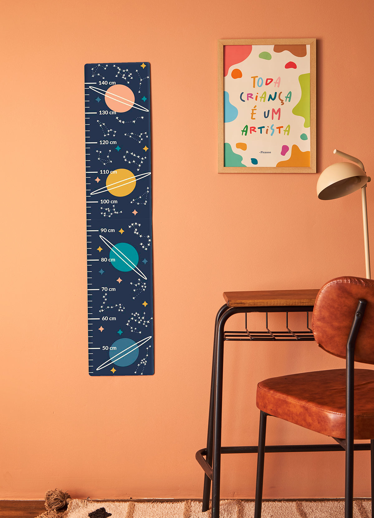 A Régua de Crescimento Universo da MOOUI é a maneira perfeita de acompanhar o desenvolvimento da criança de forma lúdica e decorativa. Com escala até 140cm e estampas exclusivas, torna o momento de medir a altura uma experiência divertida e memorável.