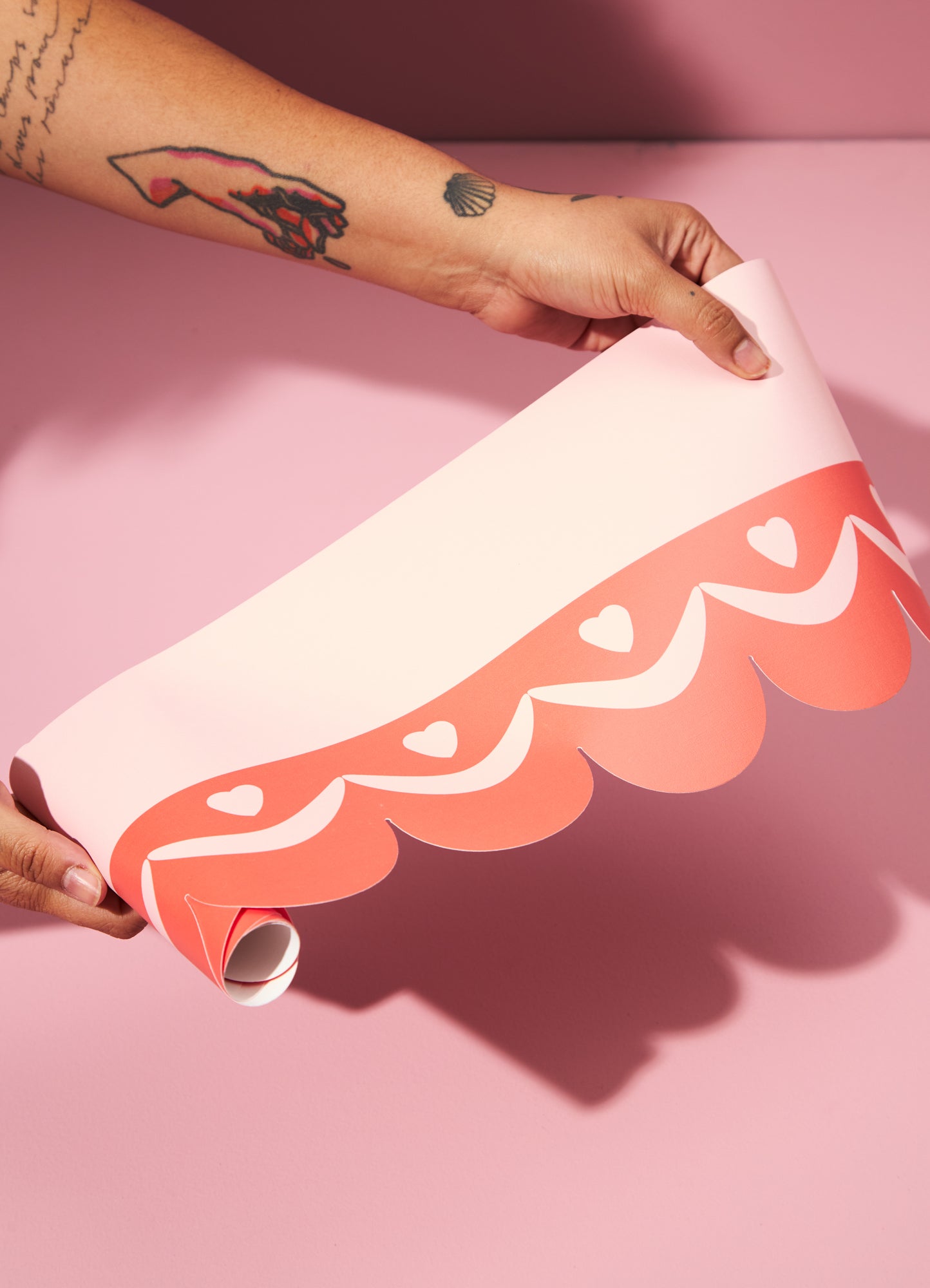 O roda-teto Babadinho de Coração MOOUI é uma faixa decorativa feita com papel de parede non woven, com leve textura e tonalidade off-white, perfeita para dar um acabamento especial à parte superior das paredes, contornar portas ou destacar cantinhos com criatividade. Feito a partir de celulose e fibras sintéticas, o material é resistente, não sofre retração com o tempo e pode ser limpo com pano branco, limpo e levemente umedecido.
