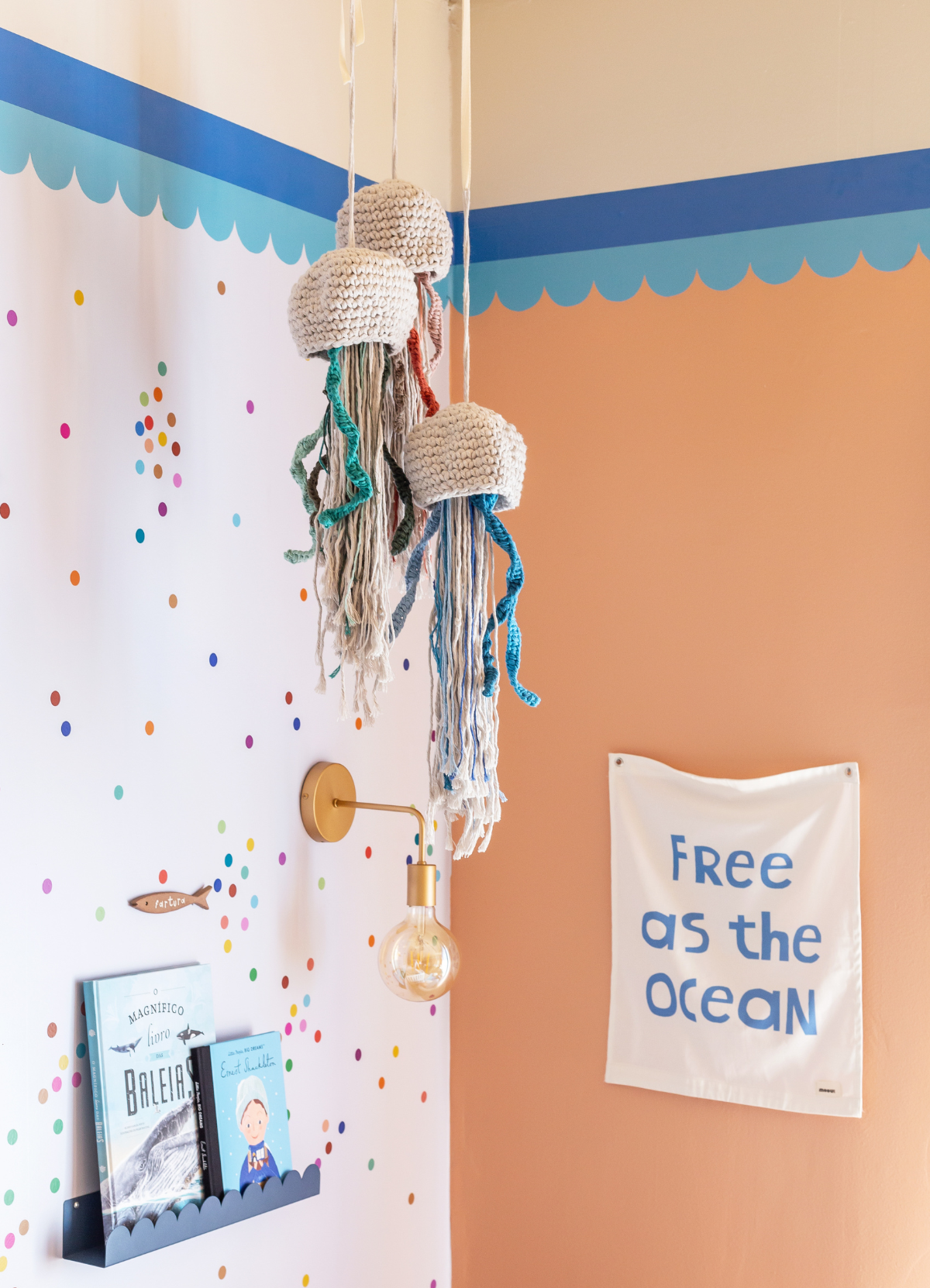 O roda-teto Onda do Mar MOOUI é uma faixa decorativa feita com papel de parede non woven, com leve textura e tonalidade off-white, perfeita para dar um acabamento especial à parte superior das paredes, contornar portas ou destacar cantinhos com criatividade. Feito a partir de celulose e fibras sintéticas, o material é resistente, não sofre retração com o tempo e pode ser limpo com pano branco, limpo e levemente umedecido.