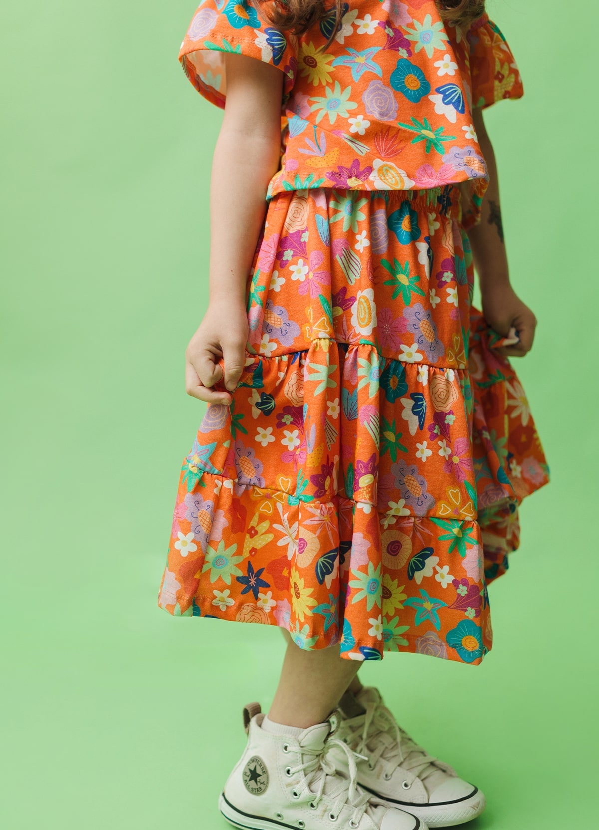 A Saia Midi Flores do Mar é perfeita para compor looks leves e divertidos. Com comprimento midi e um charmoso babado, essa saia oferece fluidez e muito movimento, tornando-a ideal para as crianças brincarem com conforto e estilo. Sua estampa floral vibrante adiciona um toque alegre e delicado, ideal para diversas ocasiões, desde passeios até momentos mais especiais. Feita com tecido leve, ela garante frescor e liberdade, sendo uma peça essencial no guarda-roupa infantil.