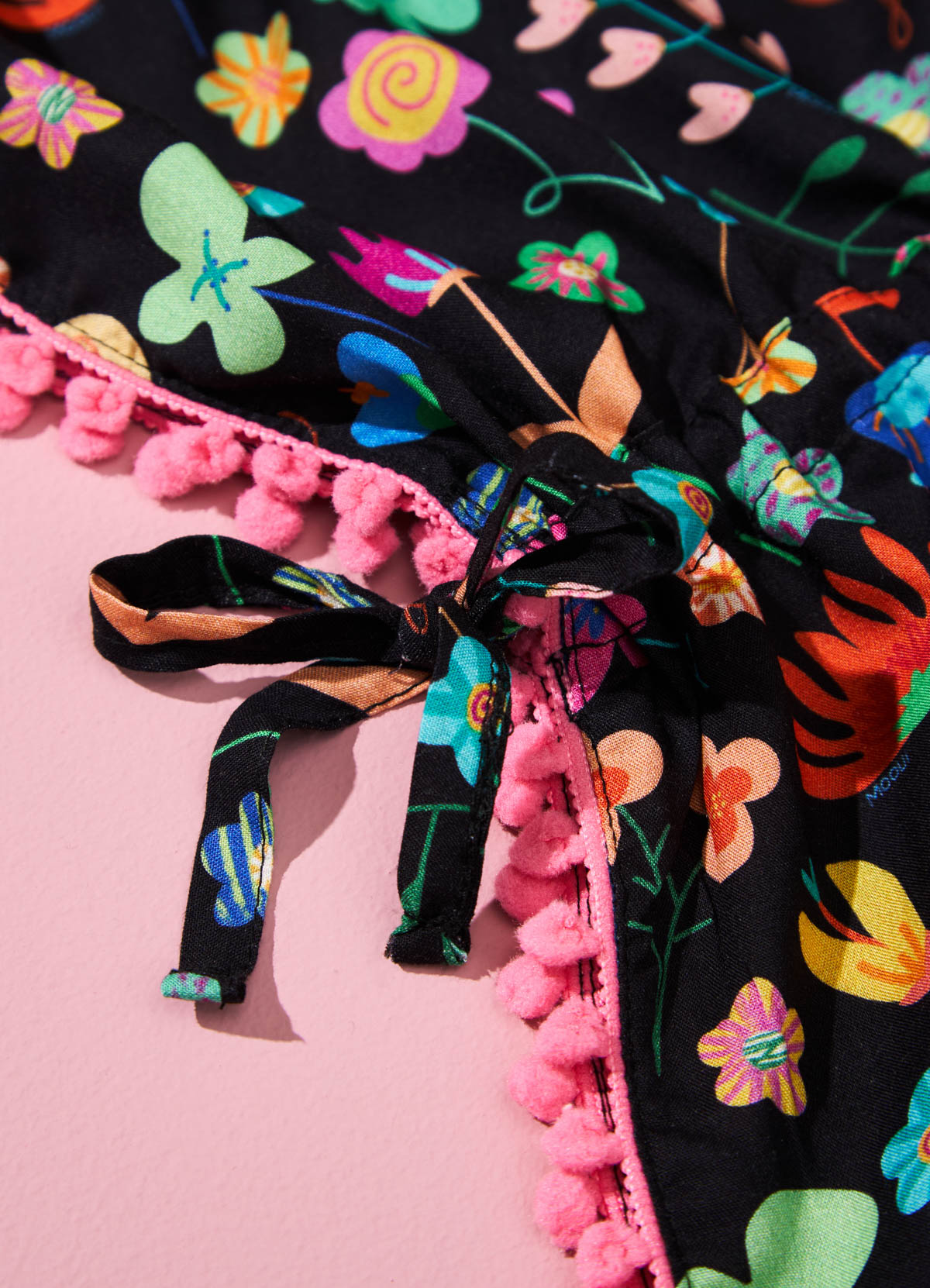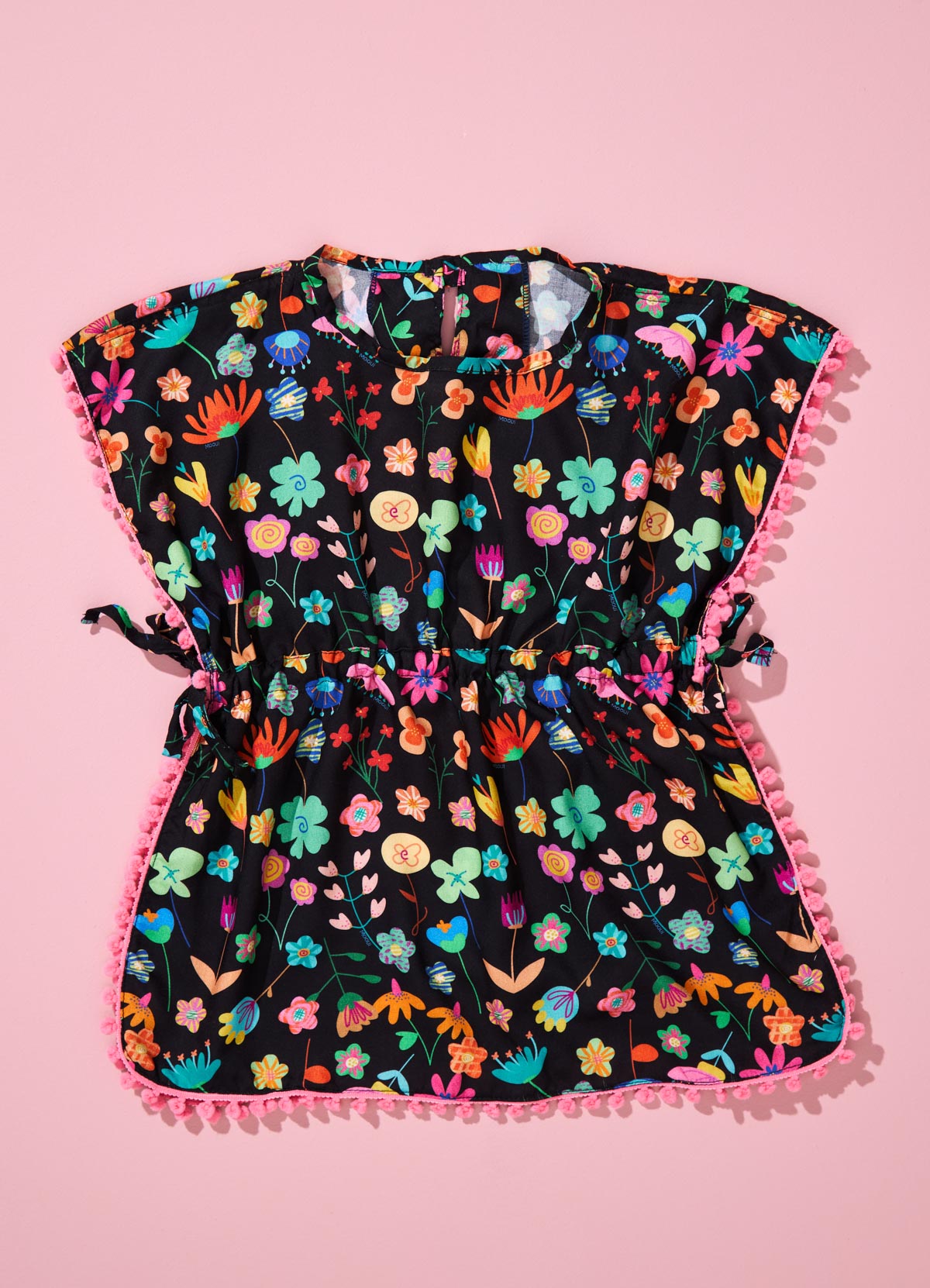 A Saída de Praia Infantil Anoitecer no Jardim é perfeita para acompanhar as pequenas em dias de sol com muito conforto e estilo. Confeccionada em tecido de viscose, é leve, fresquinha e possui toque macio, ideal para usar após o banho de mar ou piscina. Seu design encantador traz uma estampa floral colorida, enquanto os pompons delicados nas laterais adicionam um toque divertido à peça. A cintura ajustável por cordão permite melhor caimento e conforto para diferentes corpos. Charmosa, prática e versátil, é aquela peça indispensável para os dias de verão!