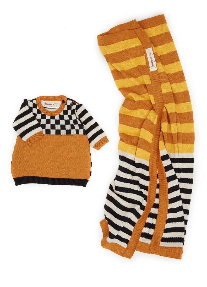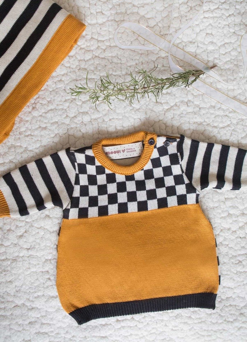 Saída de maternidade Quadriculado Preto MOOUI para bebês, composta por manta e vestido manga longa, abertura de gola com fechamento em botões, confeccionados em malha fina de tricot. Toque leve e macio que proporciona conforto e proteção térmica para o bebê em todas as estações.