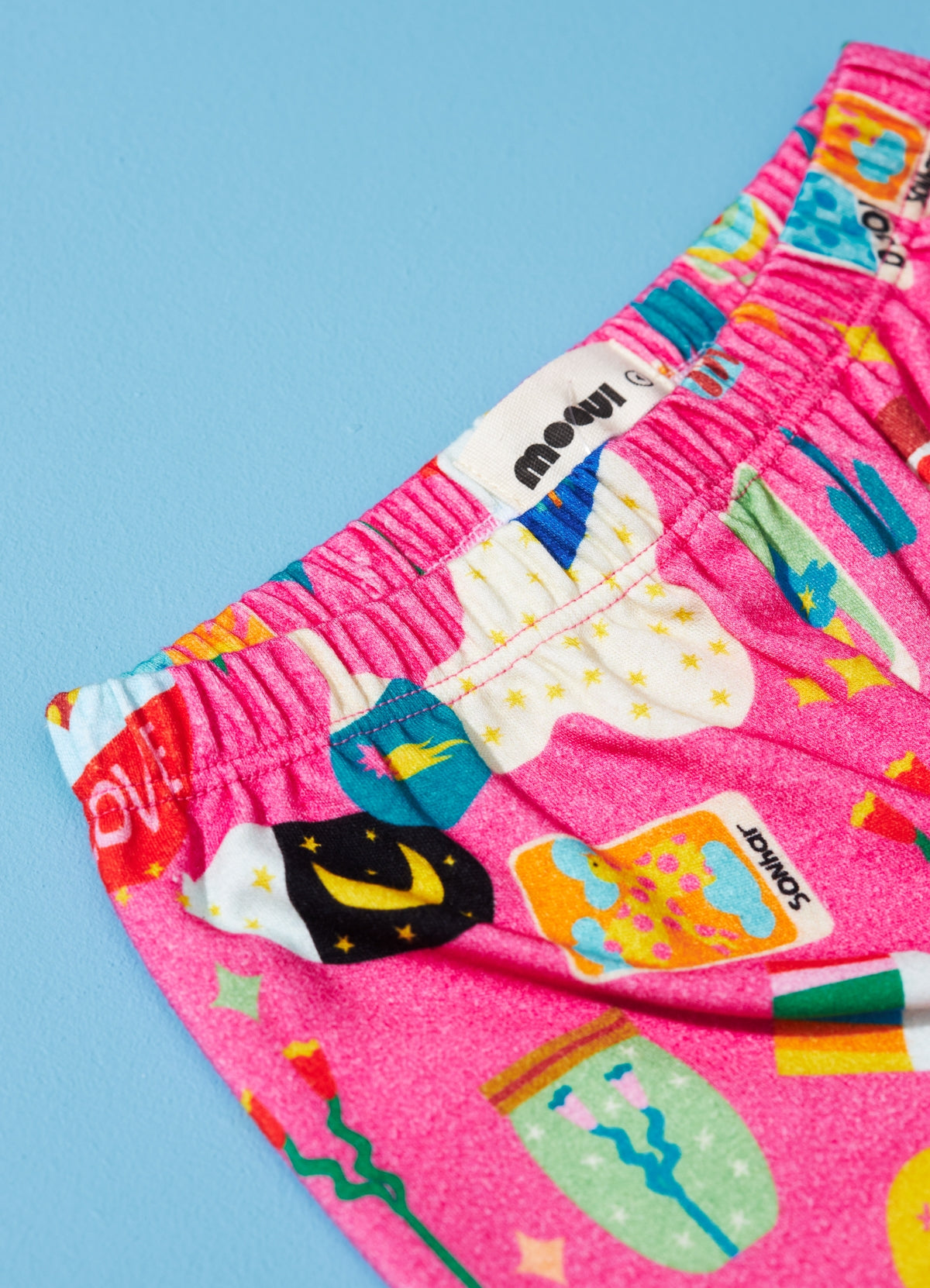 O Shorts de Pijama Infantil Magia é divertido, graças ao toque especial da estampa exclusiva MOOUI, e extremamente confortável pela qualidade do tecido. Confeccionado em malha suedine de algodão, esse shorts de pijama para crianças é pura maciez, para trazer muito conforto e liberdade na hora de dormir.