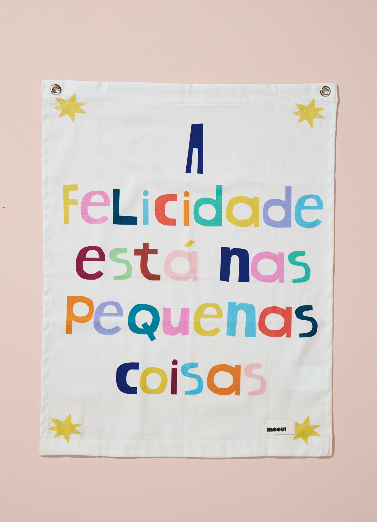 O Tapestry Pequeno A Felicidade da MOOUI é uma decoração de parede infantil autêntica e moderna que transforma ambientes com suas estampas exclusivas. Esta peça têxtil adiciona cor, textura e personalidade ao quarto das crianças de forma rápida e sem complicações.