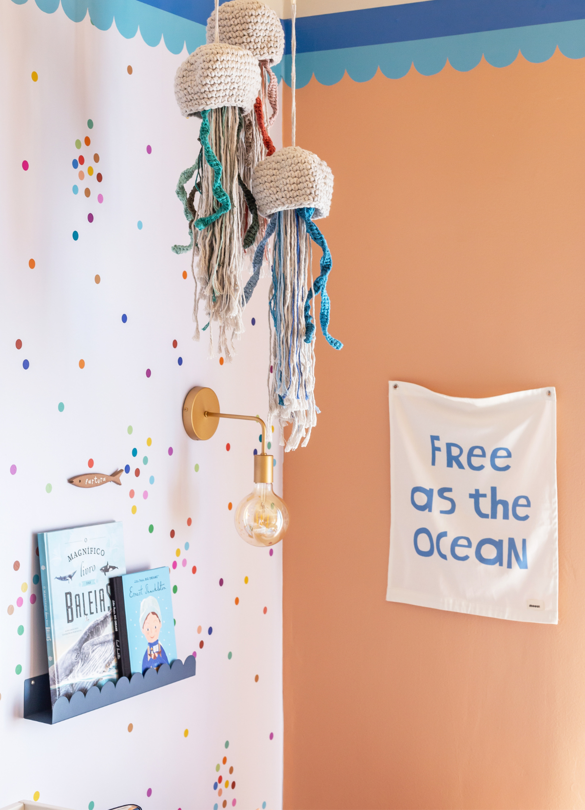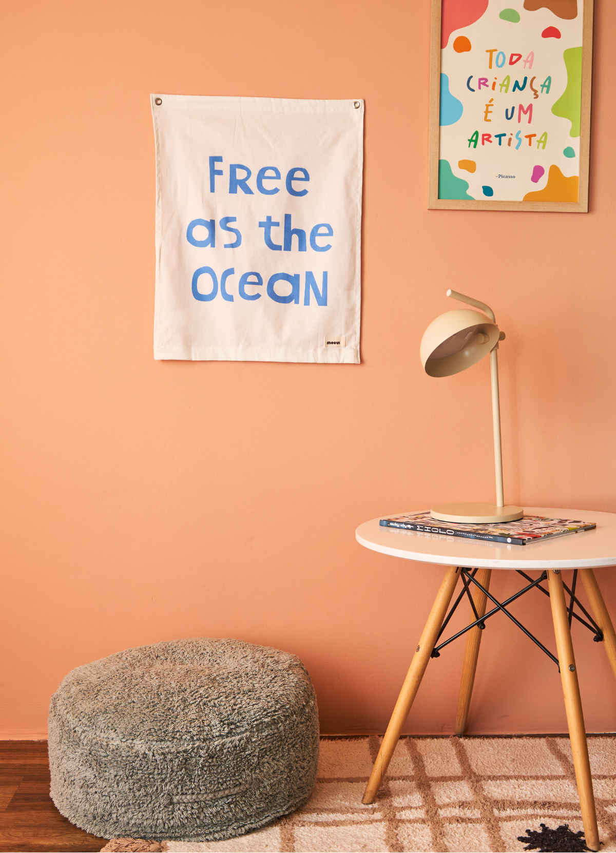 O Tapestry Pequeno Ocean da MOOUI é uma decoração de parede infantil autêntica e moderna que transforma ambientes com suas estampas exclusivas. Esta peça têxtil adiciona cor, textura e personalidade ao quarto das crianças de forma rápida e sem complicações.
