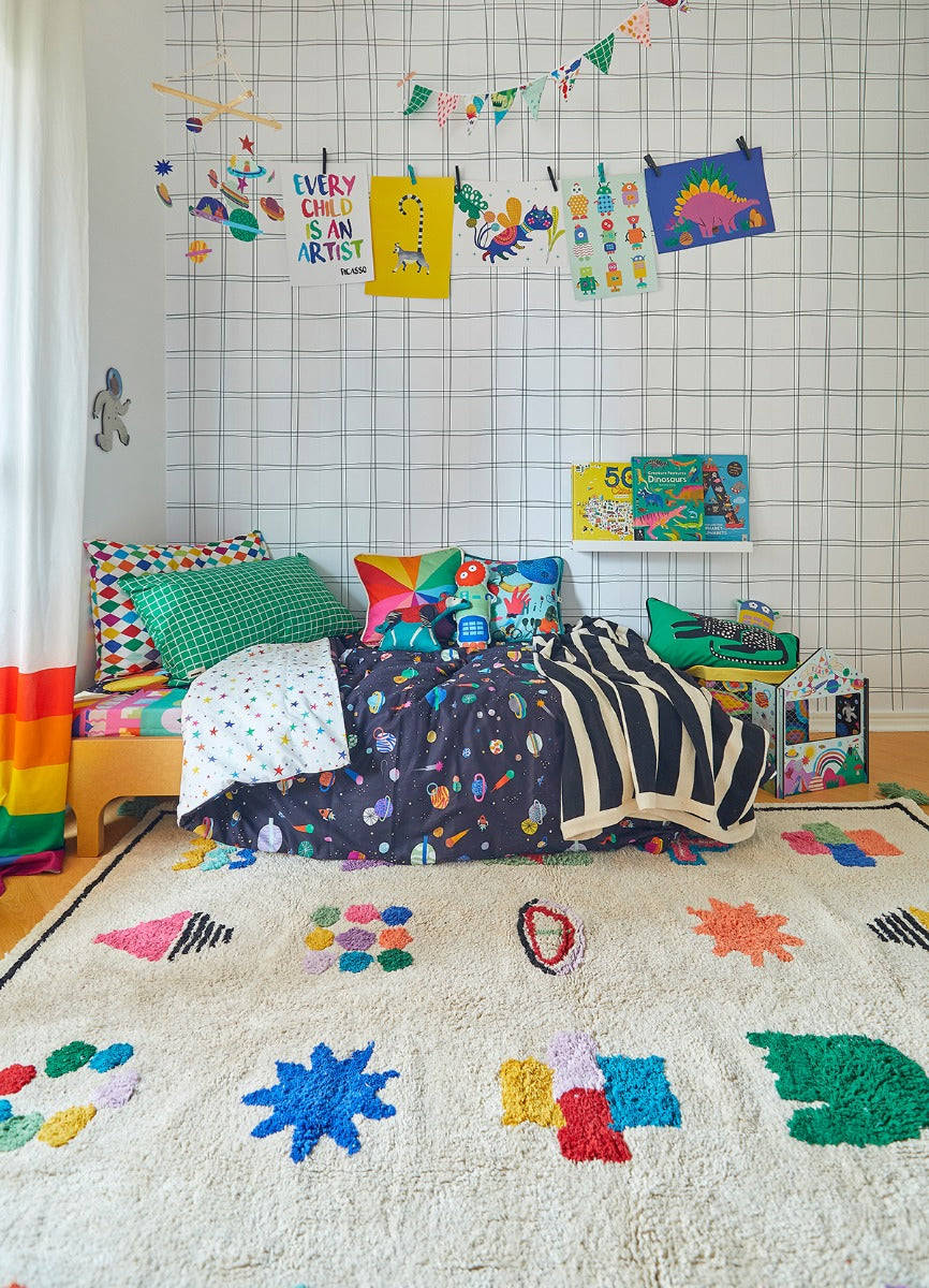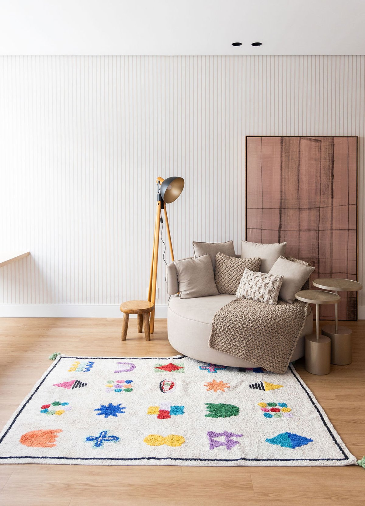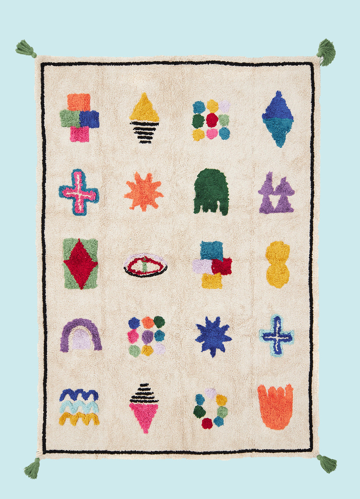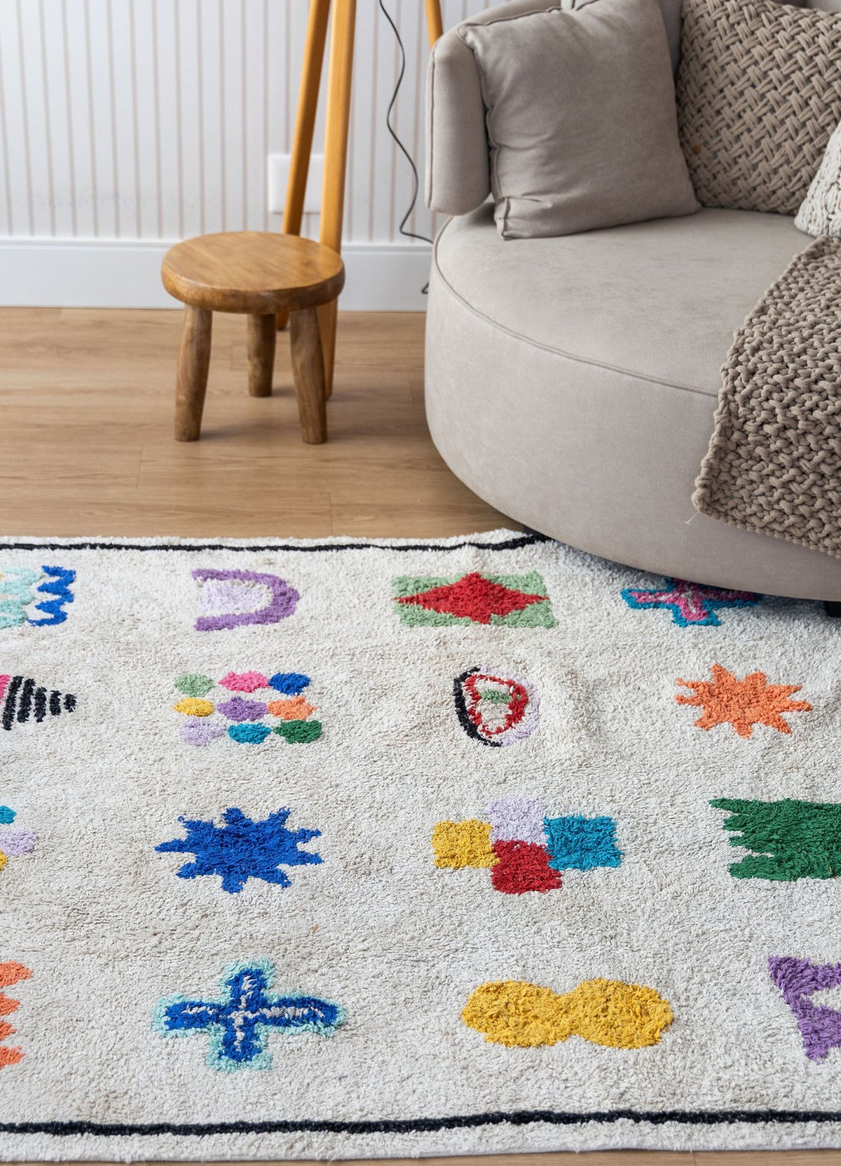O tapete Formas é produzido com design exclusivo da MOOUI e a qualidade mundialmente conhecida dos tapetes Lorena Canals, resultando neste tapete charmoso, aconchegante e muito prático. Graças ao seu formato retangular, Formas se adapta a qualquer cômodo, seja como tapete para quarto de bebê, para a brinquedoteca, sala ou para os demais ambientes.