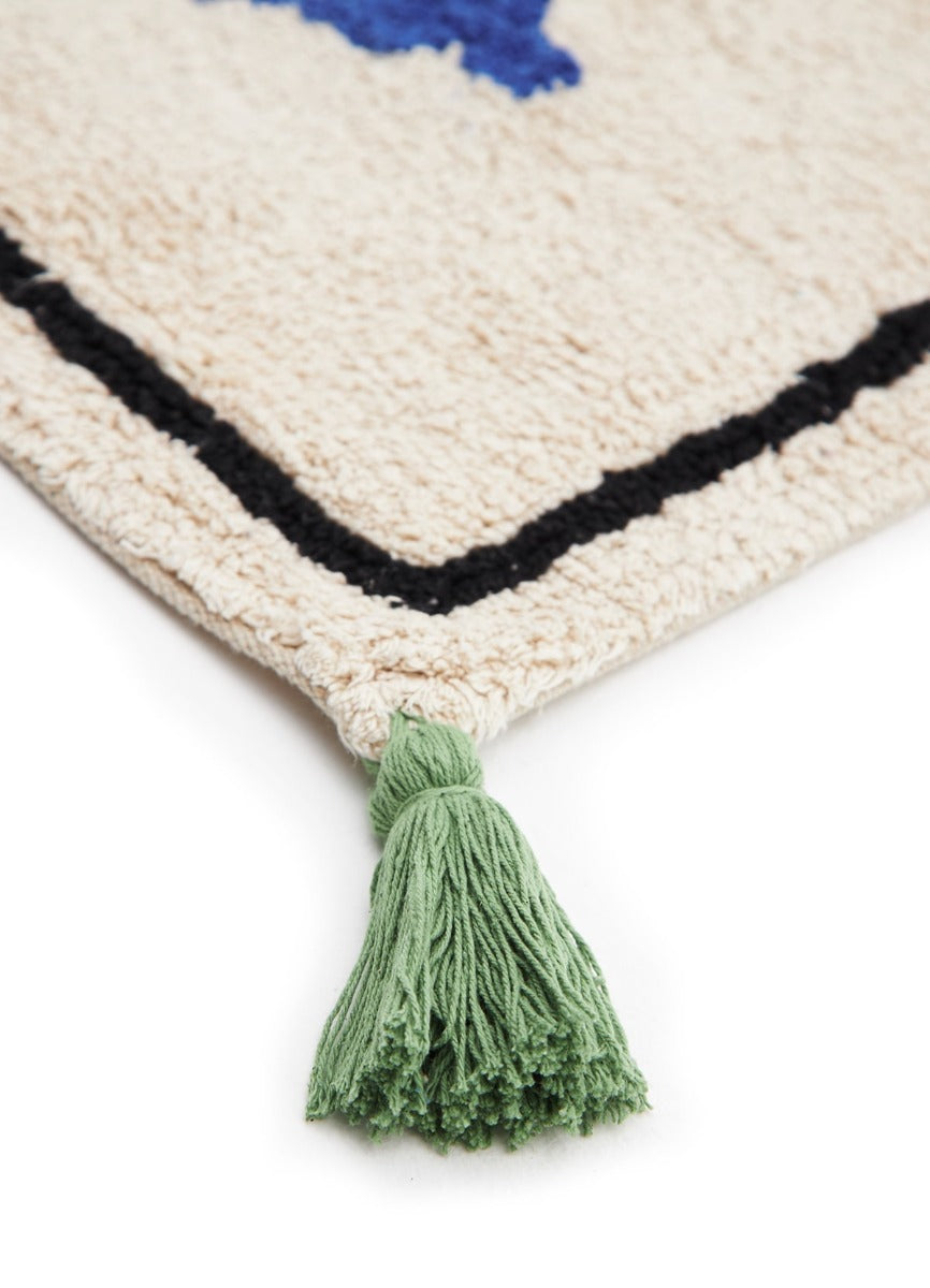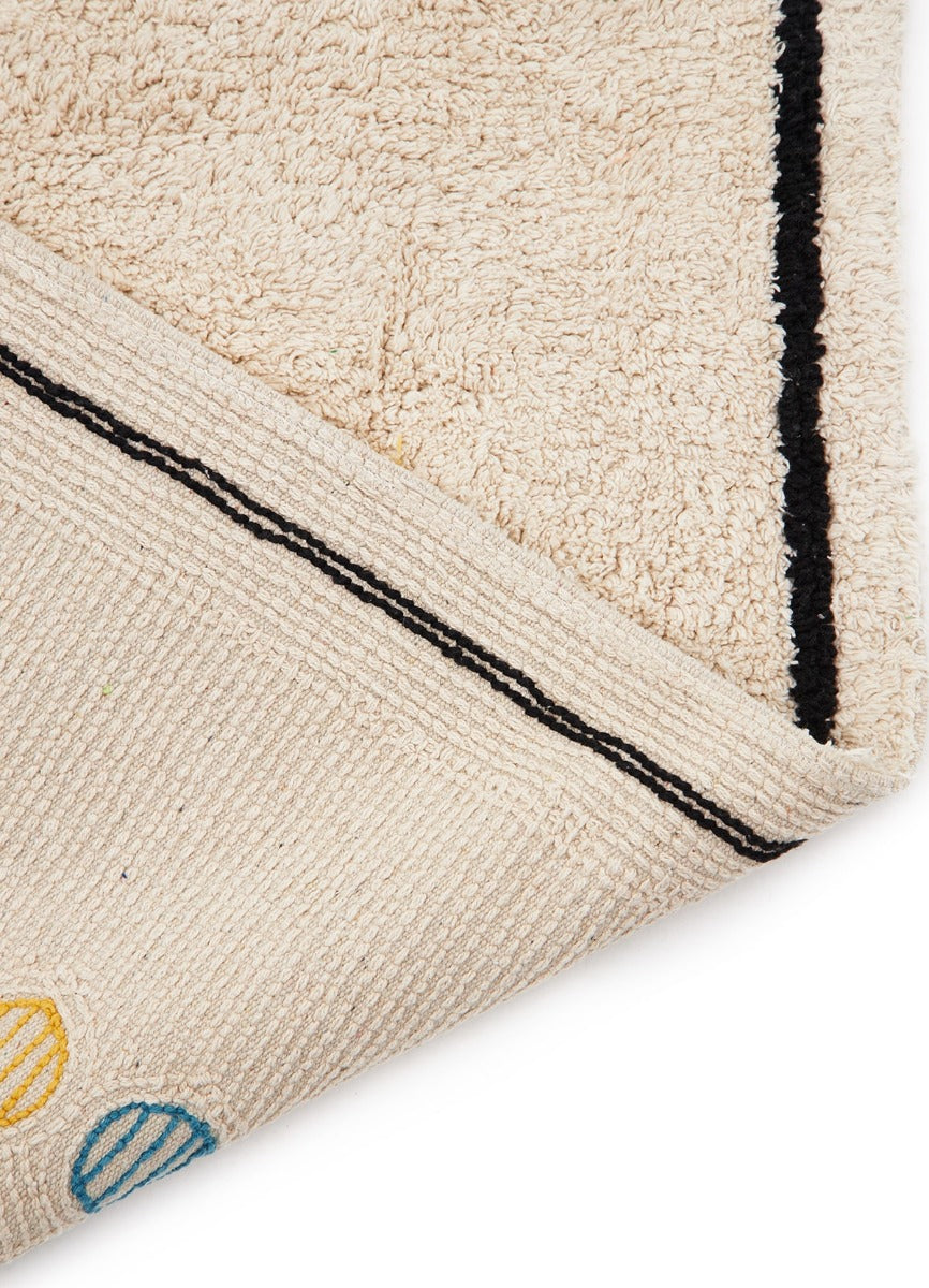 O tapete de algodão Lorena Canals e MOOUI, produzido com tintas atóxicas, é leve devido à sua composição e trama flexíveis, permitindo que ele seja lavado no conforto de sua casa, em máquinas de lavar roupas convencionais. Feito à mão, um a um por técnicas de tear tradicionais indianas, cada peça do tapete é única e artesanal, podendo haver pequenas irregularidades e variações.