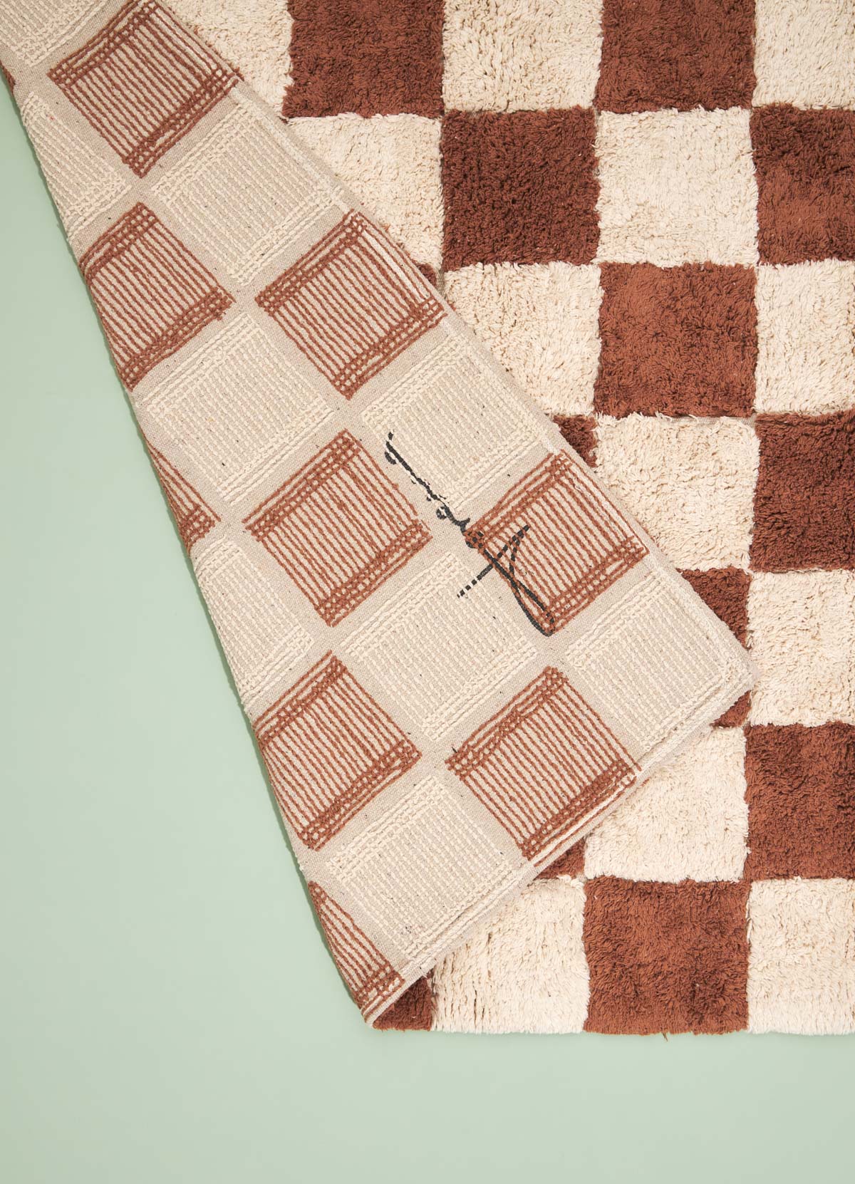 O tapete de algodão Lorena Canals e MOOUI, produzido com tintas atóxicas, é leve devido à sua composição e trama flexíveis, permitindo que ele seja lavado no conforto de sua casa, em máquinas de lavar roupas convencionais. Feito à mão, um a um por técnicas de tear tradicionais indianas, cada peça do tapete é única e artesanal, podendo haver pequenas irregularidades e variações.