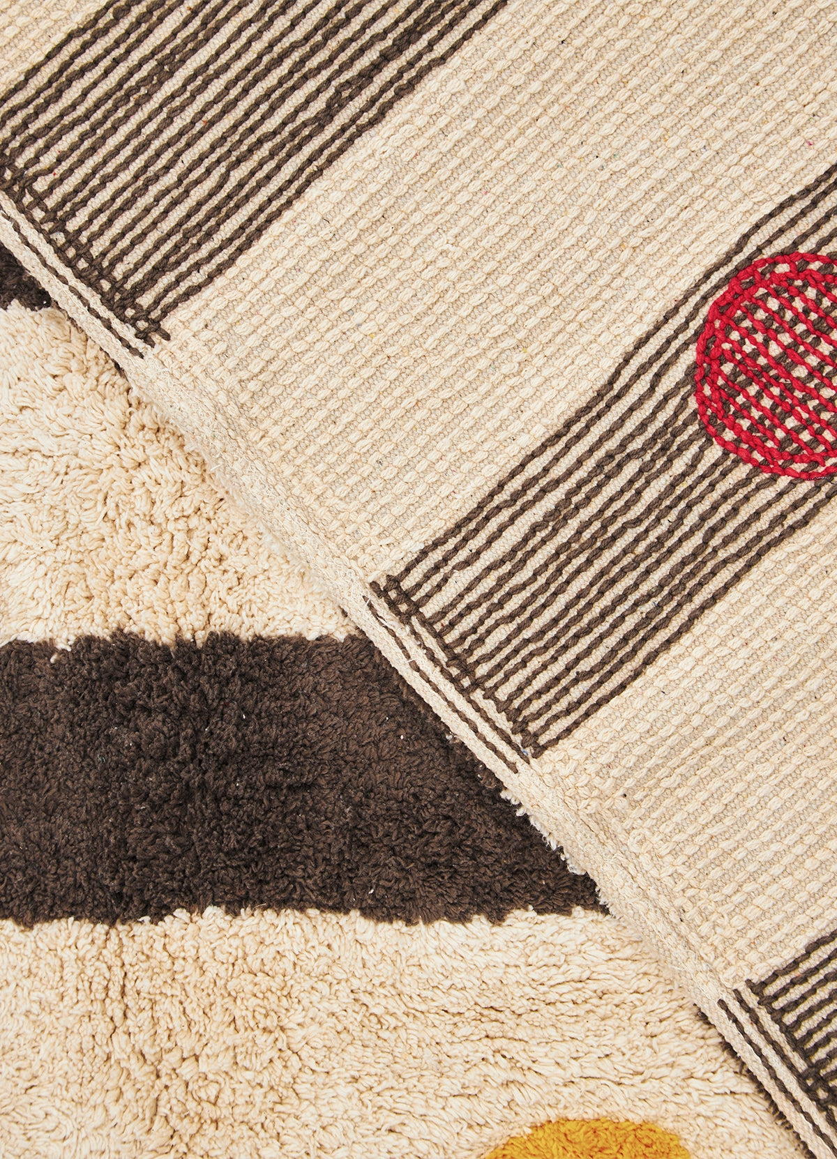 O tapete de algodão Lorena Canals e MOOUI, produzido com tintas atóxicas, é leve devido à sua composição e trama flexíveis, permitindo que ele seja lavado no conforto de sua casa, em máquinas de lavar roupas convencionais. Feito à mão, um a um por técnicas de tear tradicionais indianas, cada peça do tapete é única e artesanal, podendo haver pequenas irregularidades e variações.