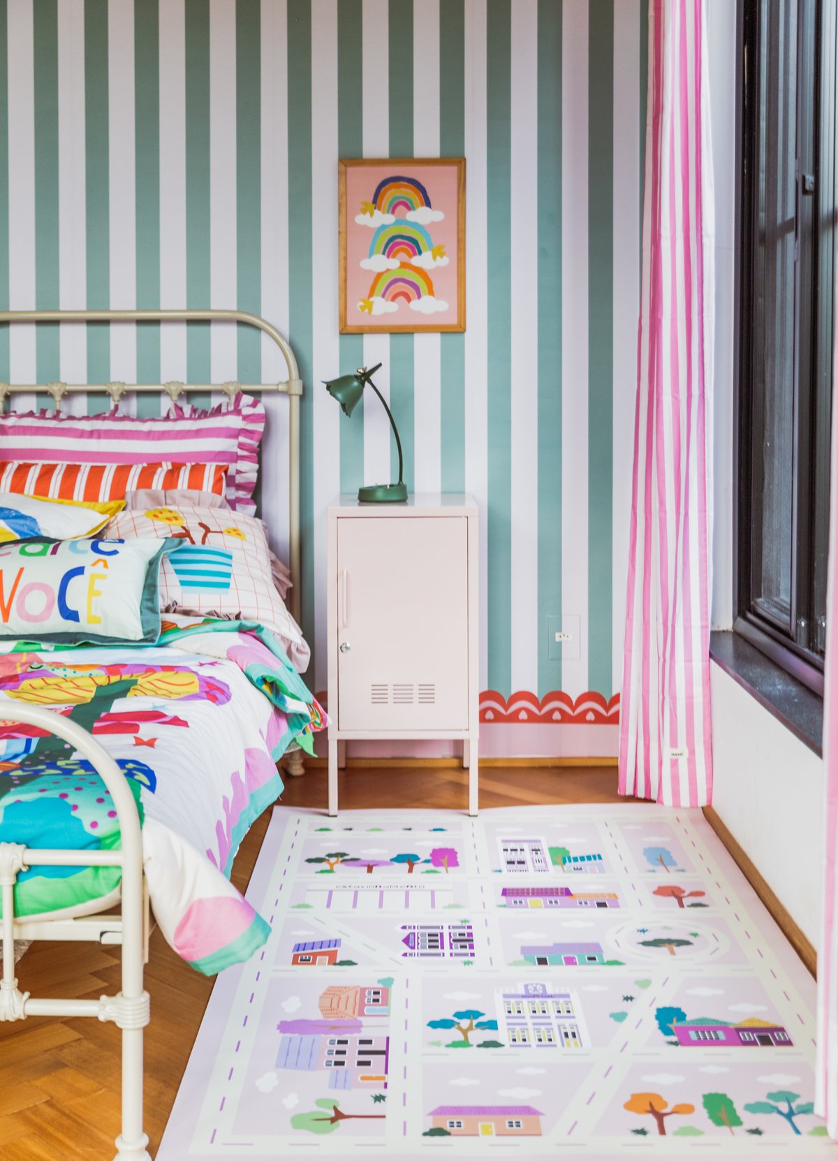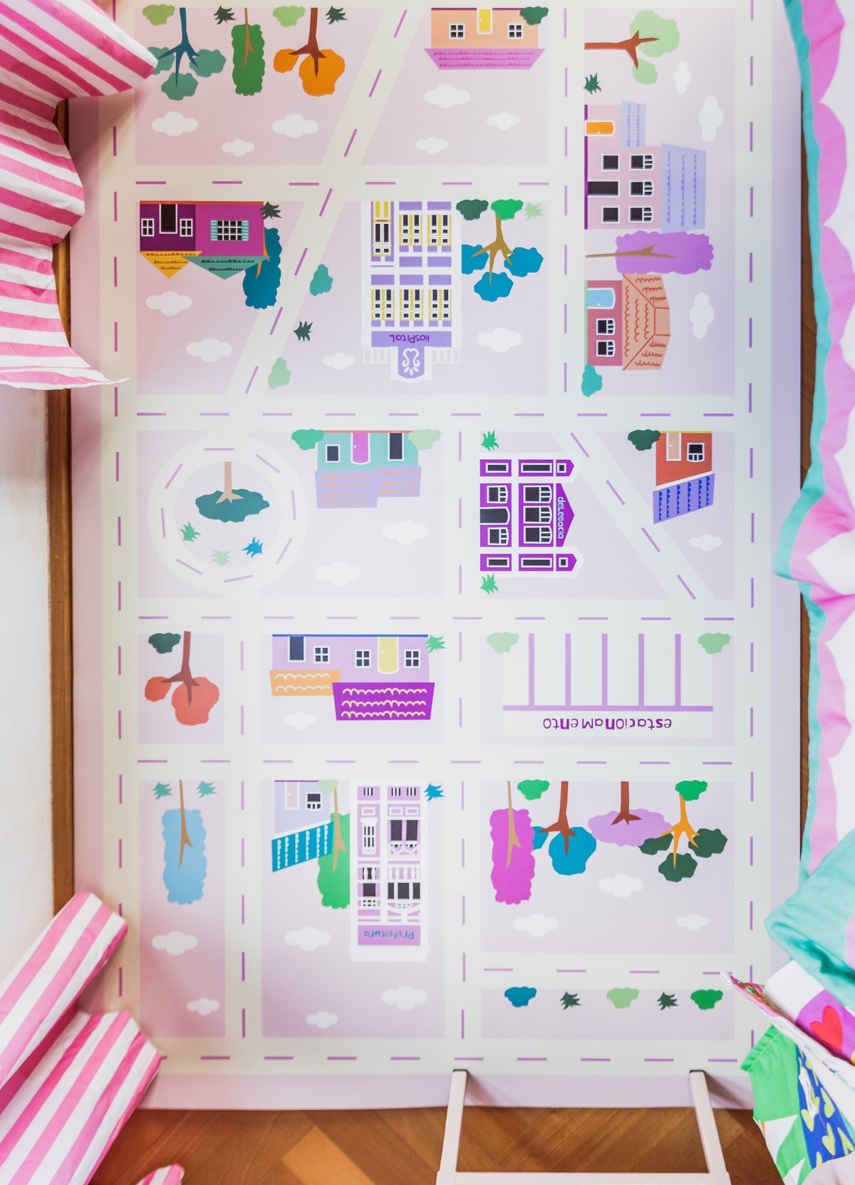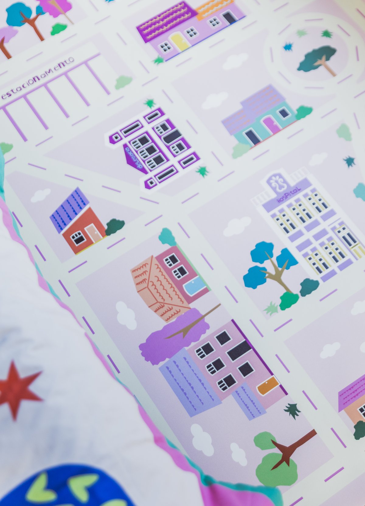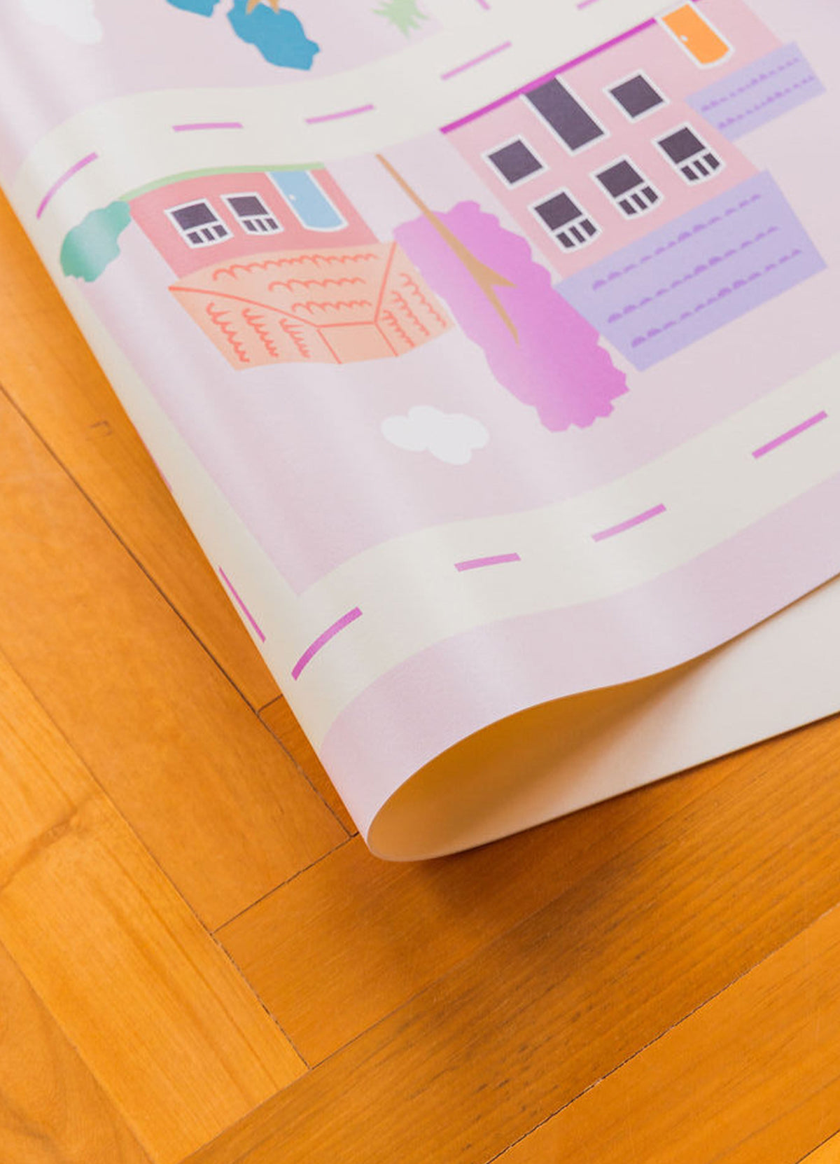 O Tapete Playmat Cidade Rosa da MOOUI proporciona um espaço seguro e divertido para o desenvolvimento infantil. Confeccionado em PVC de 2mm com estampas exclusivas, protege as crianças de impactos e mantém o ambiente limpo durante as brincadeiras.