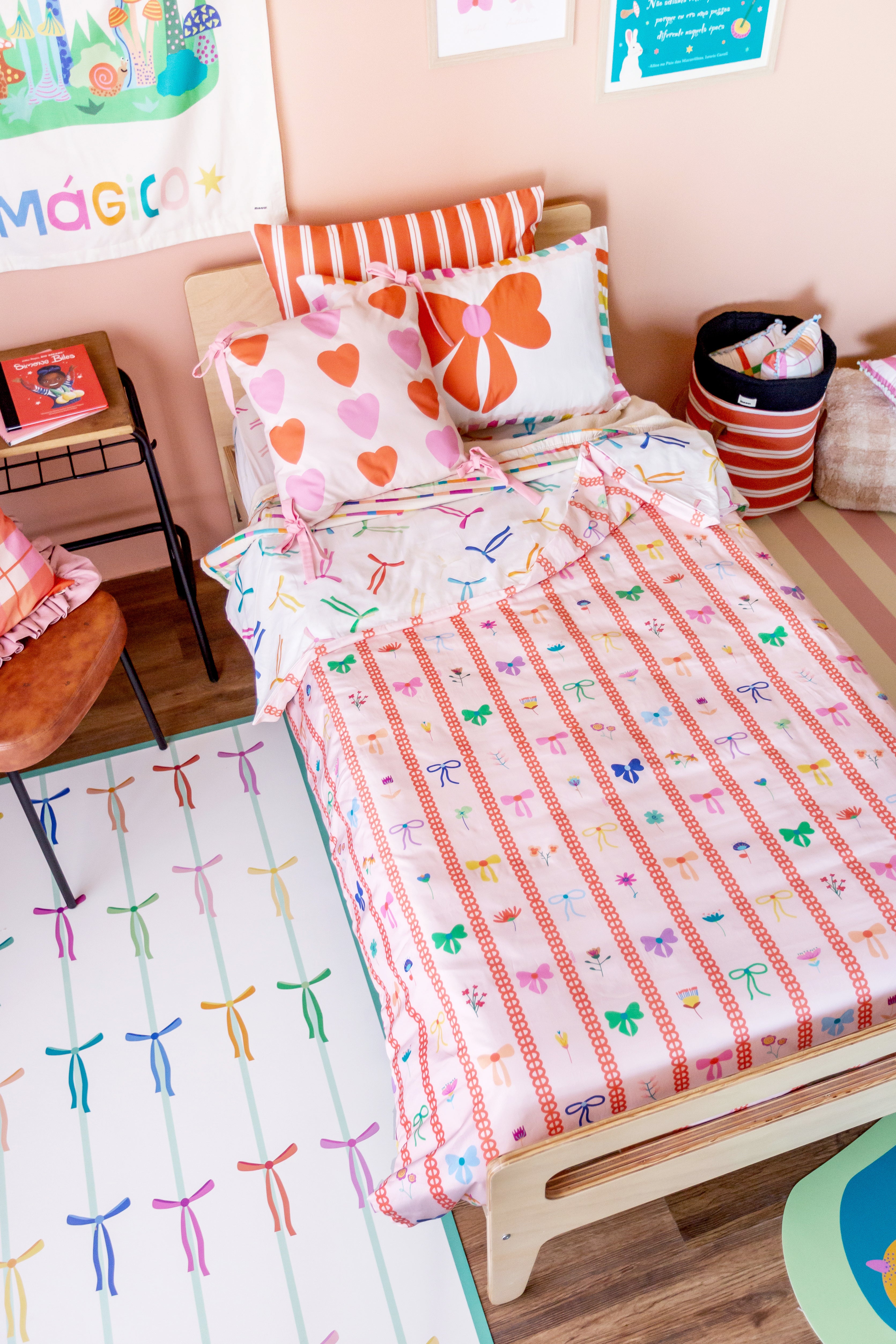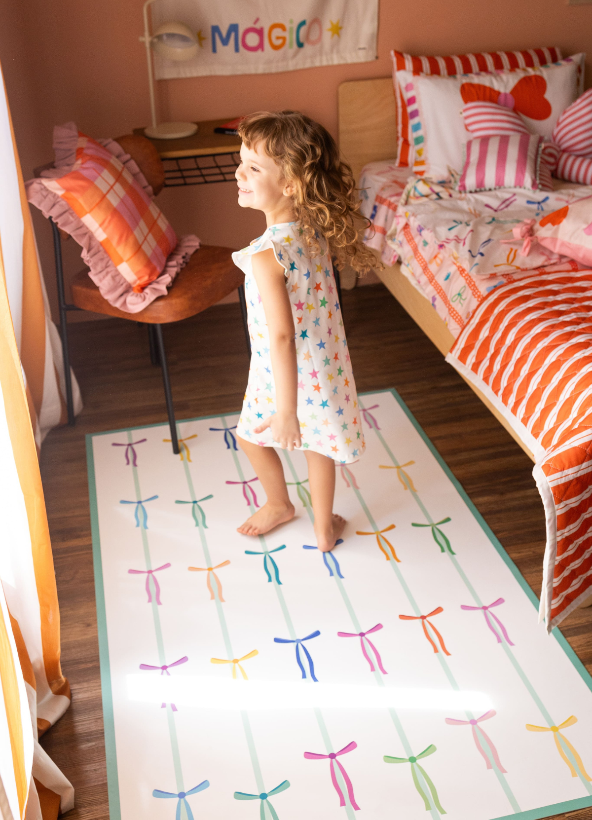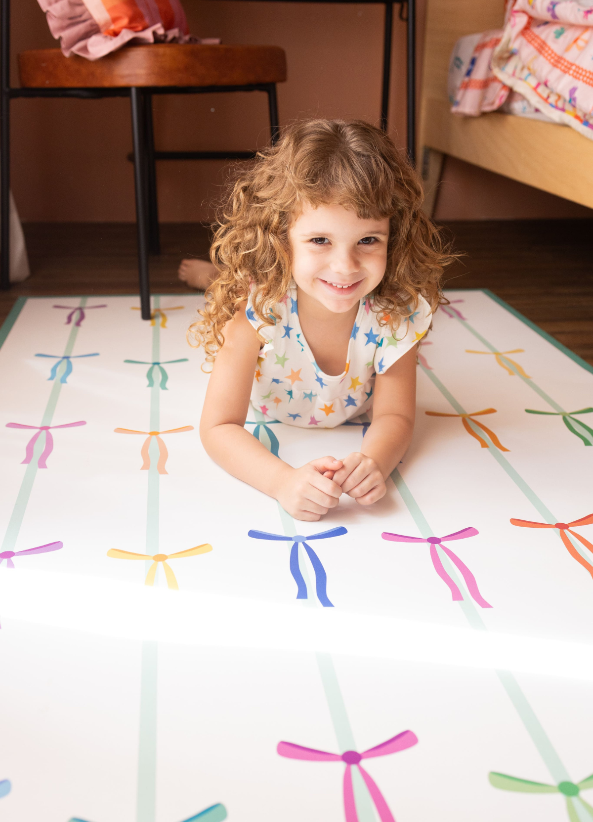 O Tapete Playmat Laços Coloridos da MOOUI proporciona um espaço seguro e divertido para o desenvolvimento infantil. Confeccionado em PVC de 2mm com estampas exclusivas, protege as crianças de impactos e mantém o ambiente limpo durante as brincadeiras.