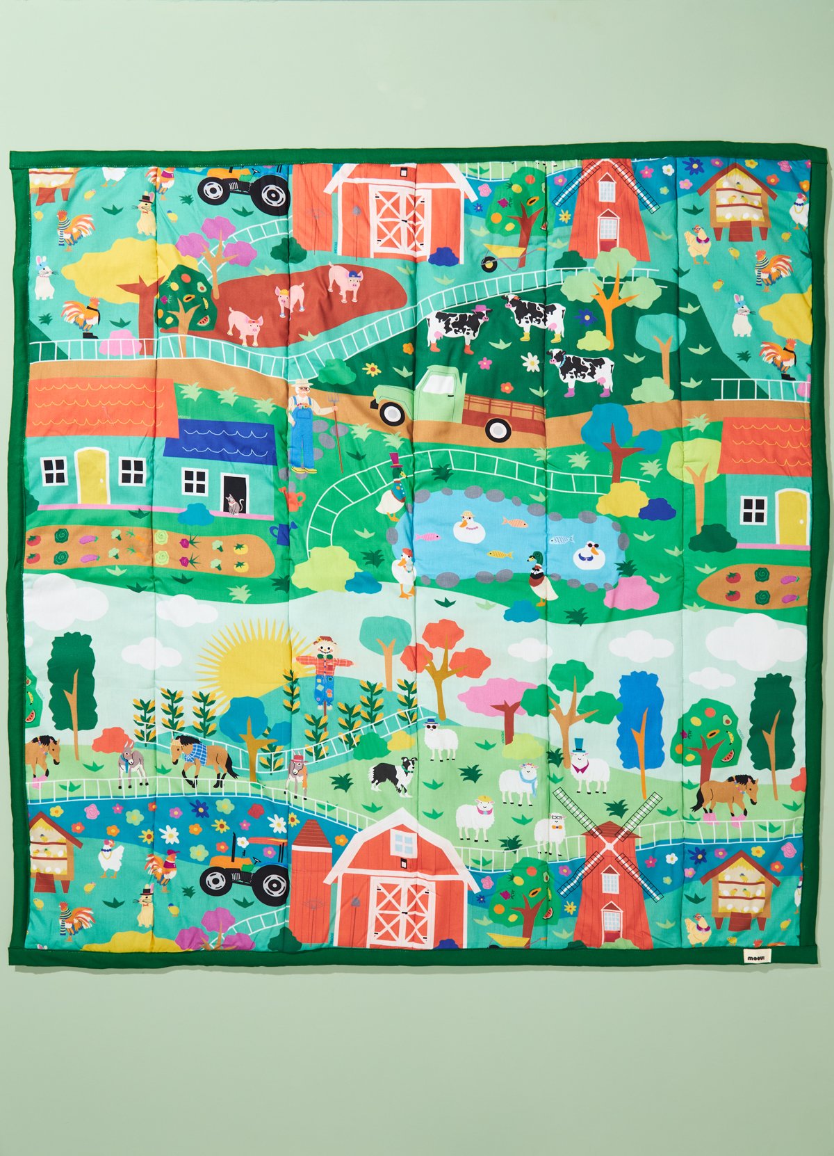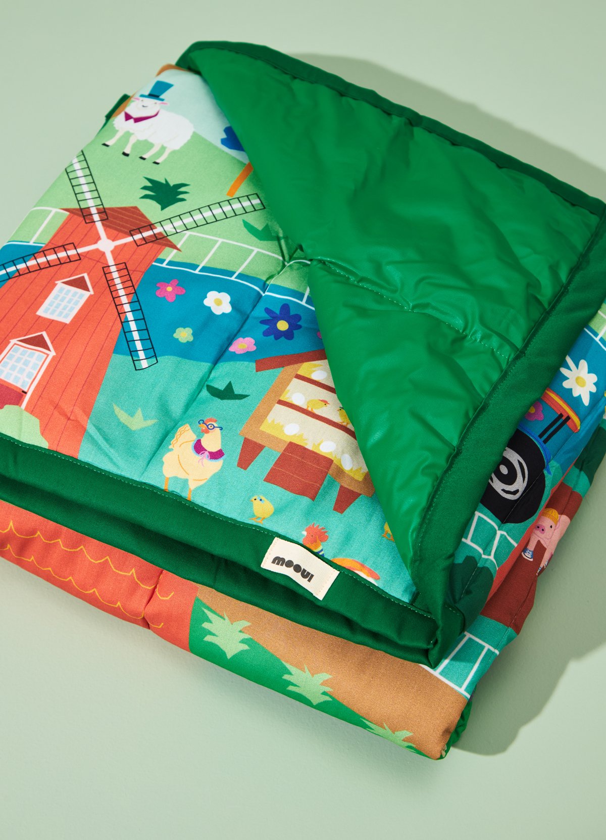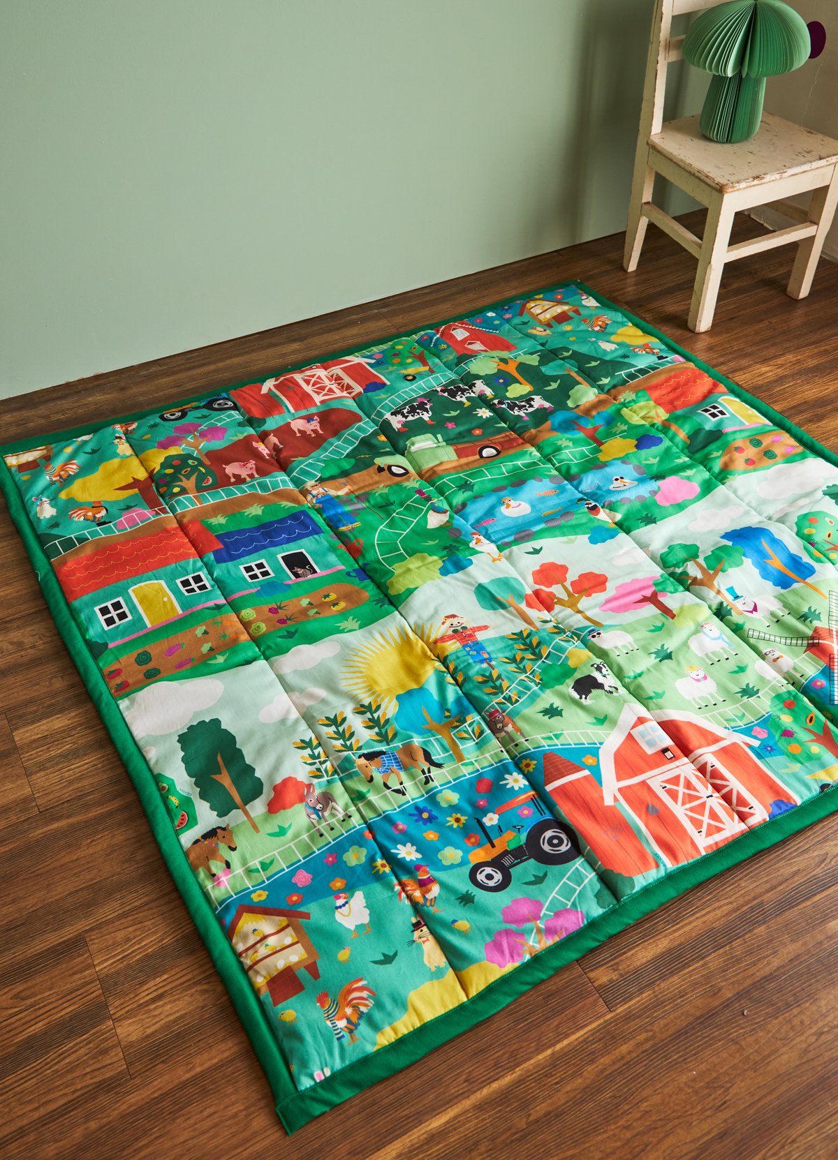 O Tapetinho de Atividades Fazendinha da MOOUI cria um espaço seguro e confortável para bebês e crianças brincarem no chão. Acolchoado e confeccionado em algodão acetinado na parte superior e napa na parte inferior, proporciona maciez e isolamento térmico.