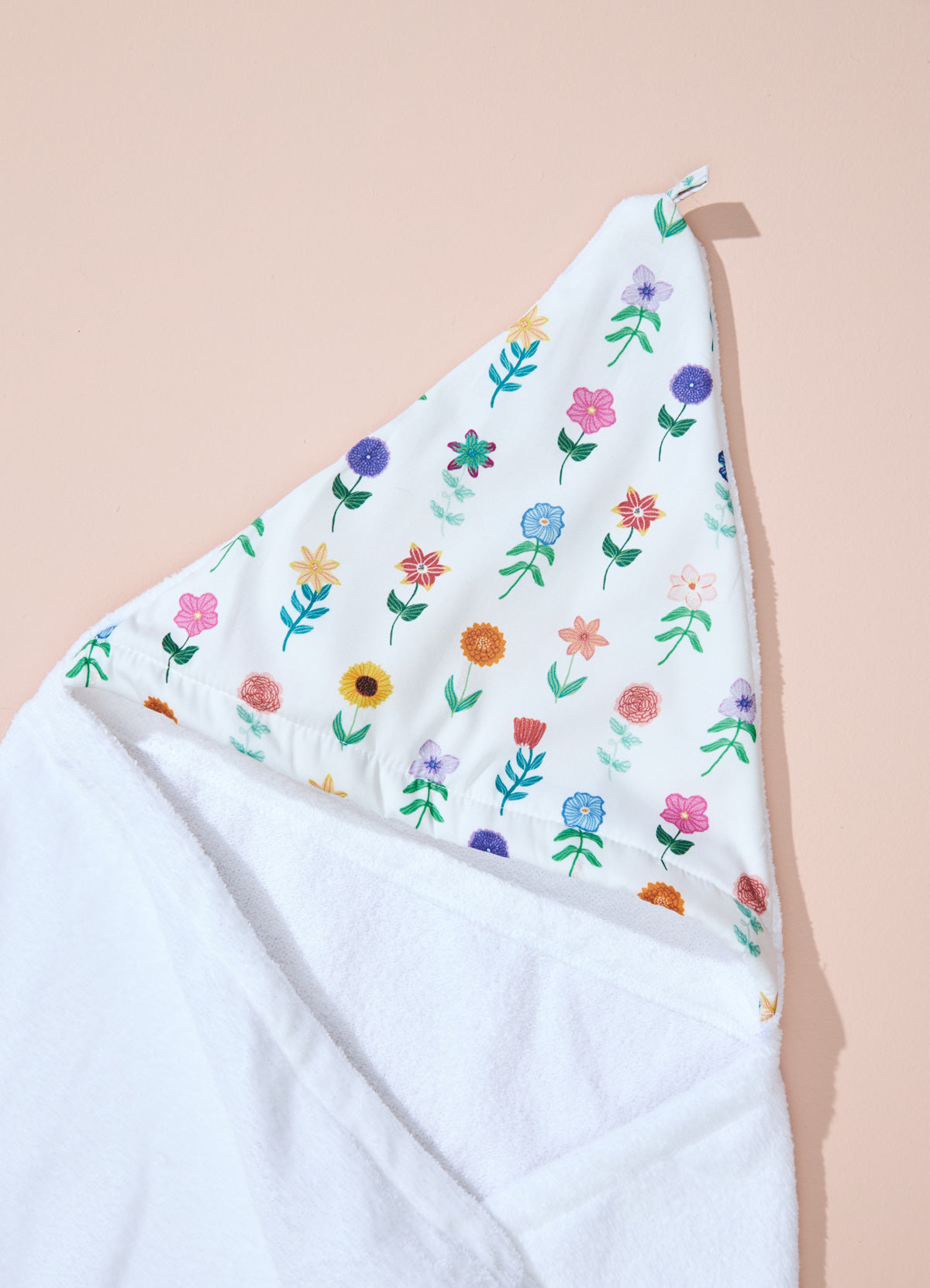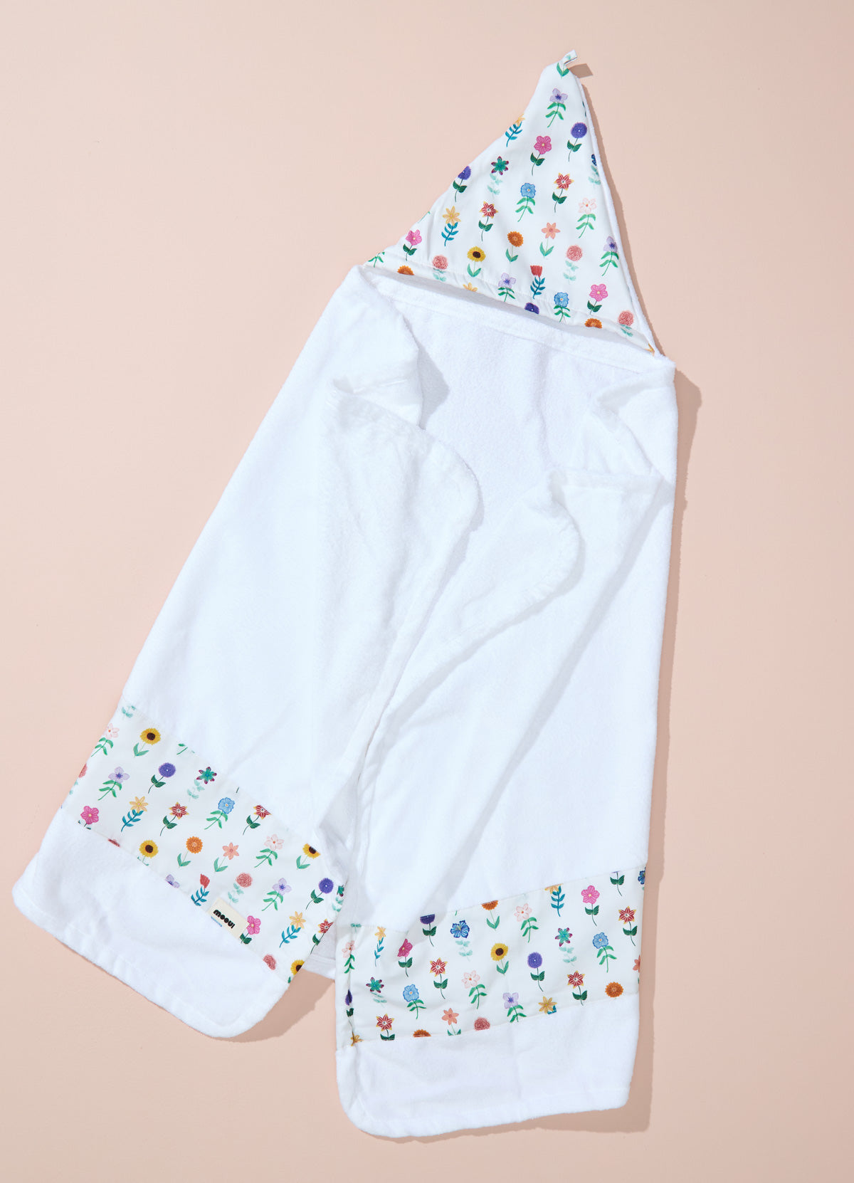 A Toalha de Banho Infantil Caminho Floral da MOOUI transforma o momento do banho em uma experiência lúdica e aconchegante. Confeccionada em tecido felpudo e aveludado de alta absorção, possui capuz para proteger a cabeça da friagem.