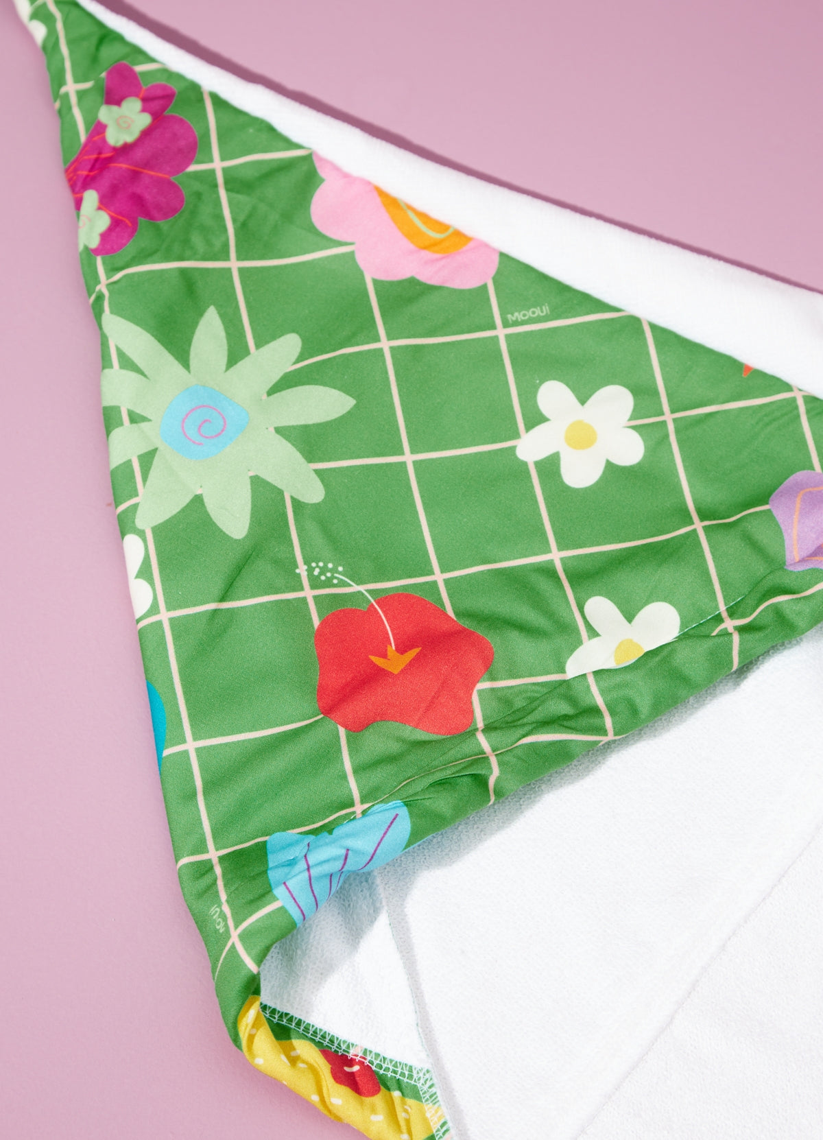 Já a estampa divertida da MOOUI vem estampada de forma super charmosa no capuz e no barrado da toalha infantil. Além do capuz que protege a cabeça da friagem.