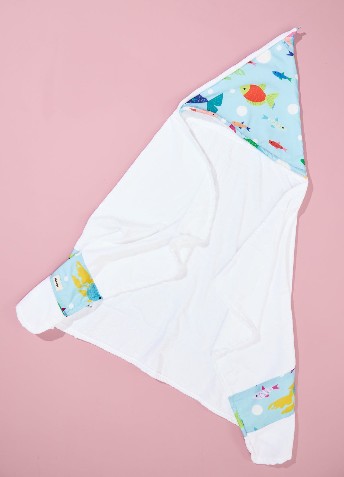 A Toalha de Banho Infantil Peixinhos Do Oceano da MOOUI transforma o momento do banho em uma experiência lúdica e aconchegante. Confeccionada em tecido felpudo e aveludado de alta absorção, possui capuz para proteger a cabeça da friagem.