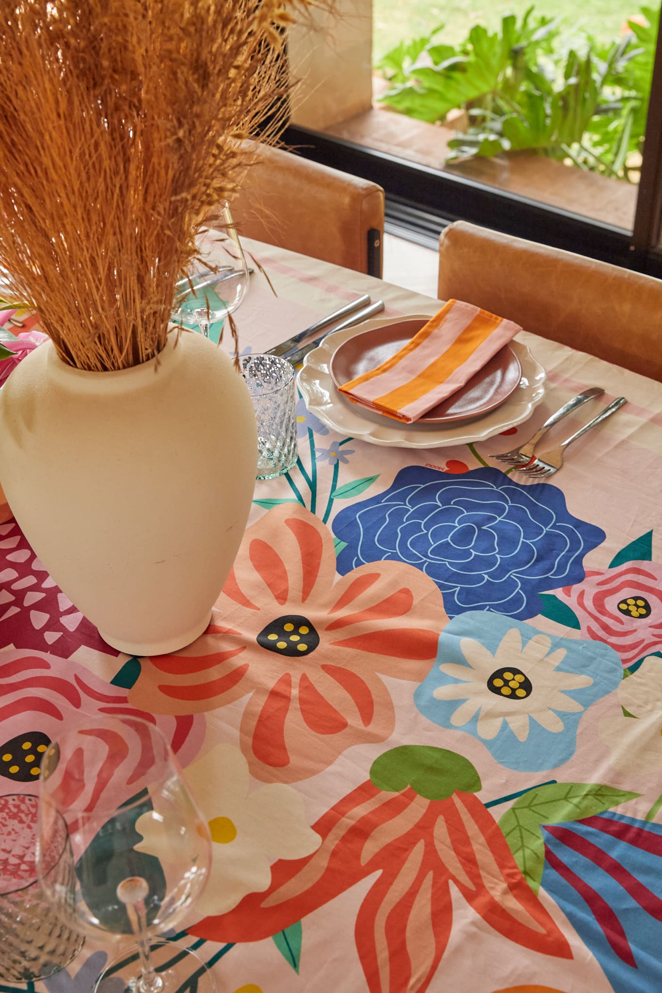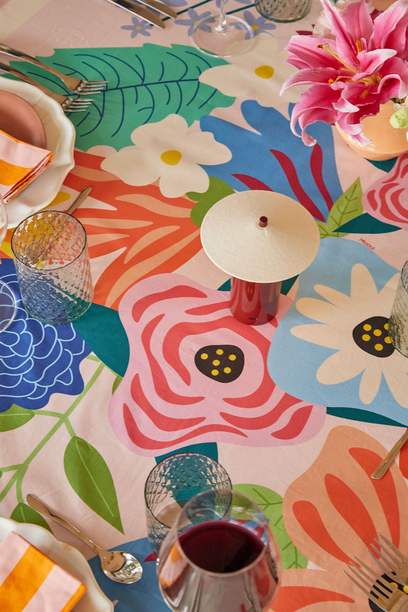 Experimente combinar a toalha de mesa com os demais itens da hora de comer da MOOUI para montar uma mesa original, charmosa e encantadora. A peça é confeccionada em dois tamanhos: para mesas de 6 ou 8 lugares.