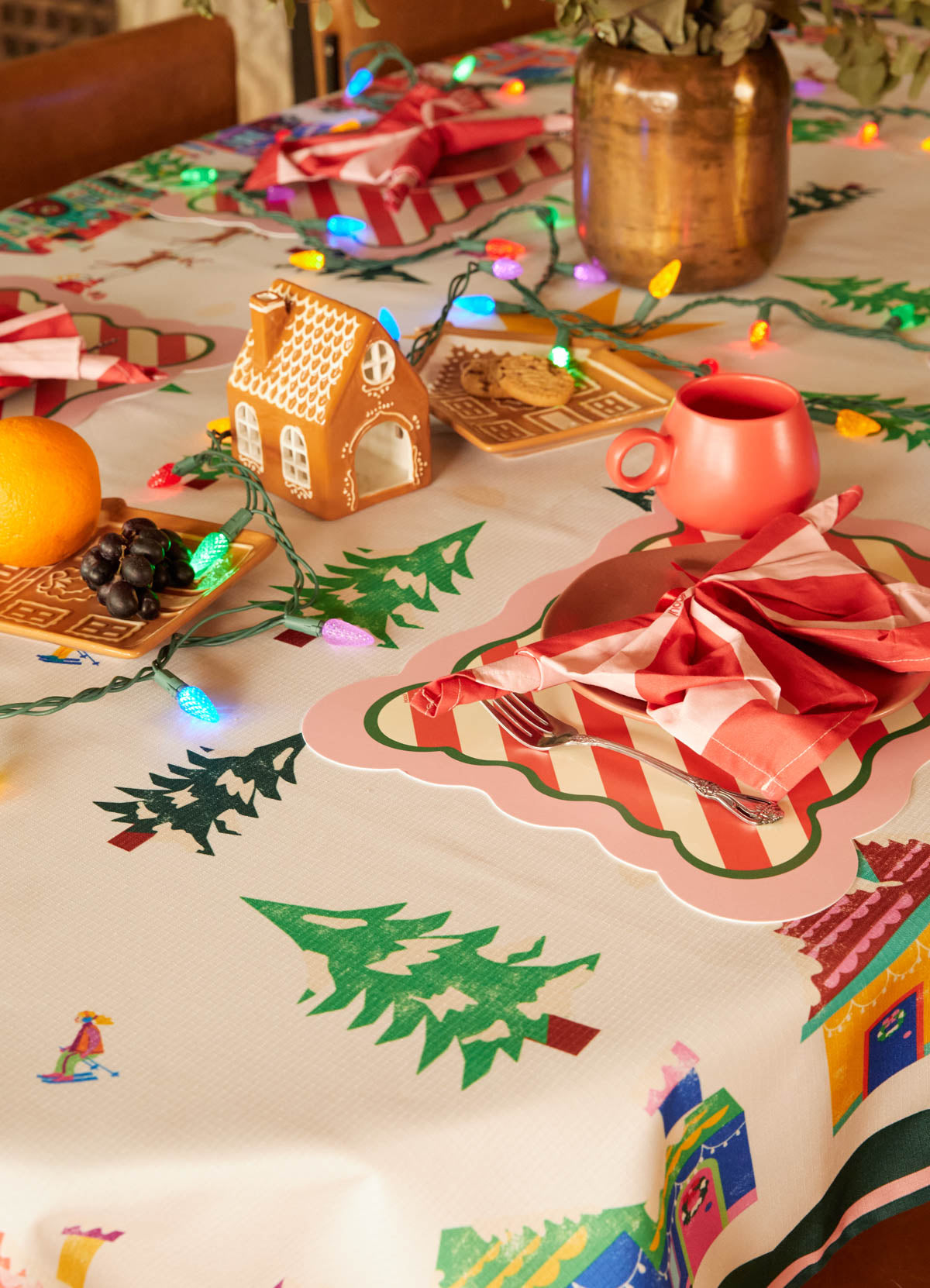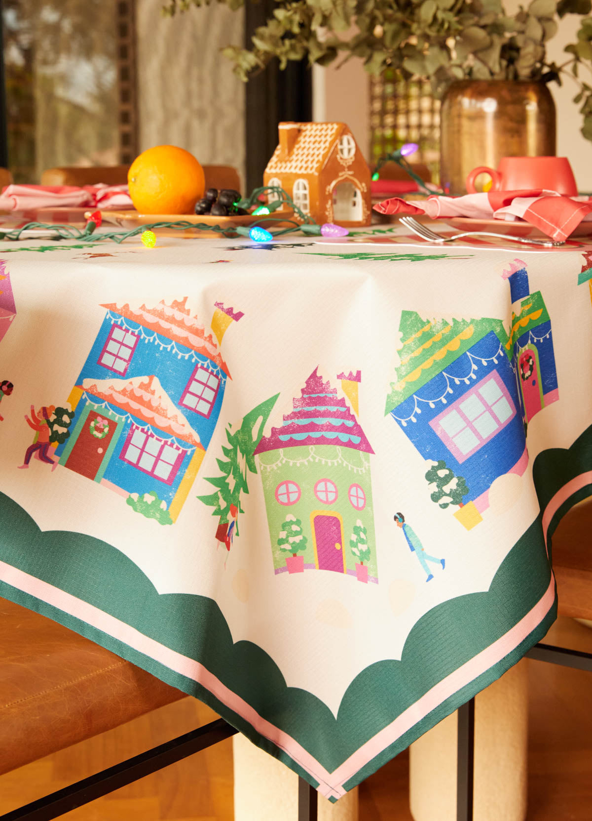 A Toalha de Mesa Impermeável Vilarejo Encantado traz uma estampa exclusiva da MOOUI para vestir sua mesa com muito estilo. As refeições do dia a dia não serão mais as mesmas graças ao charme dessa toalha de mesa. Por ser impermeável, ela protege a mesa e traz muita praticidade e comodidade para sua casa.