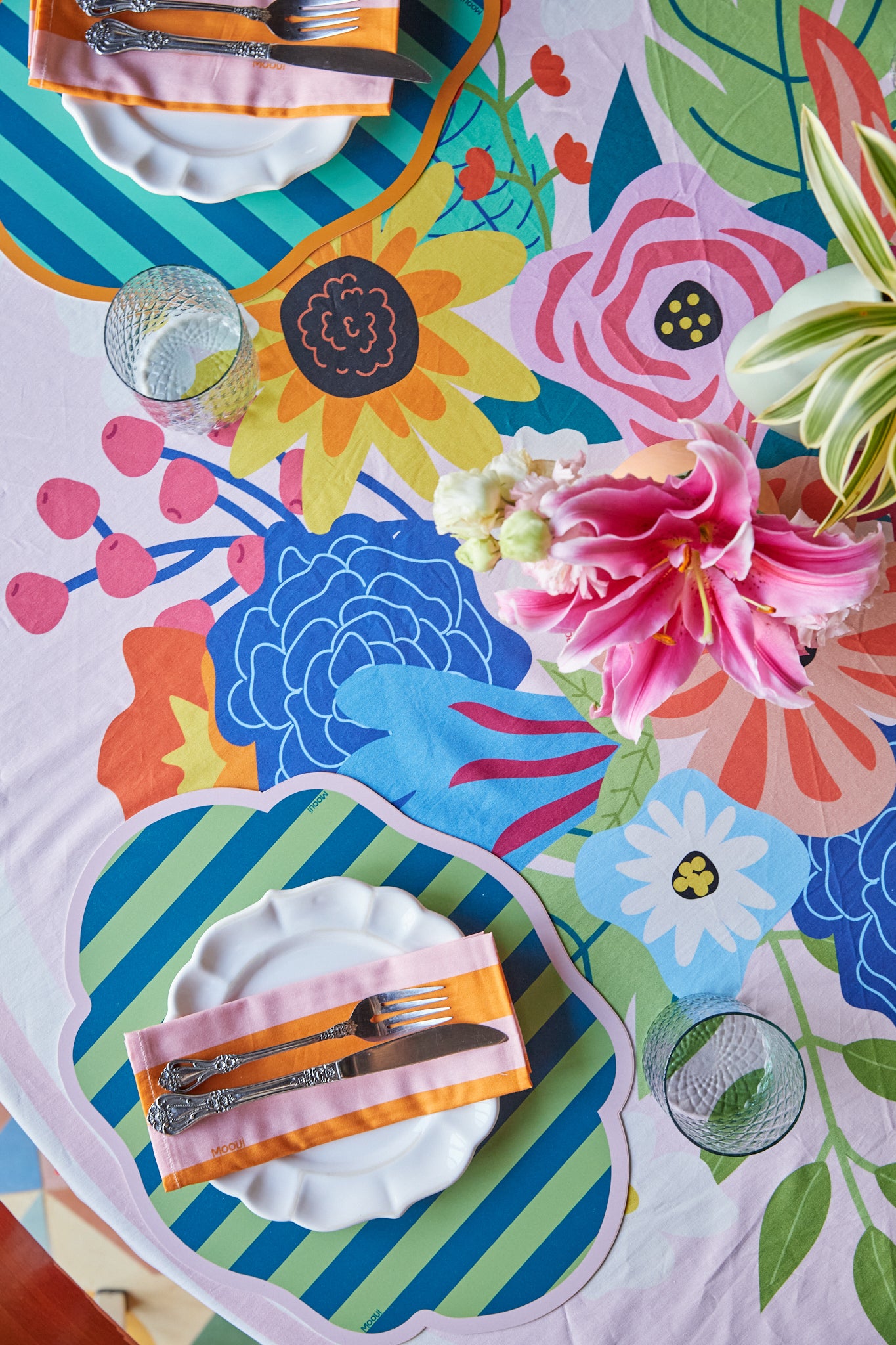 Experimente combinar a toalha de mesa com os demais itens da hora de comer da MOOUI para montar uma mesa original, charmosa e encantadora.