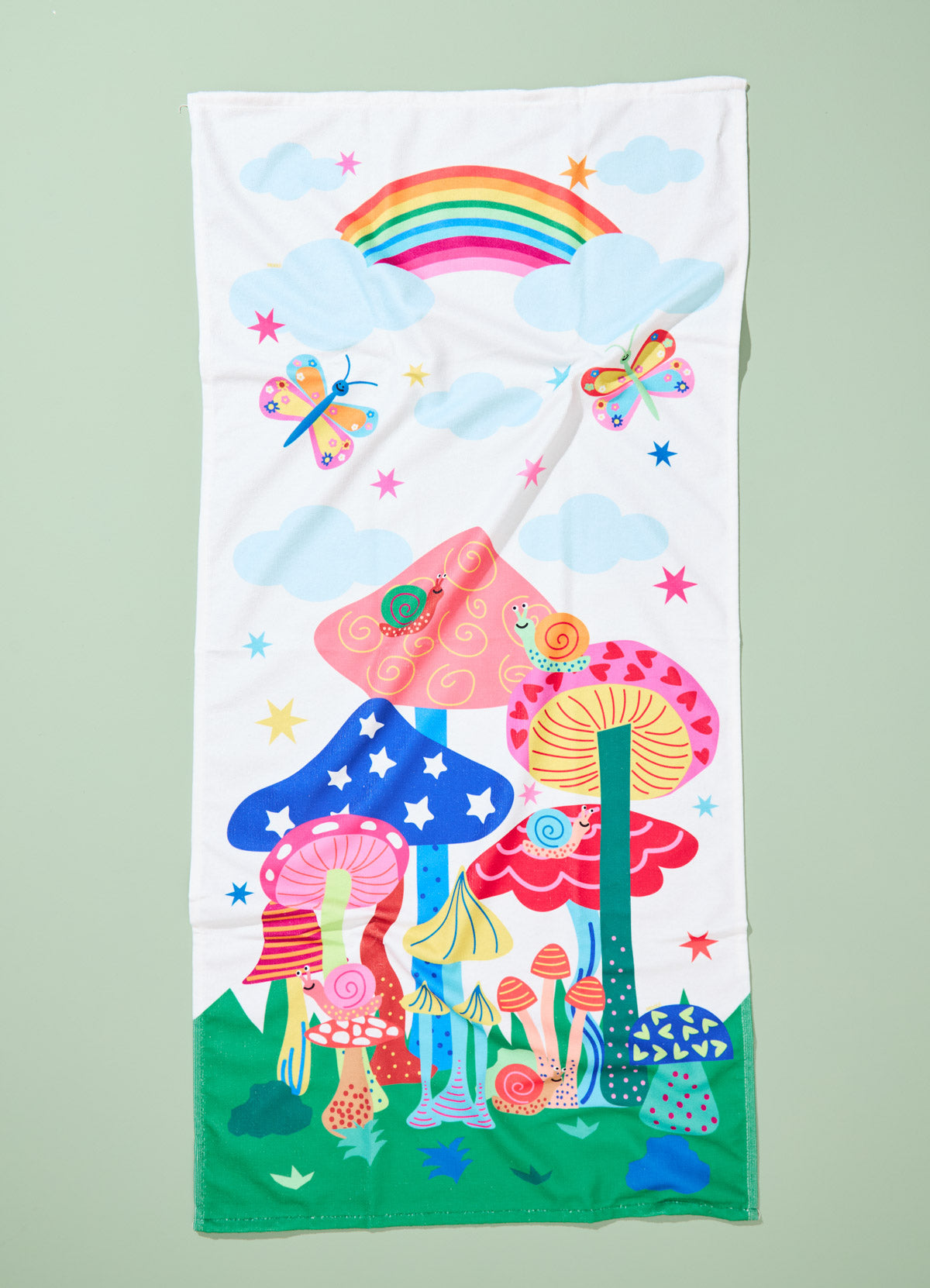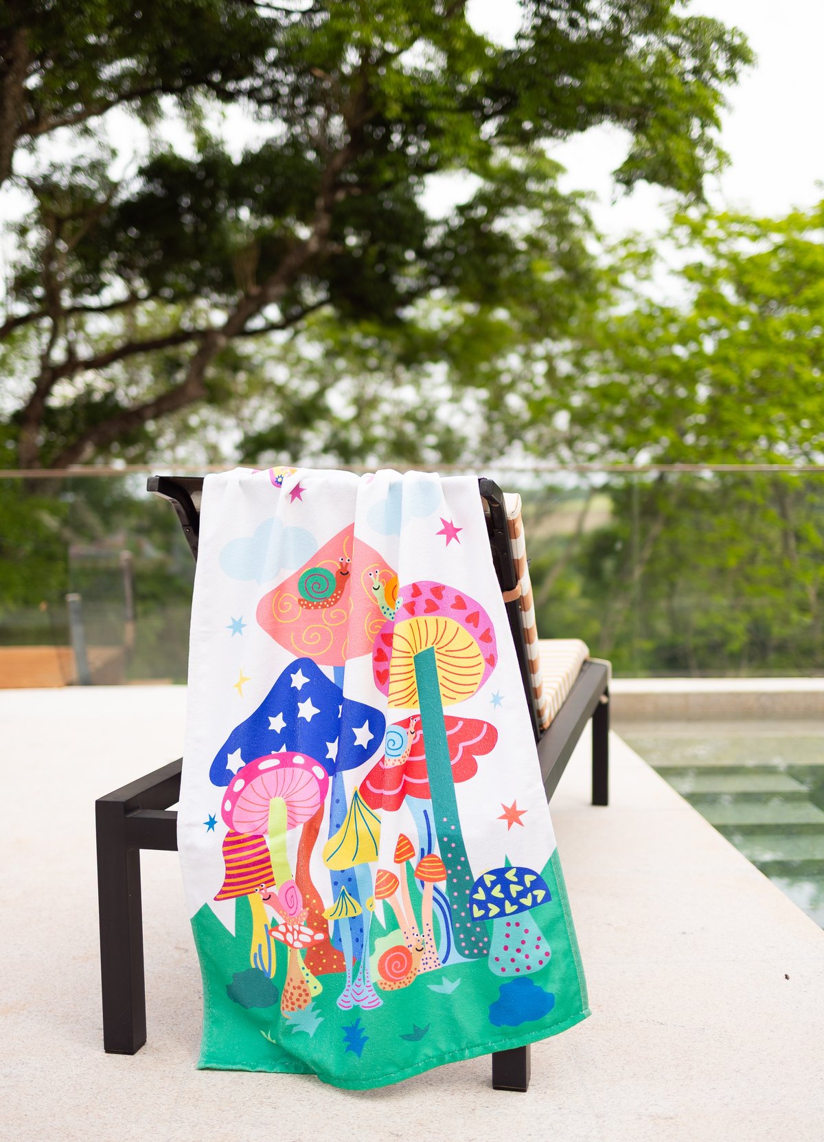 A Toalha de Praia Infantil Floresta de Cogumelos é perfeita para os dias de praia, piscina e para acompanhar os momentos de diversão ao sol. Produzida em tecido misto de poliéster e algodão, proporciona suavidade ao toque e boa absorção. Com estampa exclusiva Mooui que adiciona um toque lúdico e alegre à rotina.