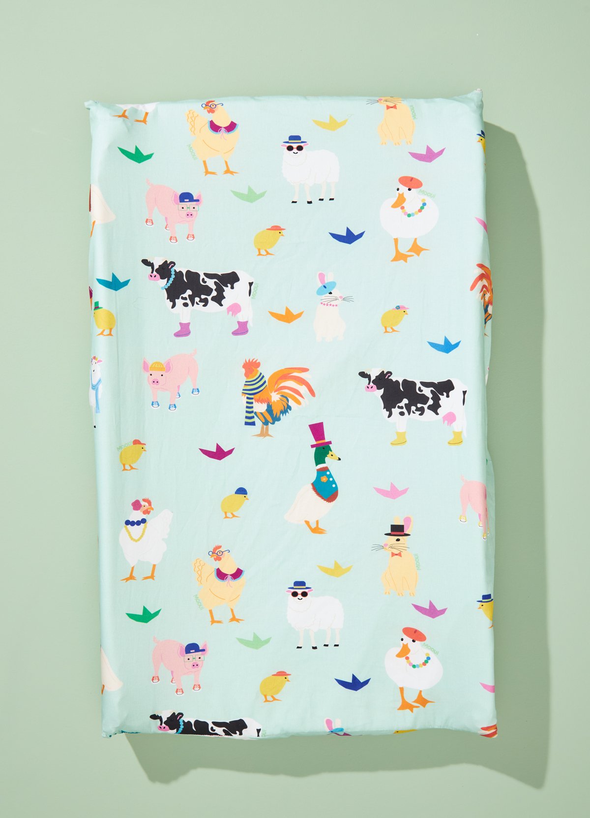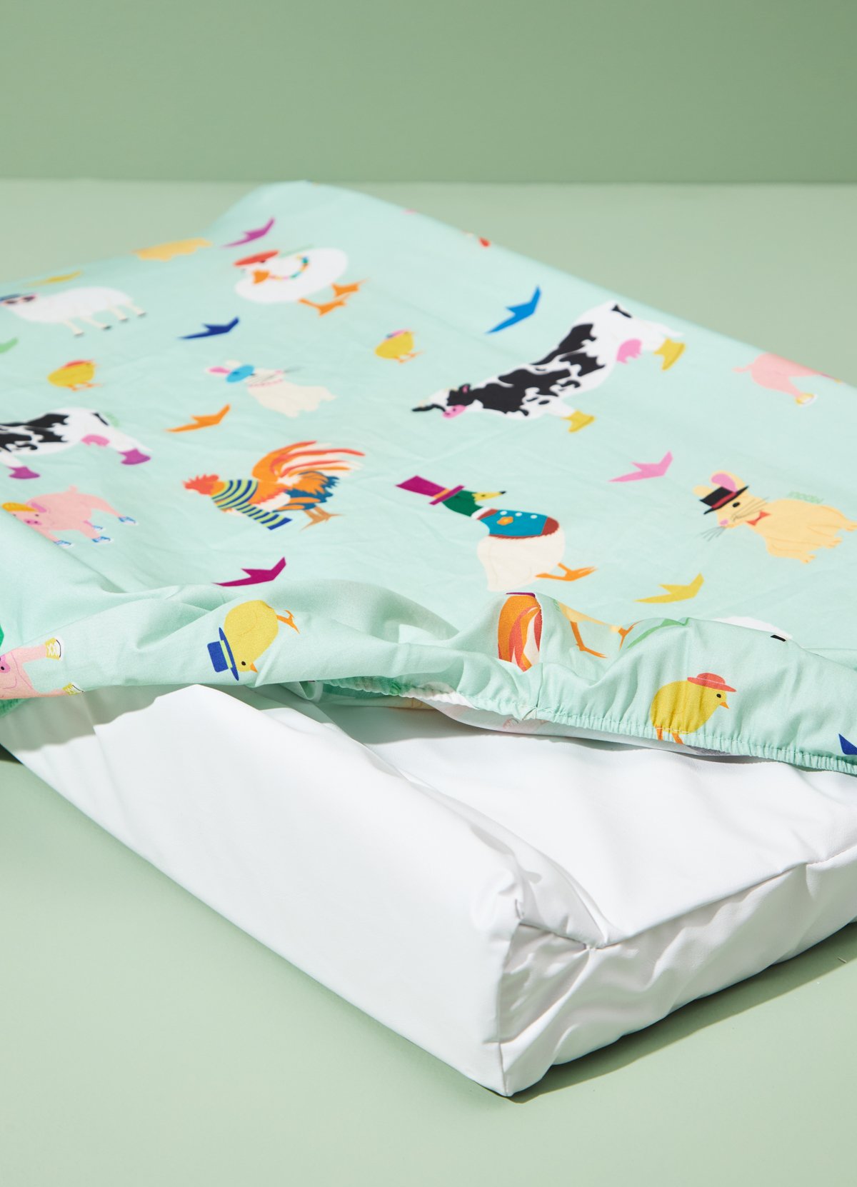 O Trocador Americano Bichinhos da Fazenda da MOOUI foi desenvolvido para tornar a troca de fraldas mais prática, segura e colorida. Confeccionado com espuma D20 revestida de napa impermeável e capa removível em algodão 230 fios com elástico.