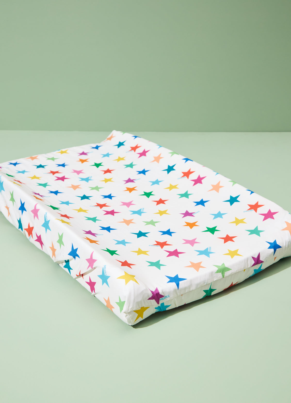 O Trocador Americano Estrelitas da MOOUI foi desenvolvido para tornar a troca de fraldas mais prática, segura e colorida. Confeccionado com espuma D20 revestida de napa impermeável e capa removível em algodão 230 fios com elástico.