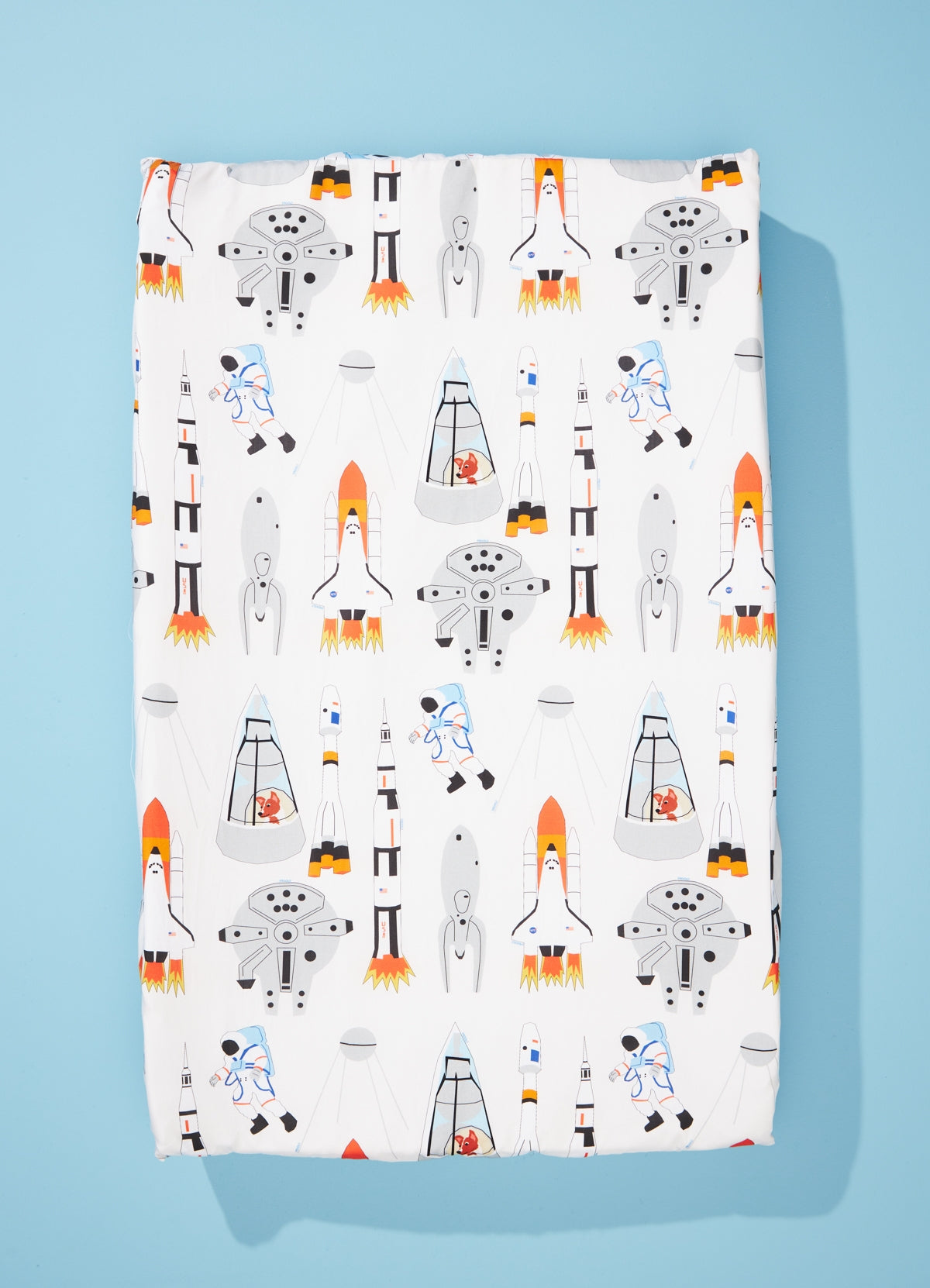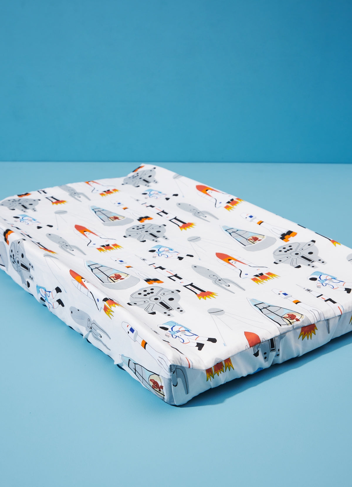 O Trocador Americano de Bebê Foguetes é uma peça que não pode faltar no enxoval e deixa o momento da troca de fraldas mais colorido, divertido. O trocador de fralda da MOOUI é confortável e seguro para o bebê e prático para a família. Nosso trocador é feito de espuma D20 revestida de napa impermeável 50% poliéster, 50% pvc e capa em algodão 230 fios com elástico para facilitar a remoção e lavagem, além da lateral mais alta para garantir a segurança dos bebês.