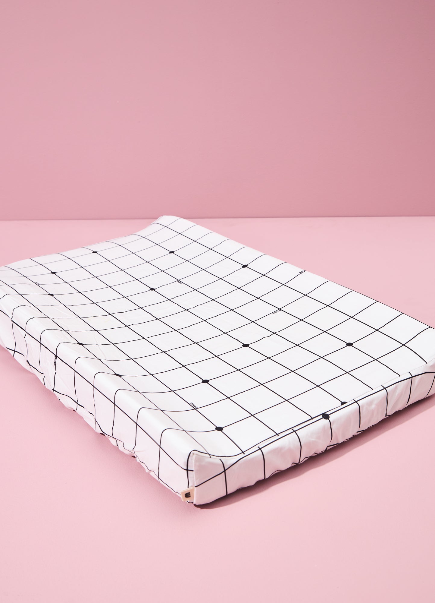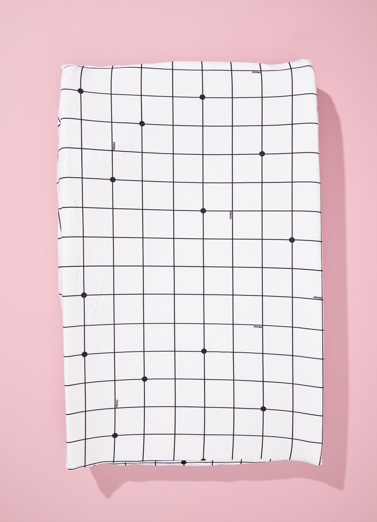O Trocador Americano Grid Bolinhas PB da MOOUI foi desenvolvido para tornar a troca de fraldas mais prática, segura e colorida. Confeccionado com espuma D20 revestida de napa impermeável e capa removível em algodão 230 fios com elástico.
